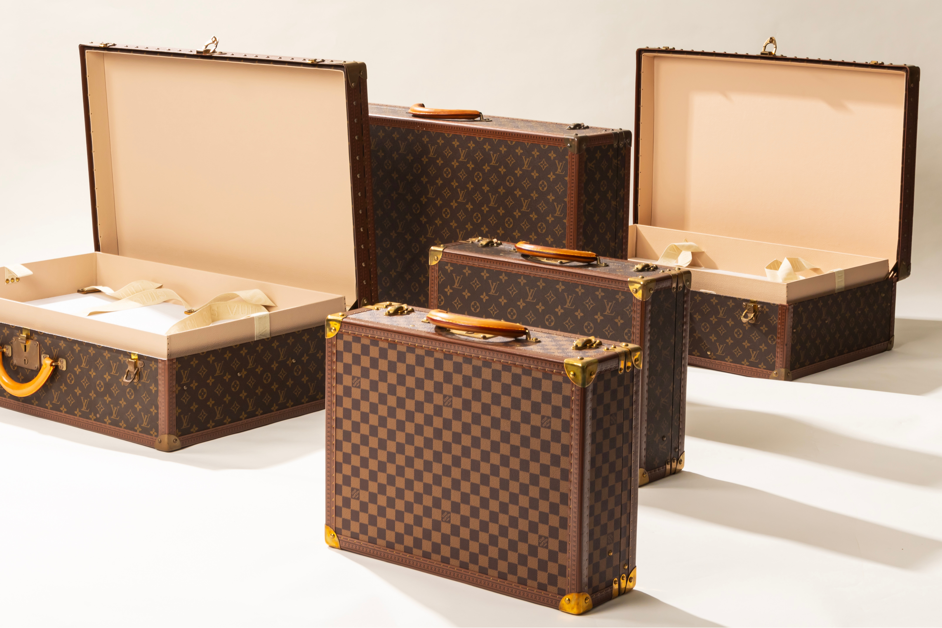 The spirit of Vuitton’s trunks can be found in the very architecture of your favourite bags. The Speedy, for instance, is the direct descendant of the Keepall travel bag, originally designed to be folded to the bottom of a trunk. The Noé, meanwhile, was initially conceived to transport five bottles of Champagne without them clinking together.