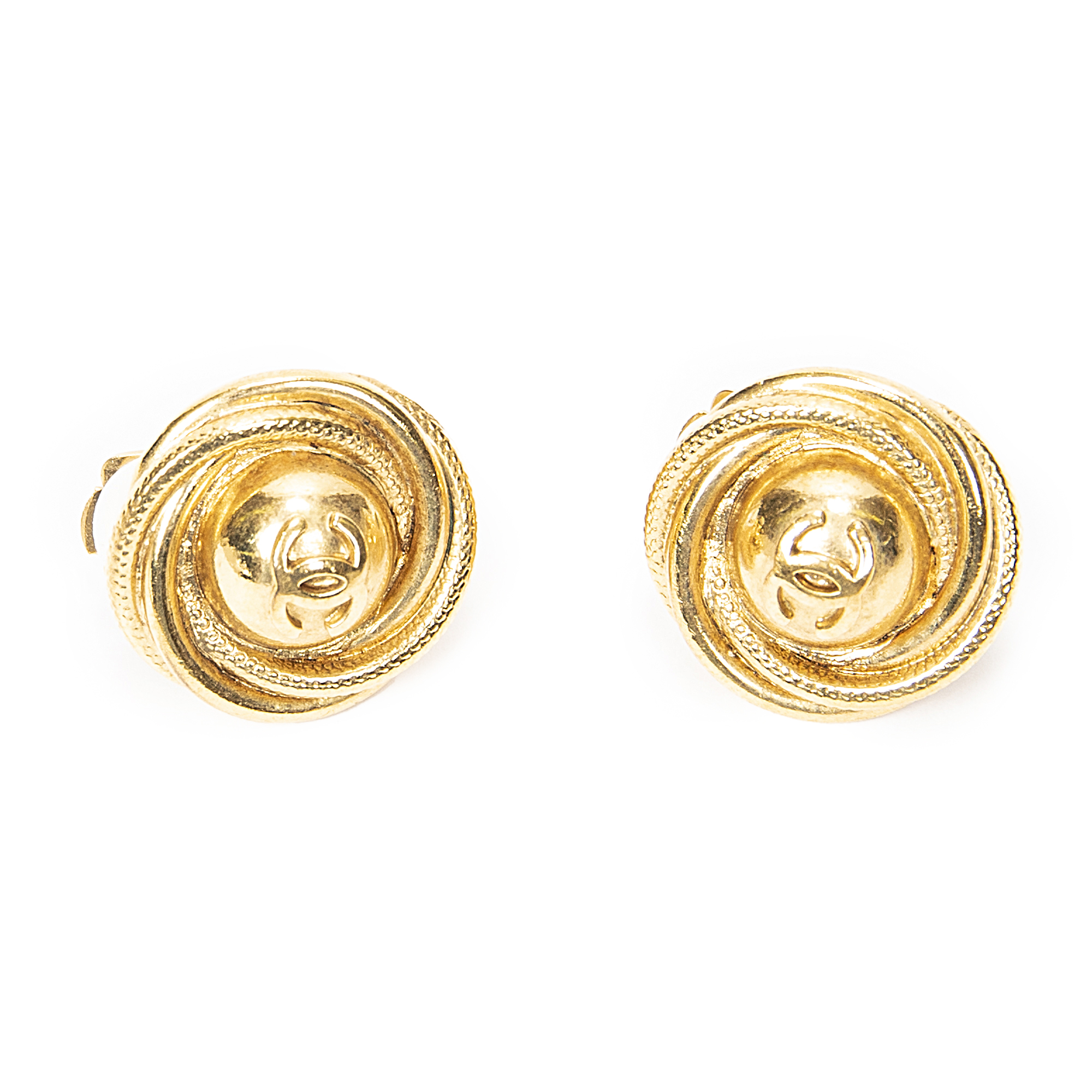 Chanel CC Round Clip On Earrings en Gold