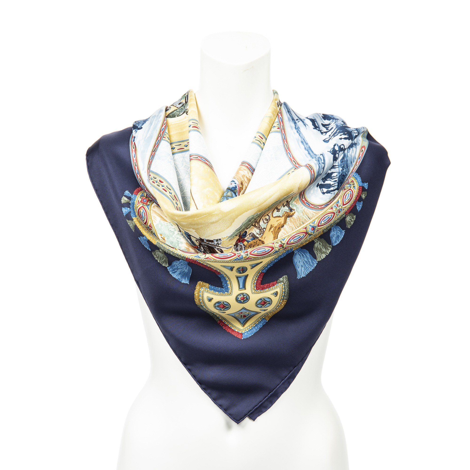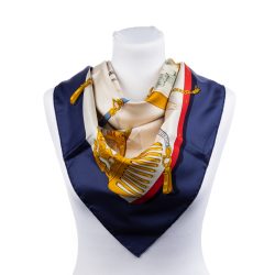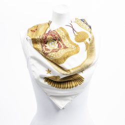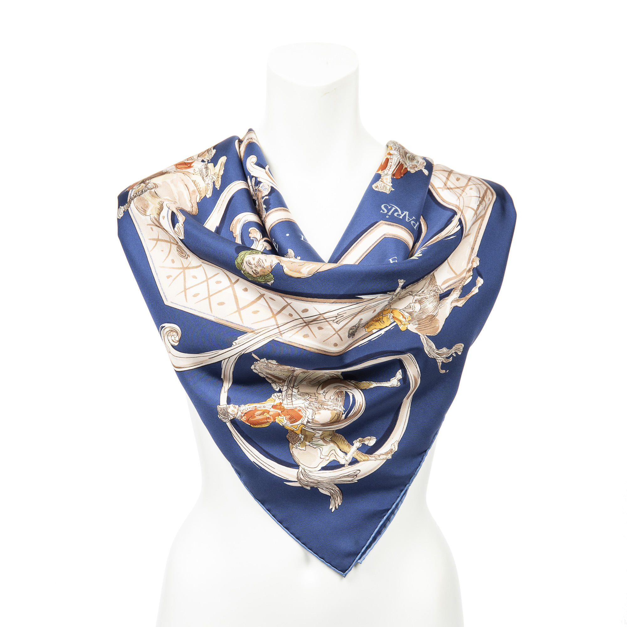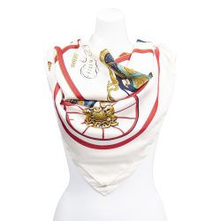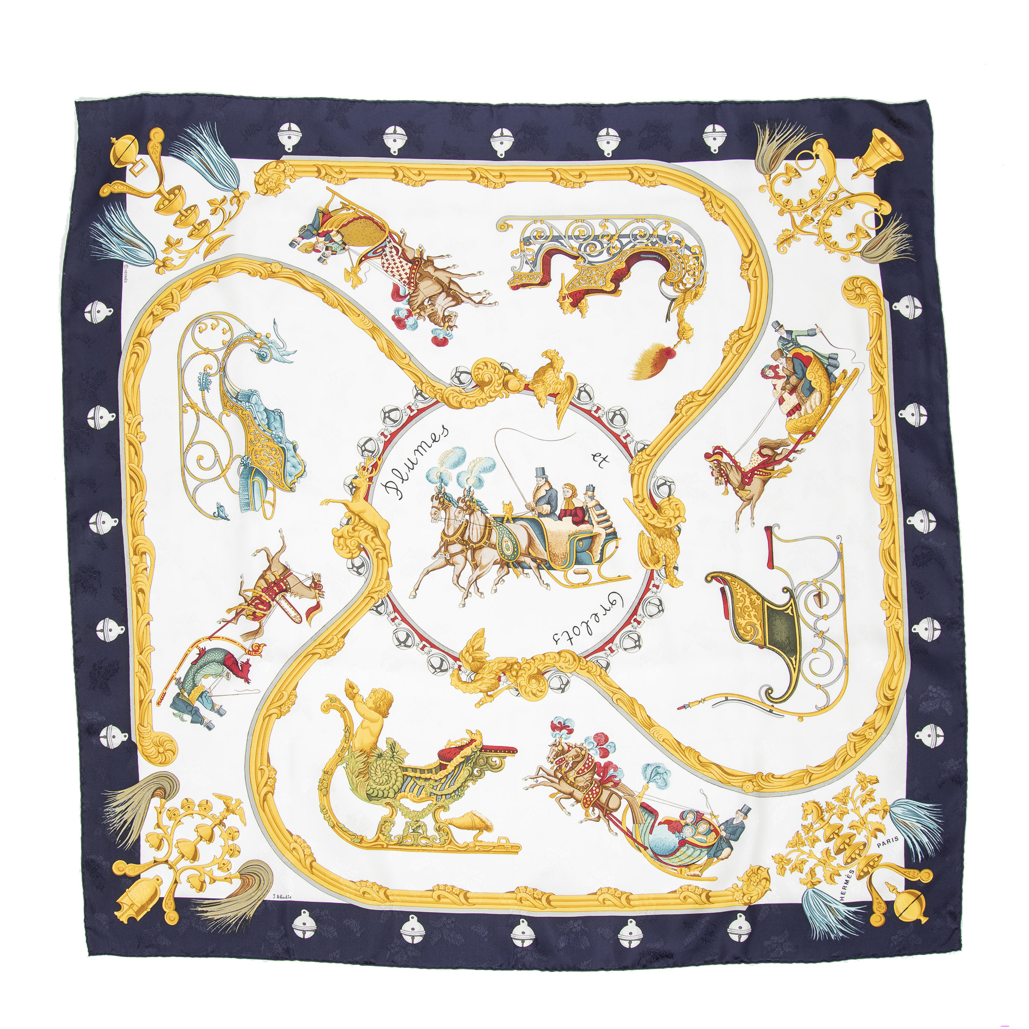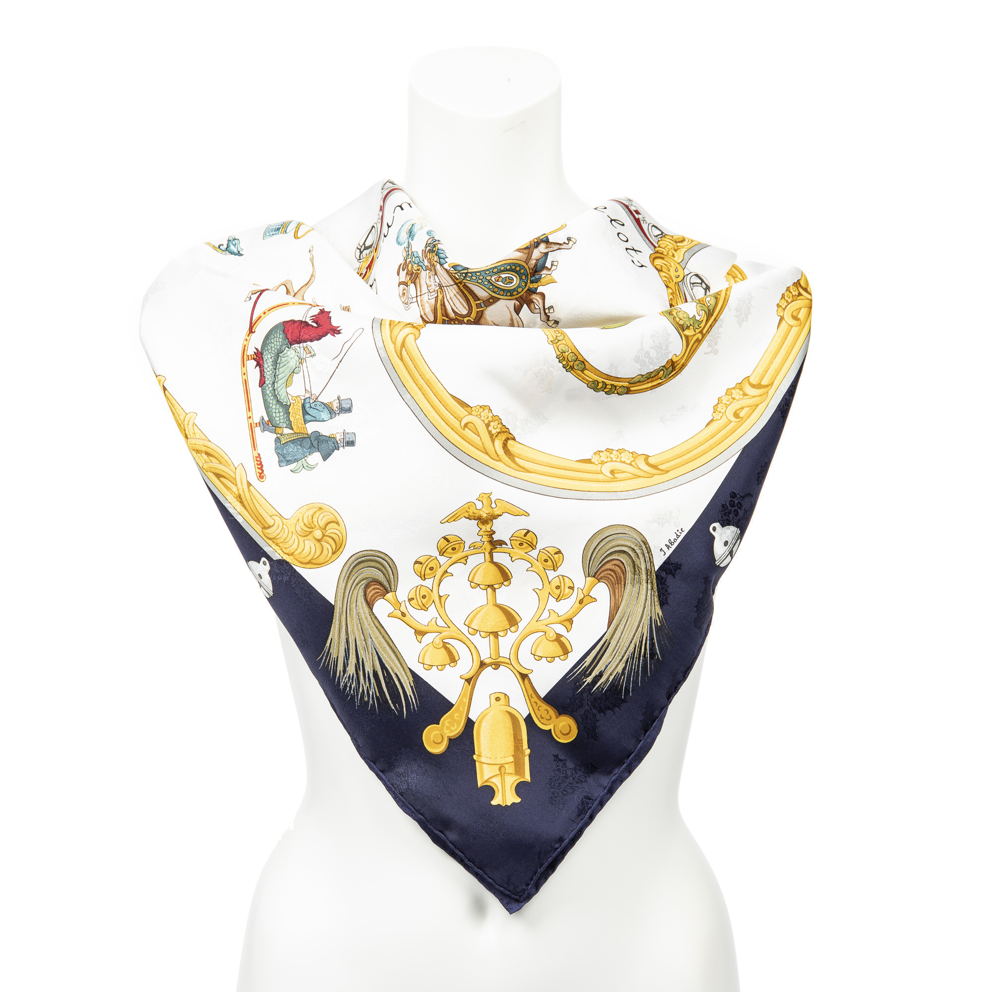 Hermès Scarf Poste et Cavalerie by Joachim Metz 0 en Blanc/Or/Bleu marine Soie