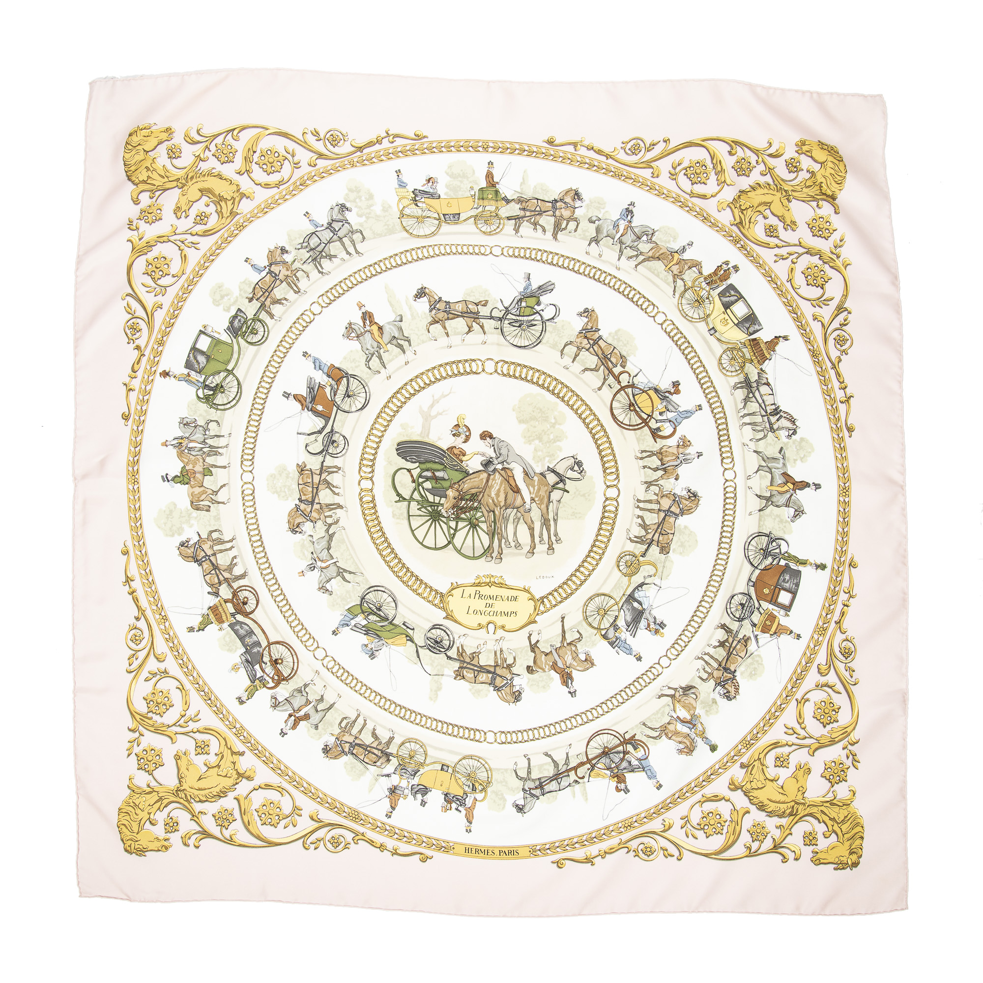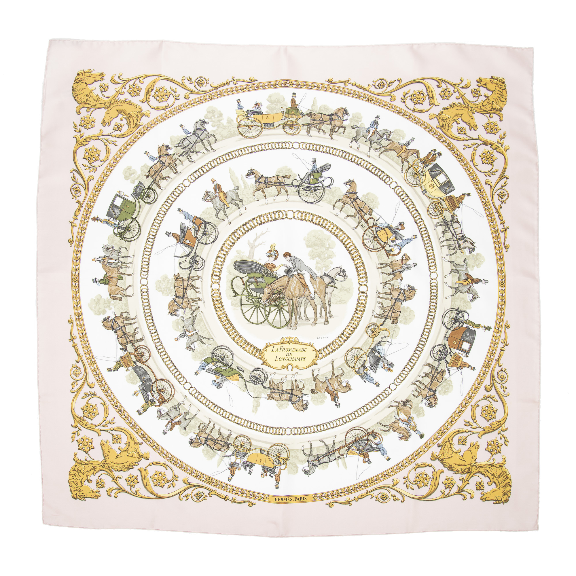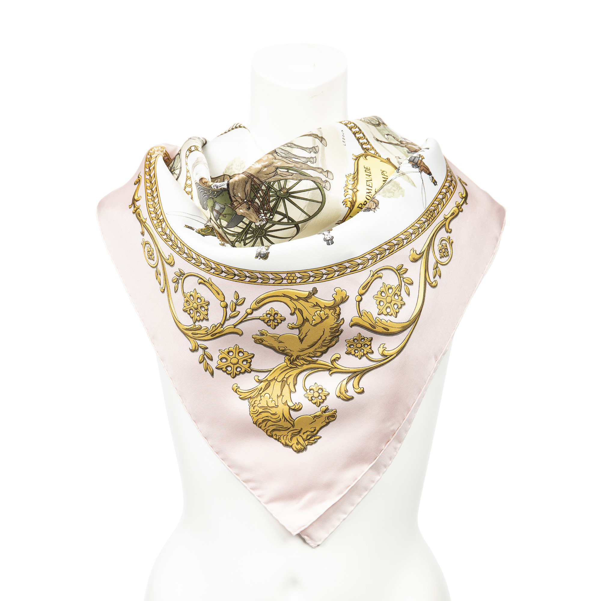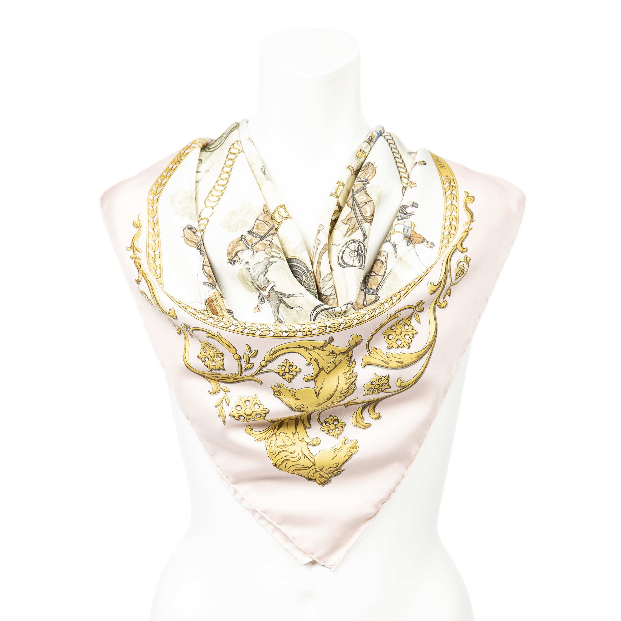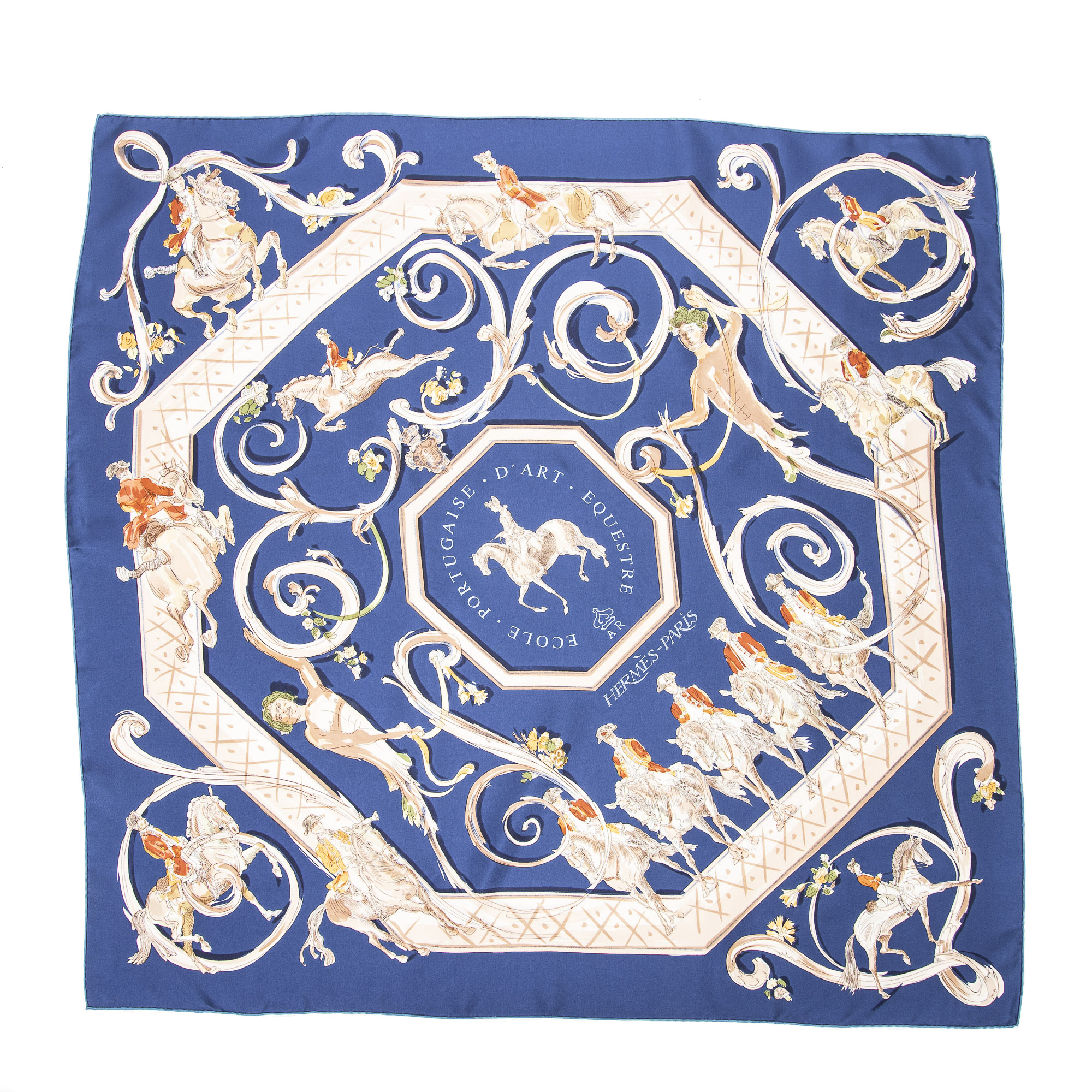 Hermès Scarf Poste et Cavalerie by Joachim Metz 0 en Blanc/Or/Bleu marine Soie