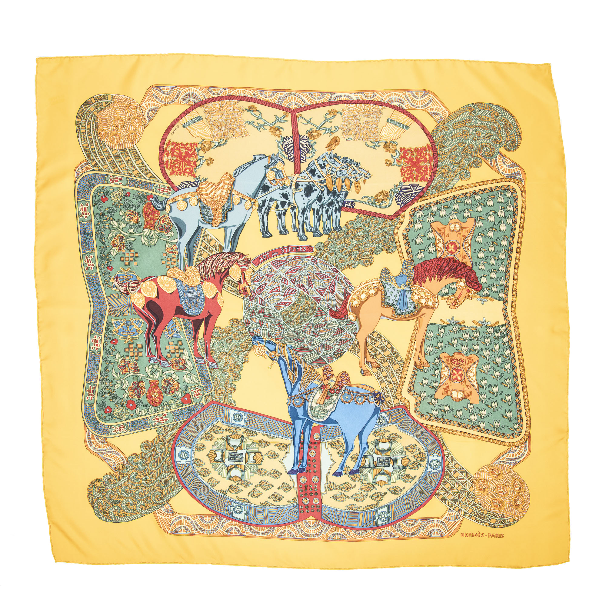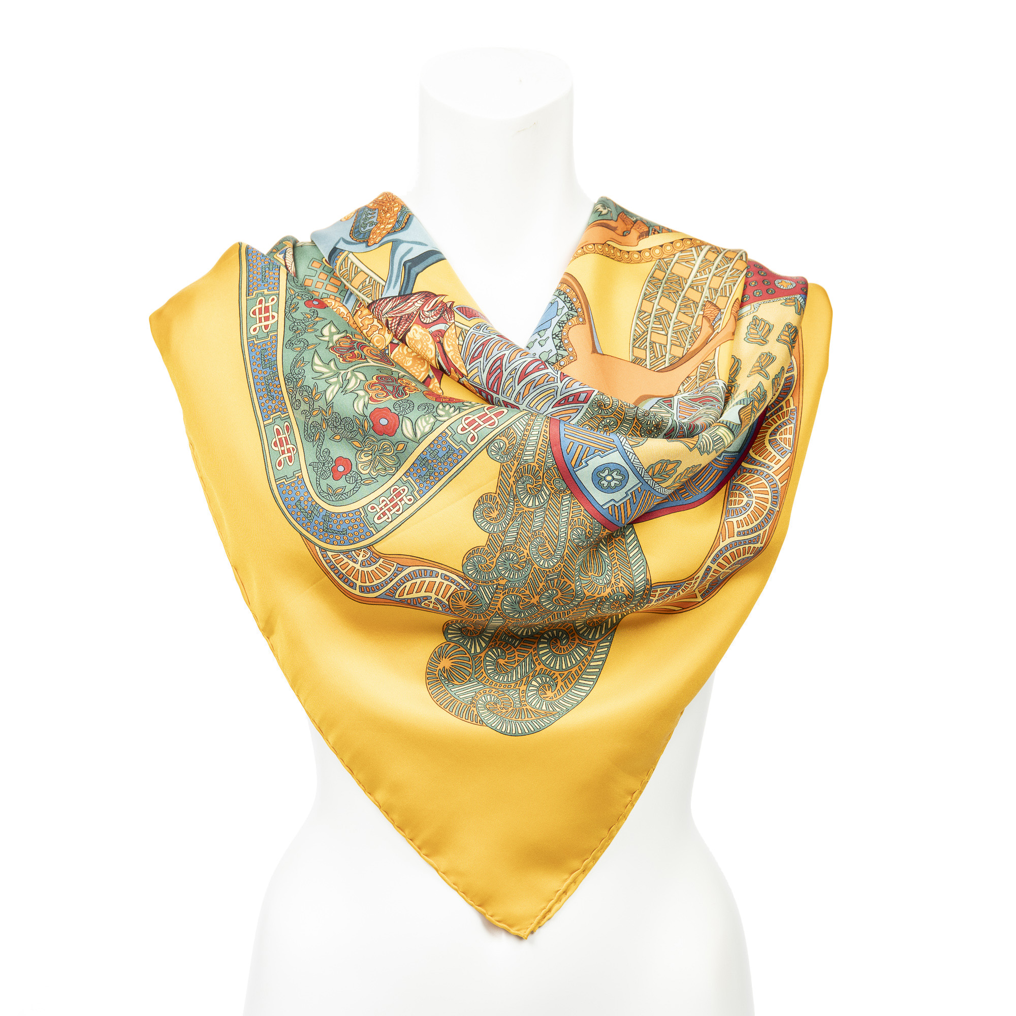 Hermès Scarf Au Son du Tam Tam by Laurence Bourthoumieux en Beige/Ivoire/Jaune