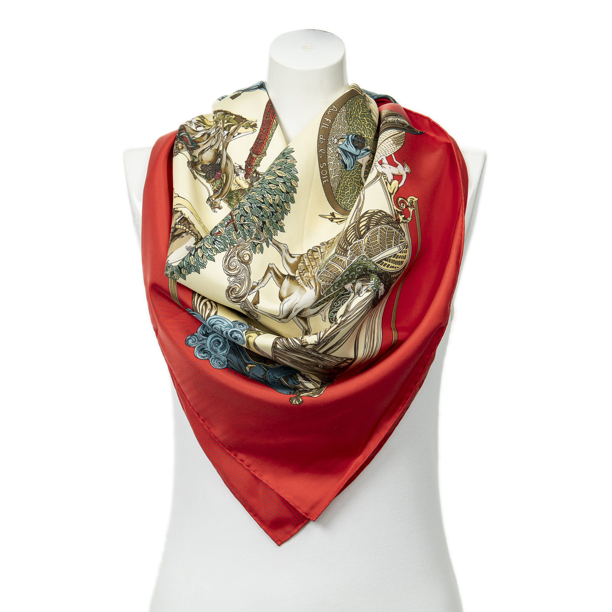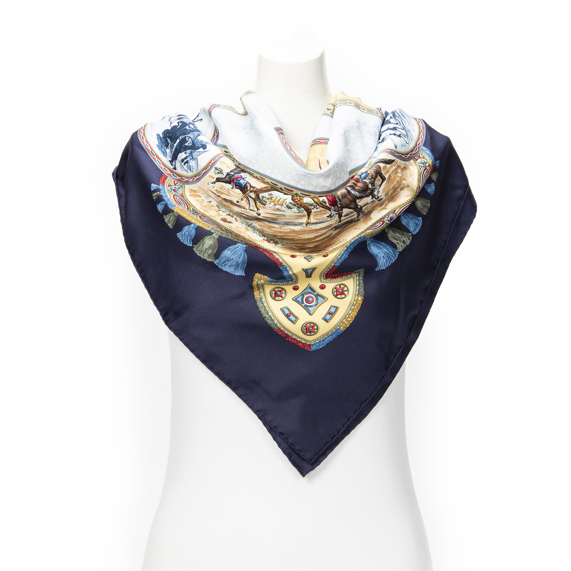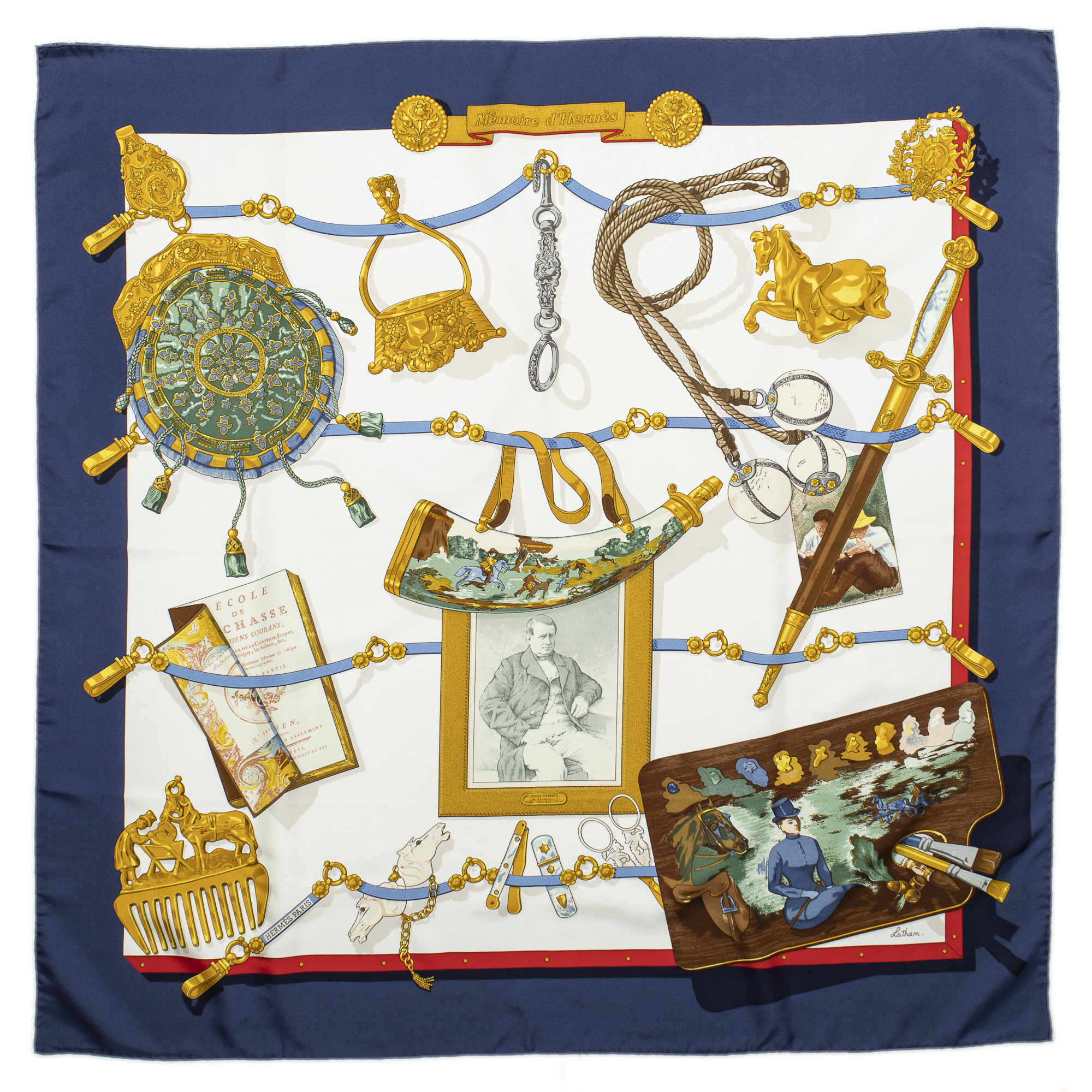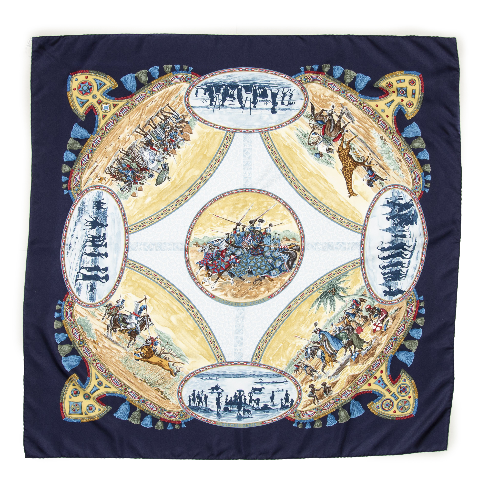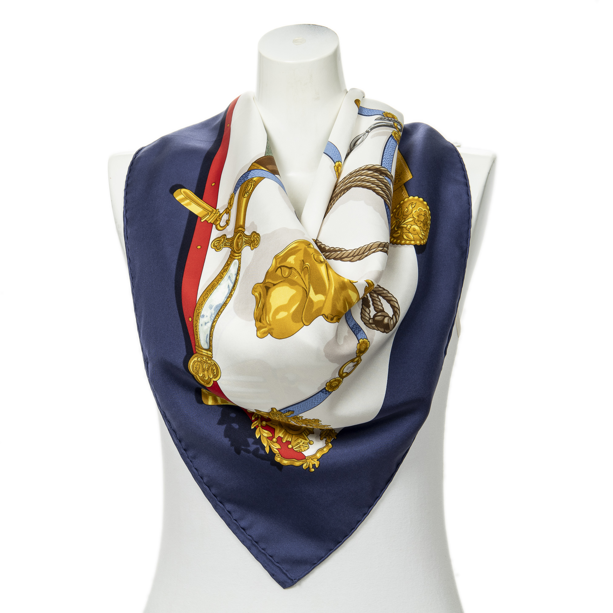 Hermès Scarf en Bleu marine/Or/Ivoire