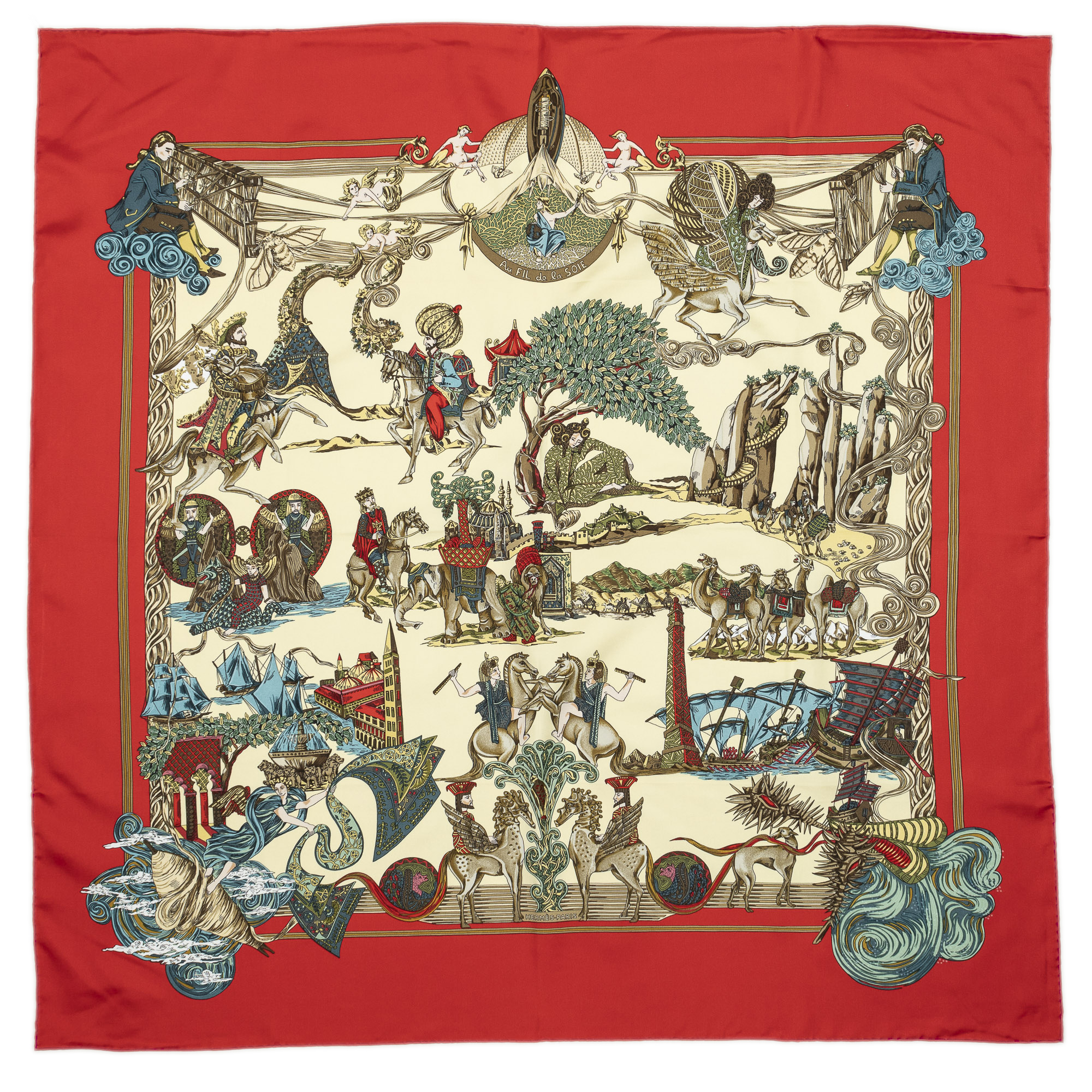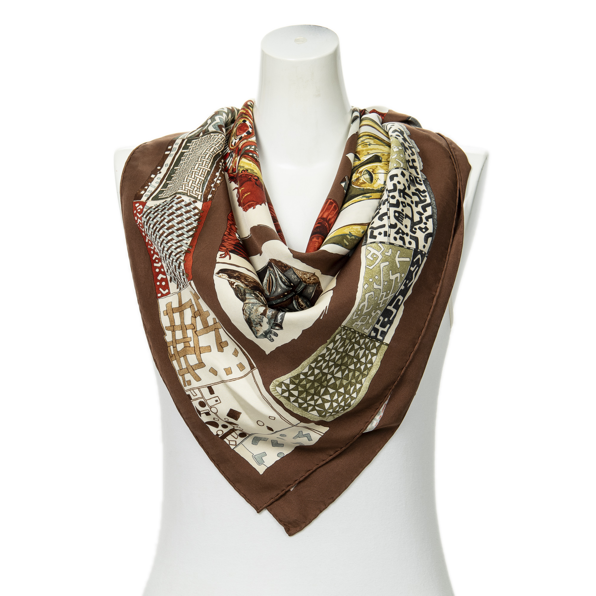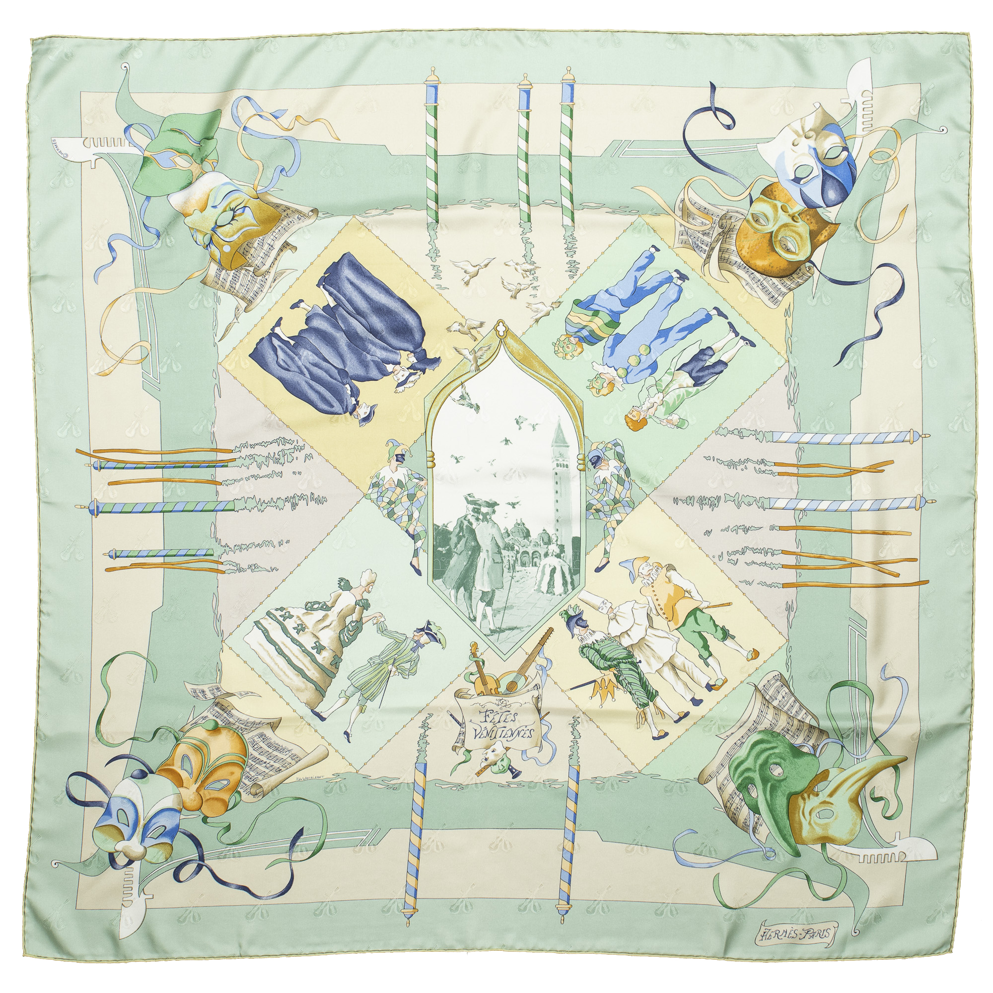 Hermès Scarf en Jaune/Bleu clair/Marron