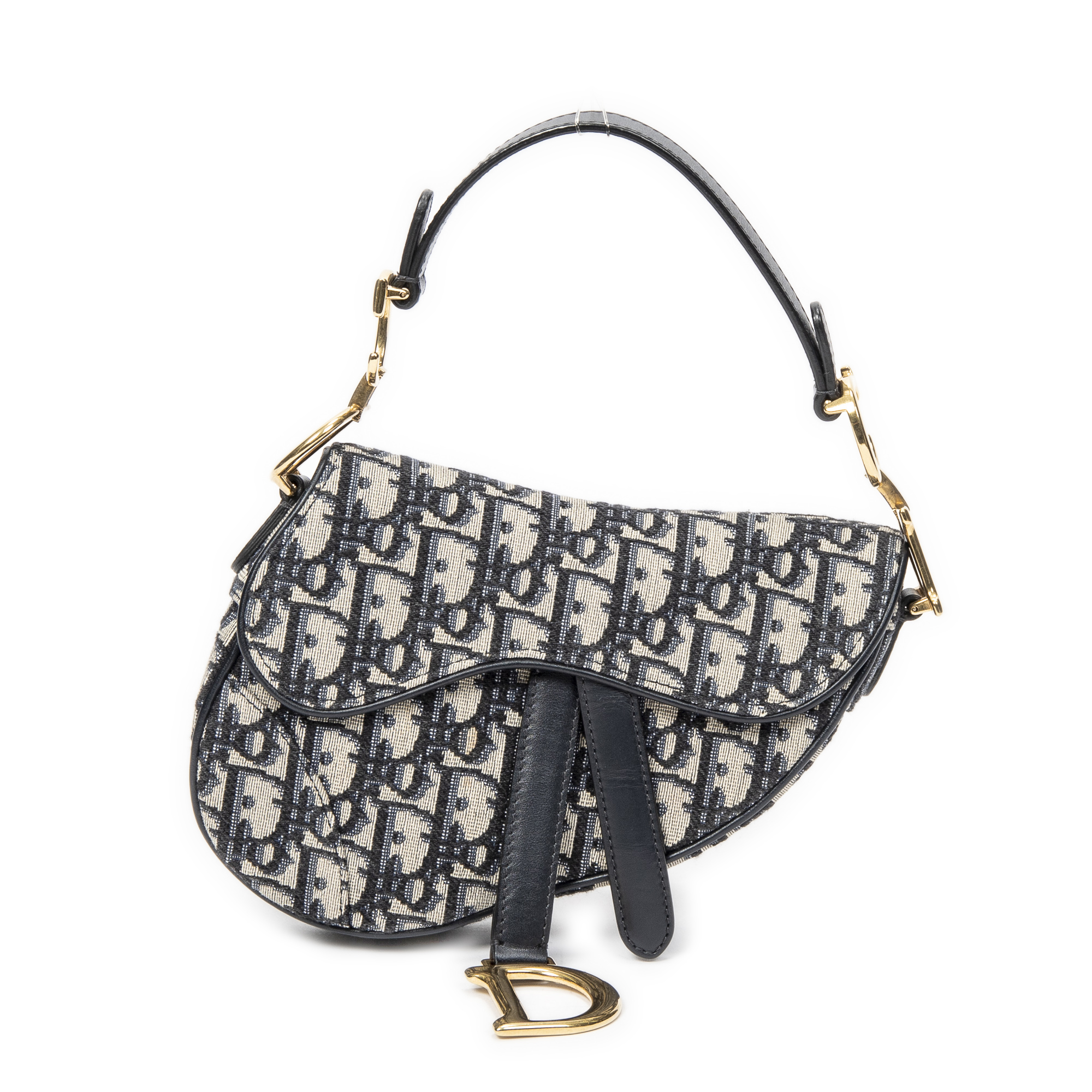Dior Mini Saddle Bag en Bleu marine/Beige