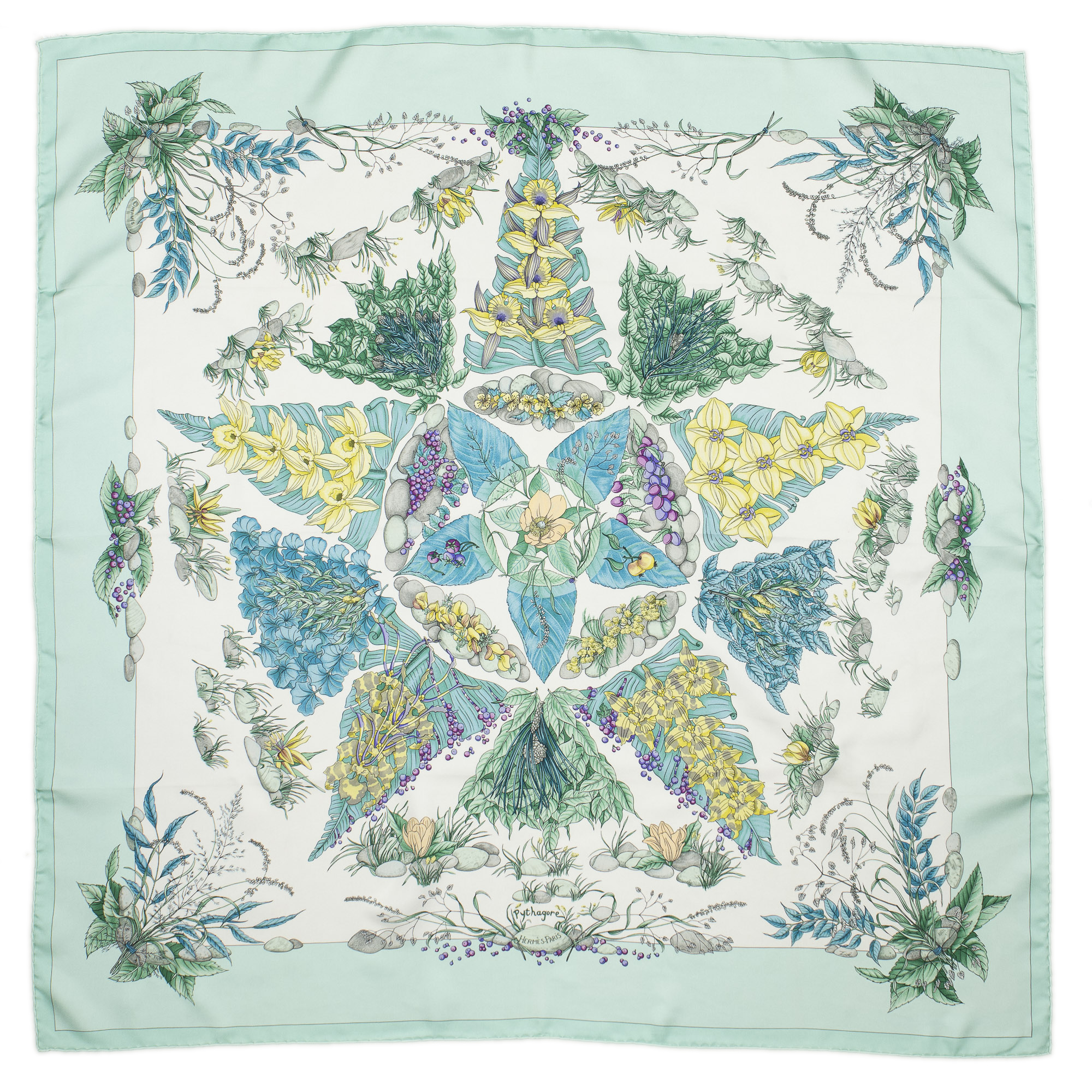 Hermès Scarf en Vert clair/Ivoire/Jaune