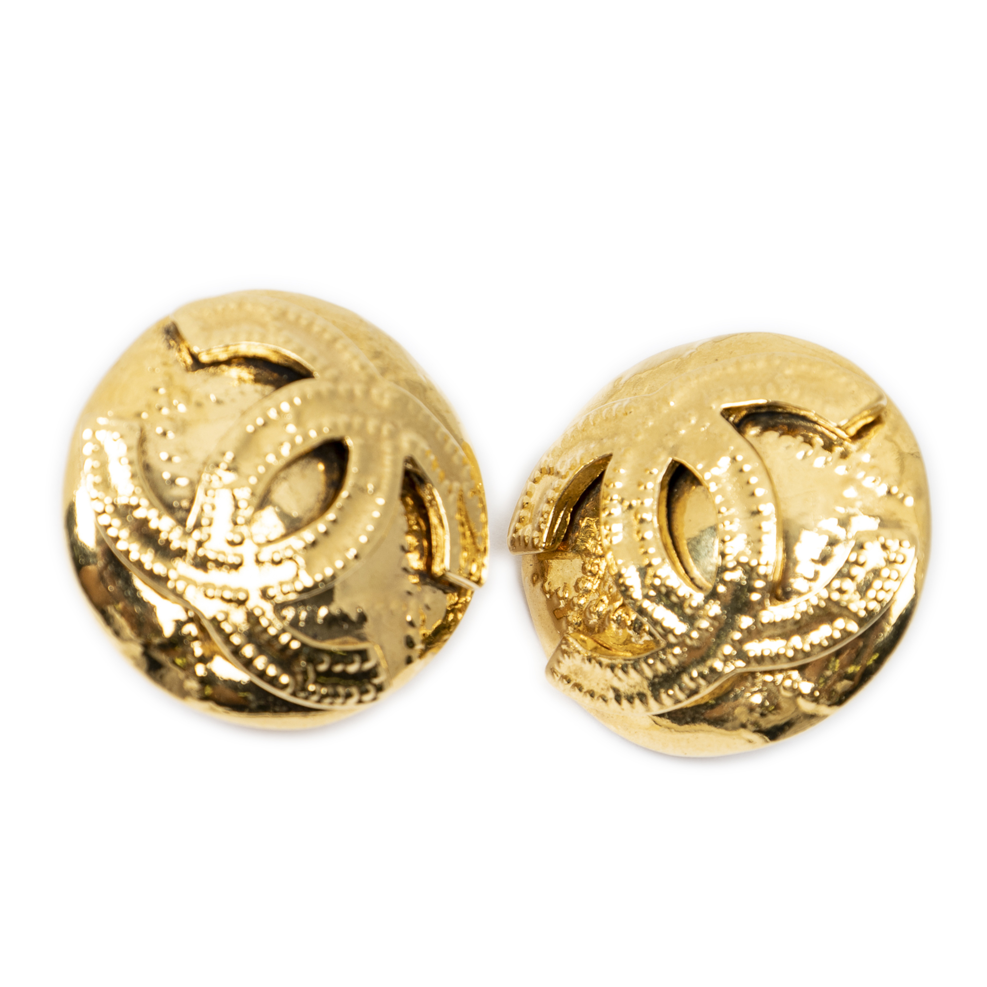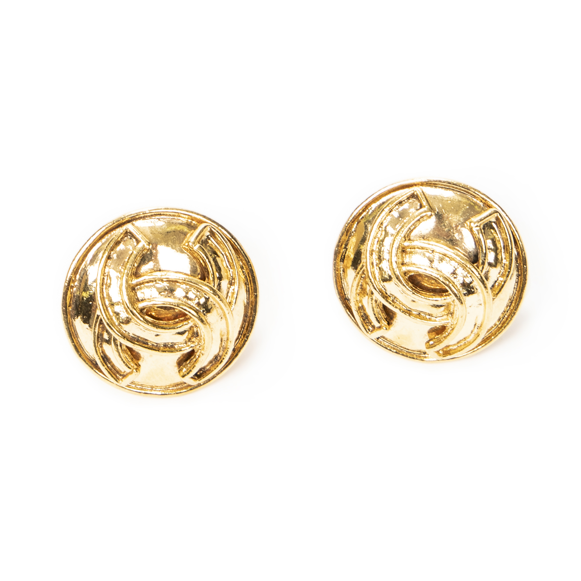 Chanel CC Round Clip On Earrings en or