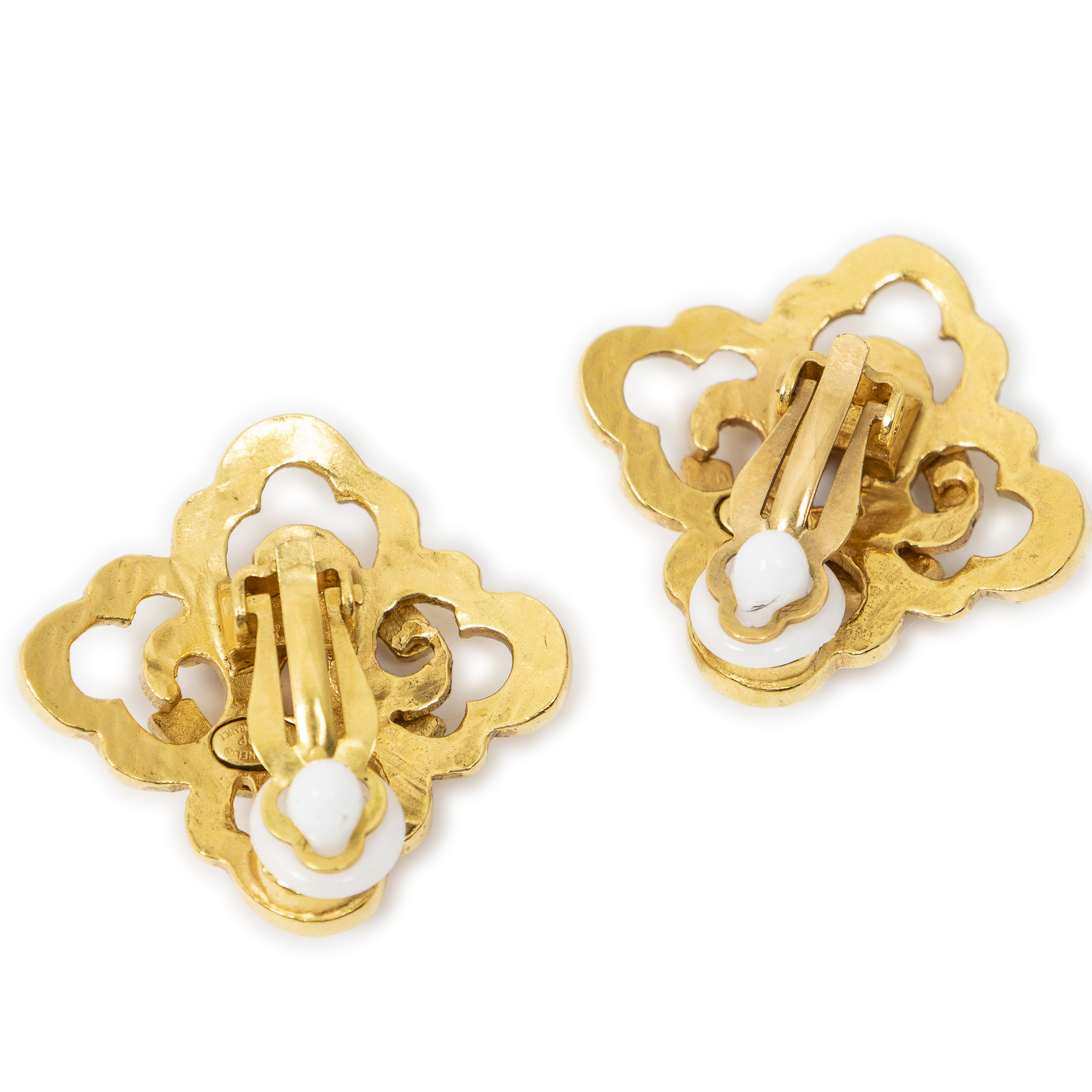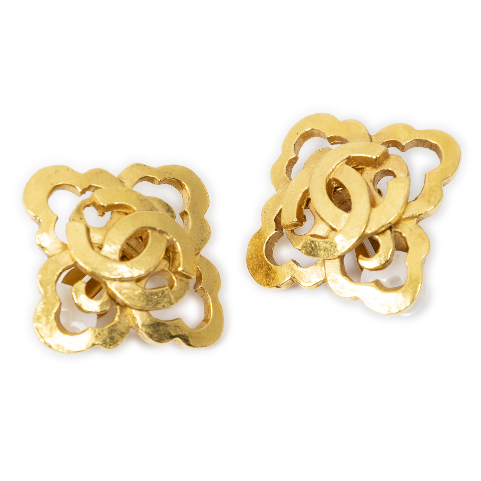Chanel CC Clover Clip On Earrings en or