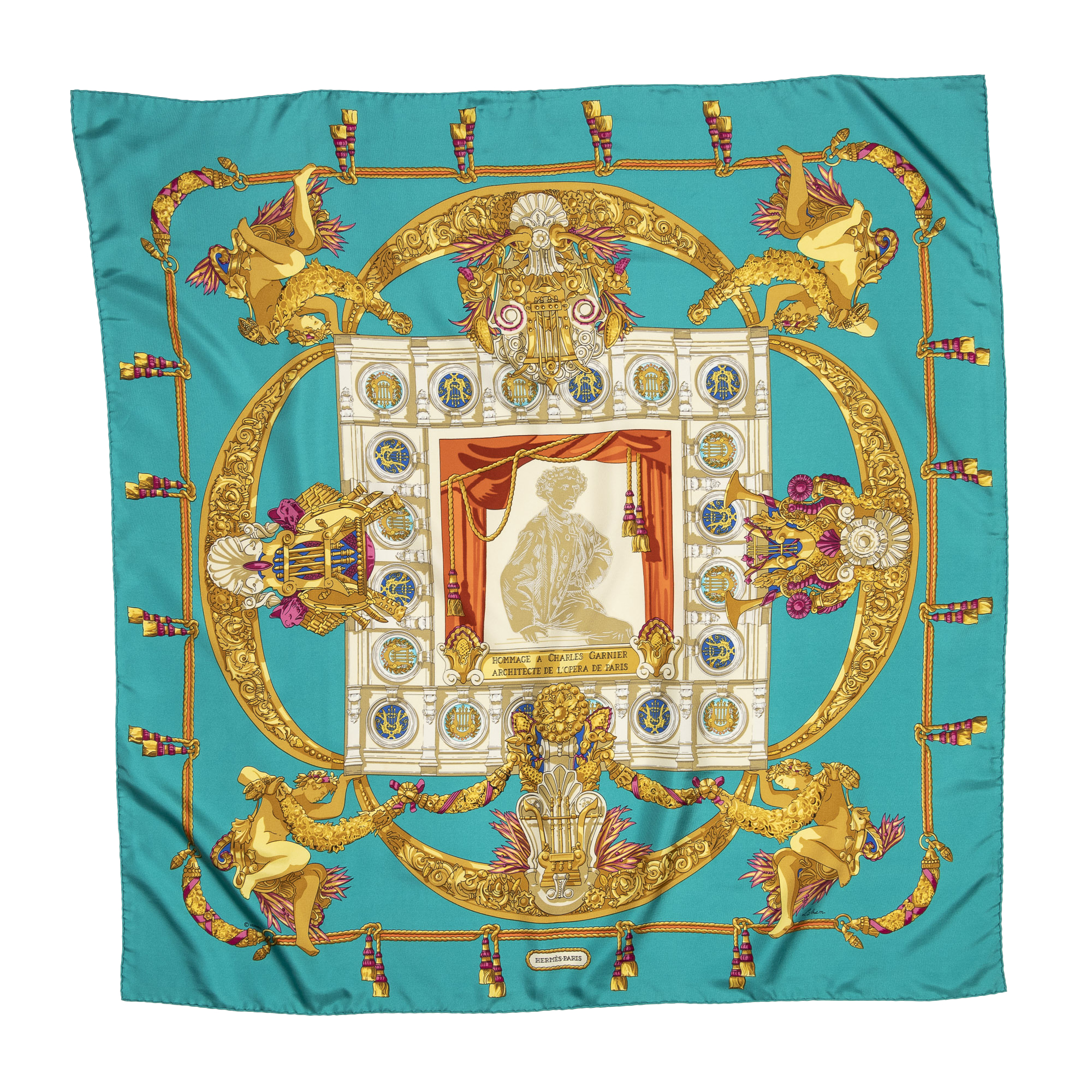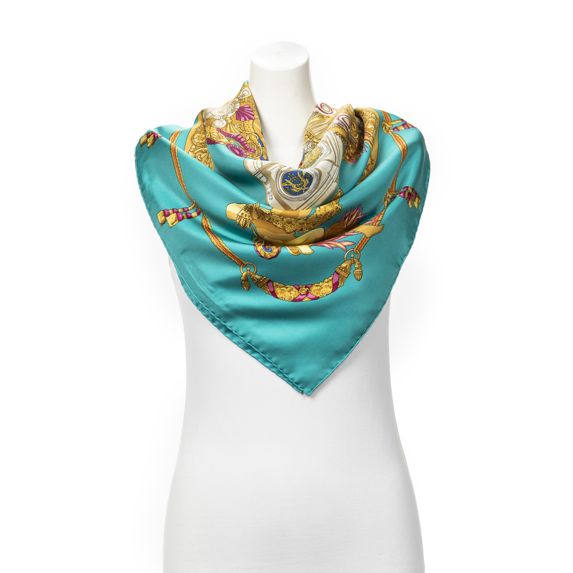 Hermès Scarf en Sarcelle/Or/Orange