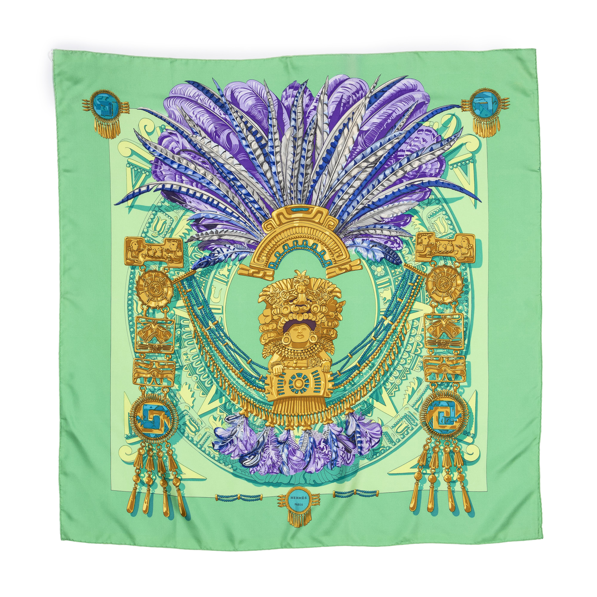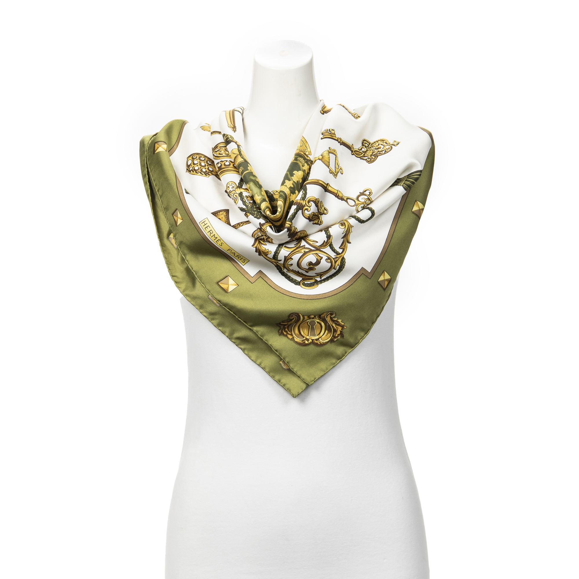 Hermès Scarf en Vert/Or/Blanc