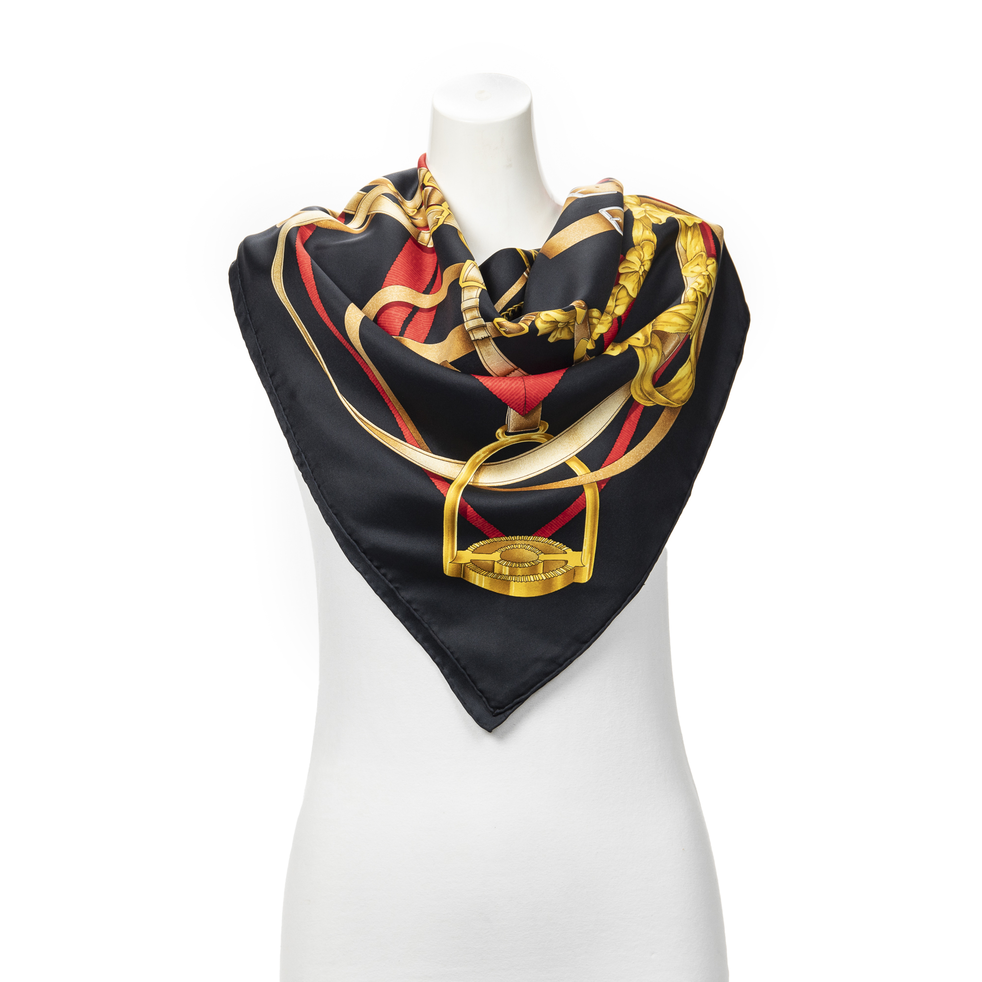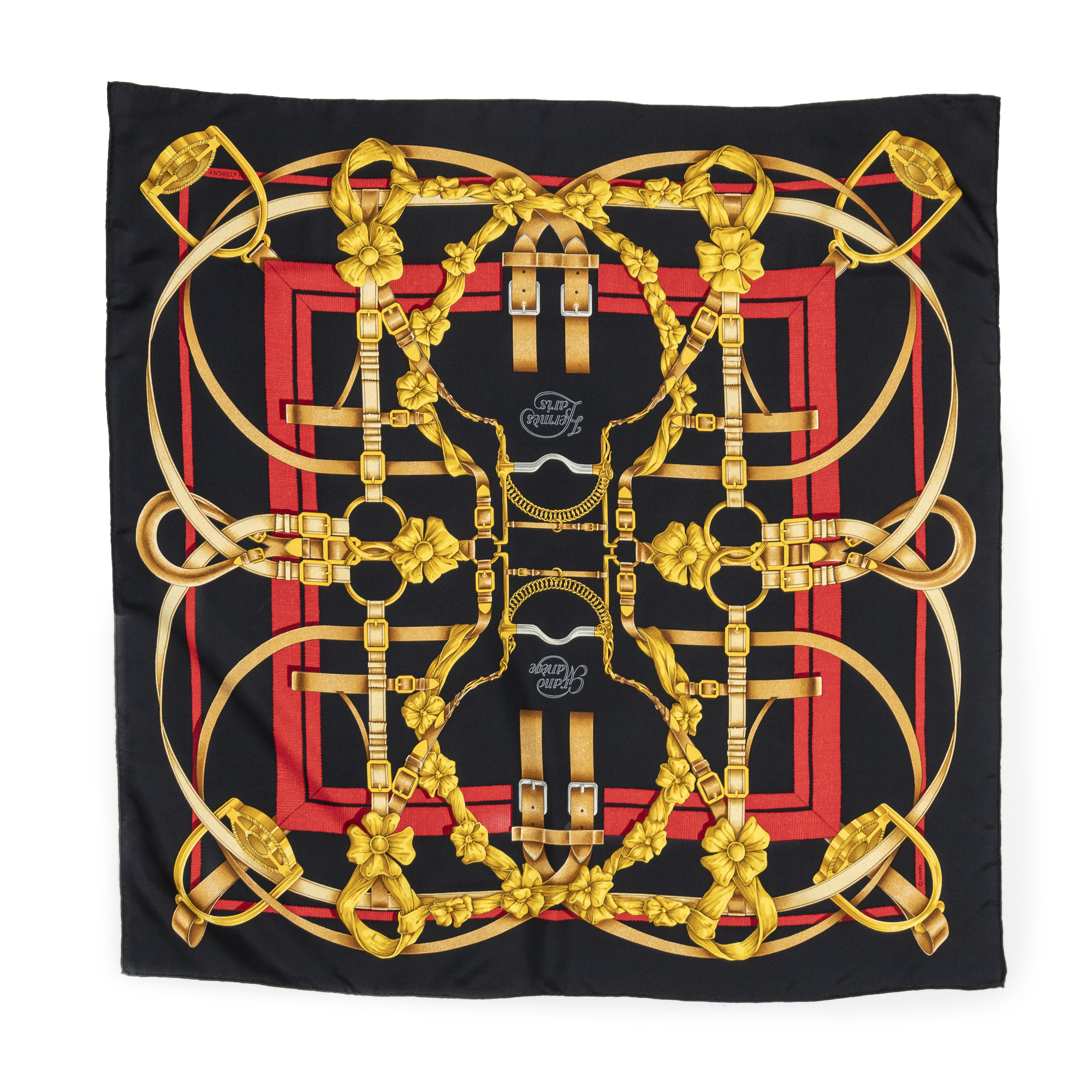 Hermès Scarf en Noir/Rouge/Or