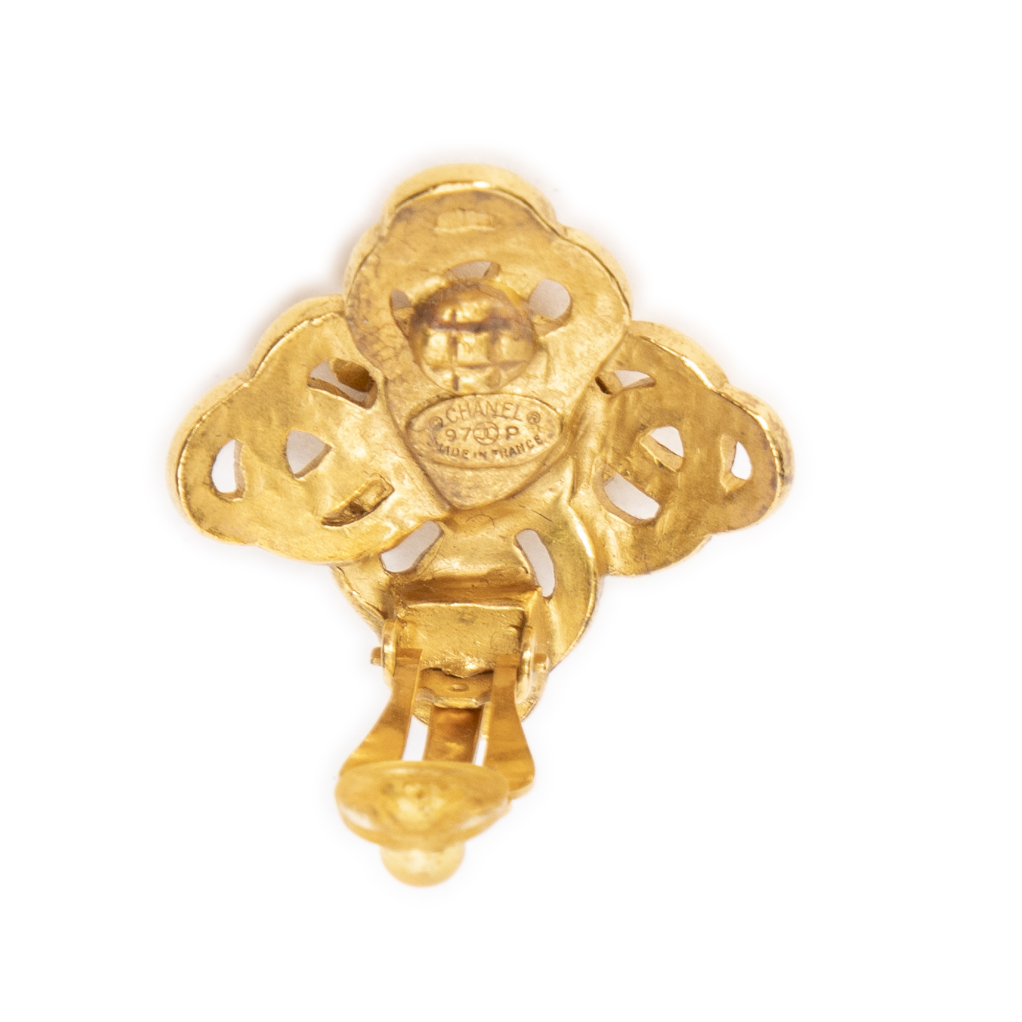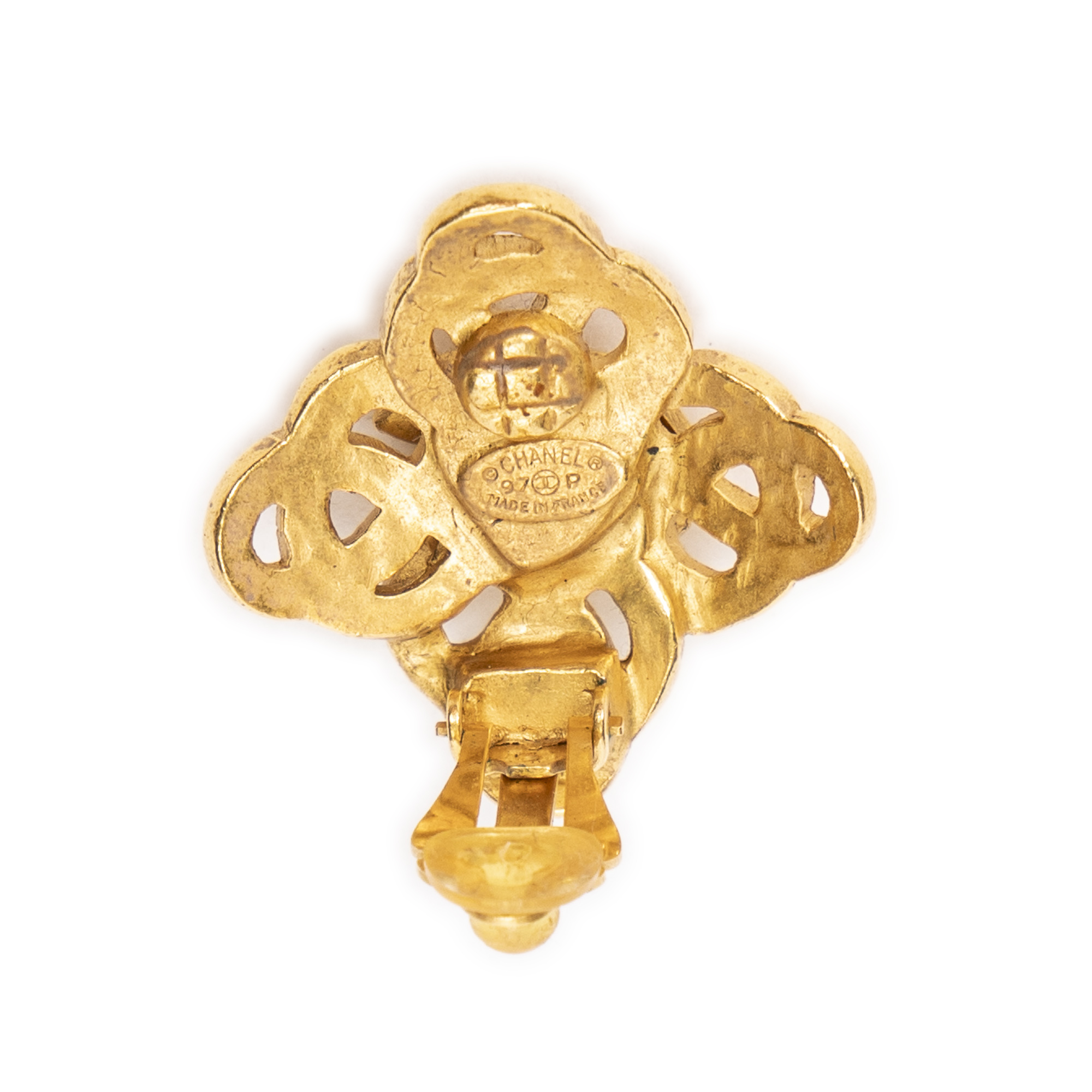 Chanel Boucles d’oreilles CC Clip On Earrings en Or et Or. Le produit est en Excellent état (A).