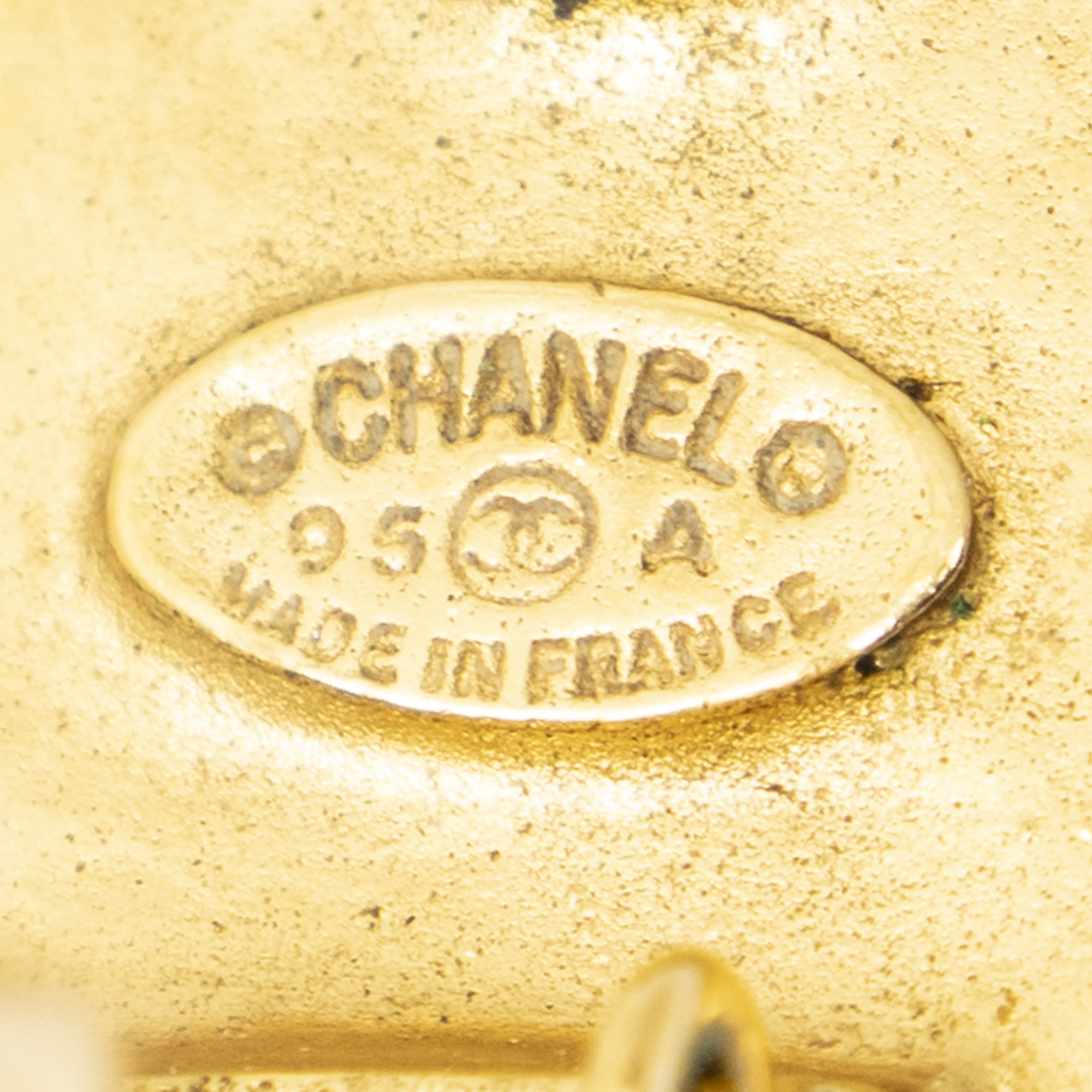 Chanel boucles d’oreilles CC Gripoix Dangle Clip On Earrings en or et plaqué or. Le produit est en Excellent état (A).