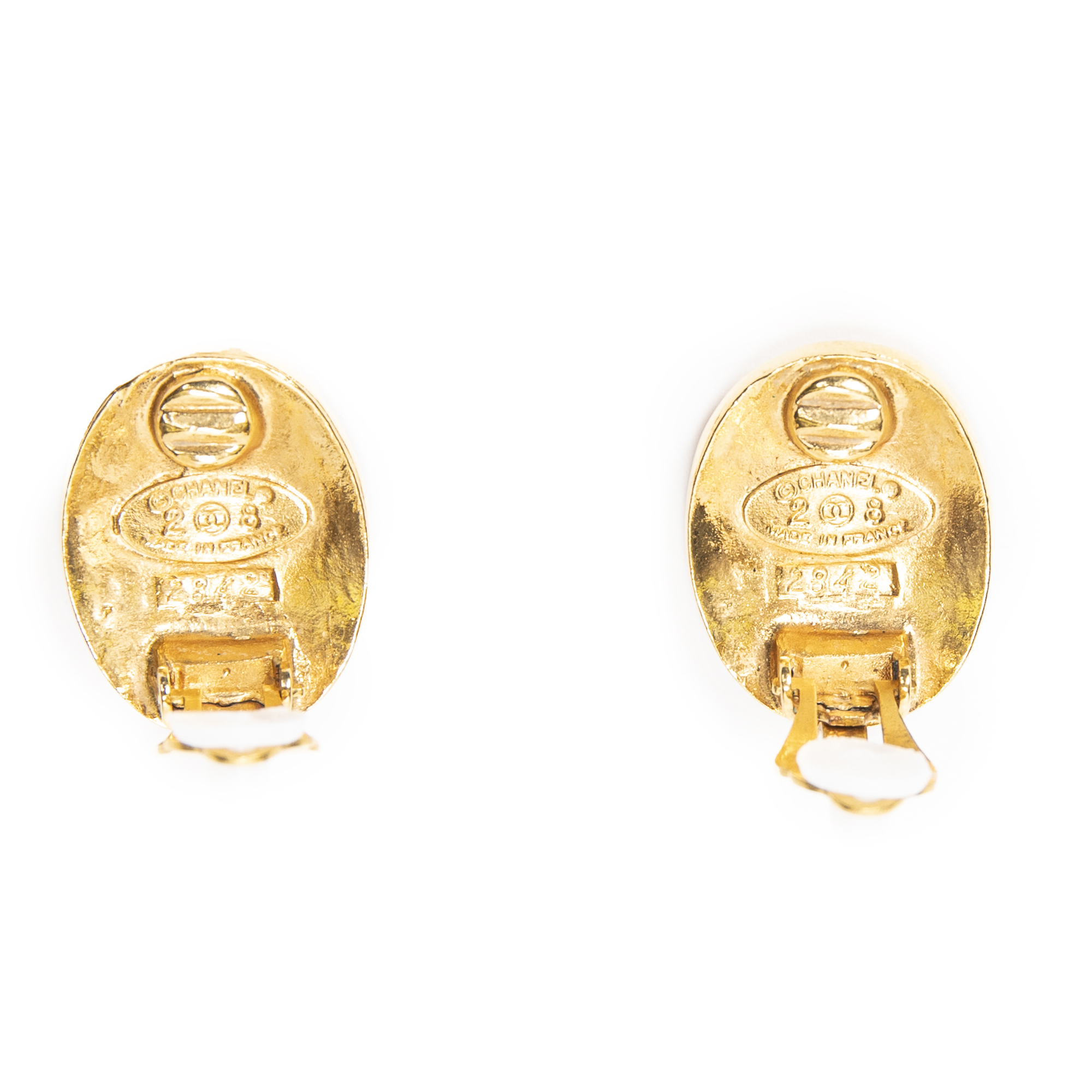 Chanel Boucles d’oreilles CC Oval Clip On Earrings en Gold et Plaqué or. Le produit est en Excellent état (A).