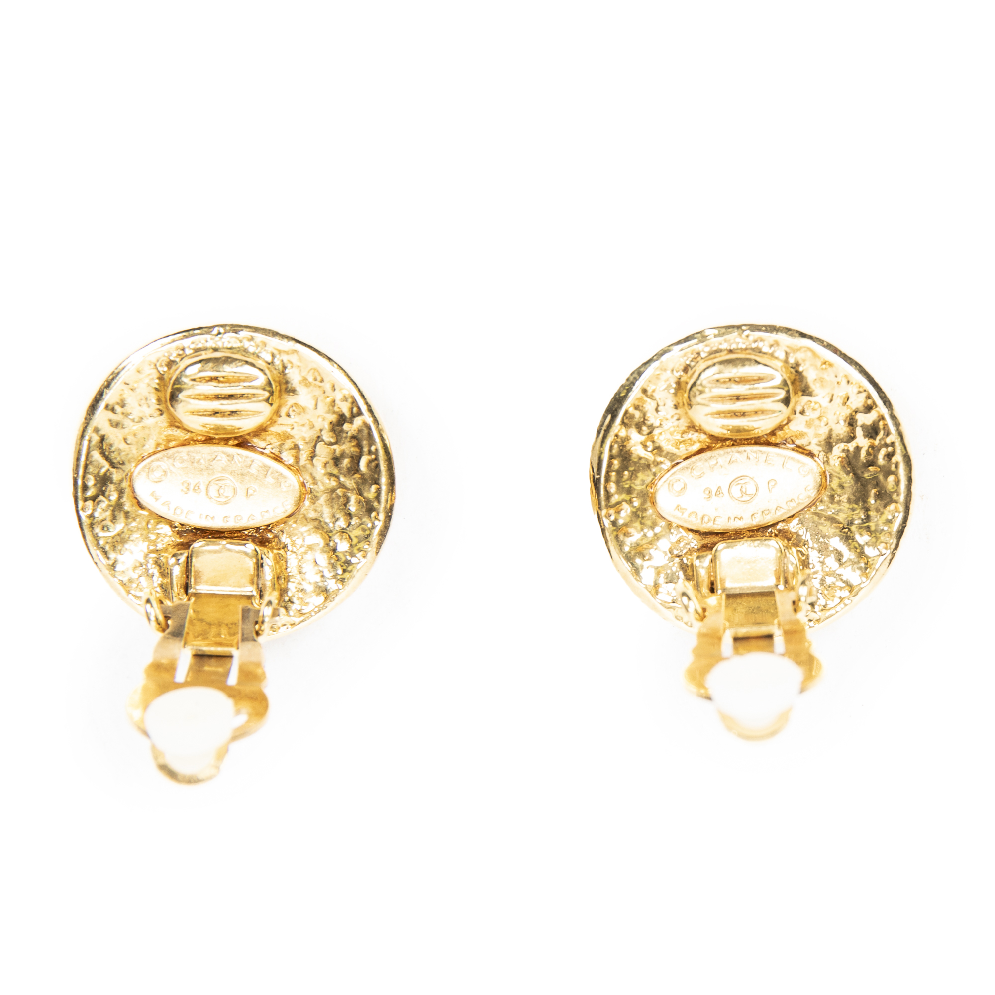 Chanel Boucles d’oreilles CC Round Clip On Earrings en Gold et Plaqué or. Le produit est en Excellent état (A).