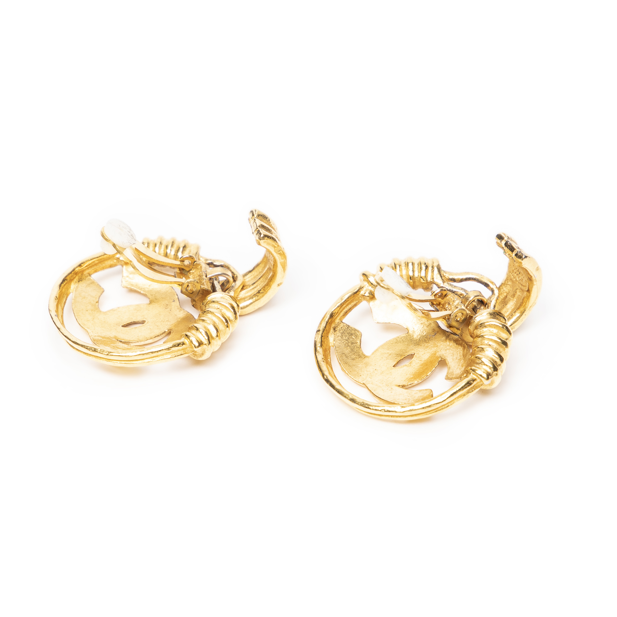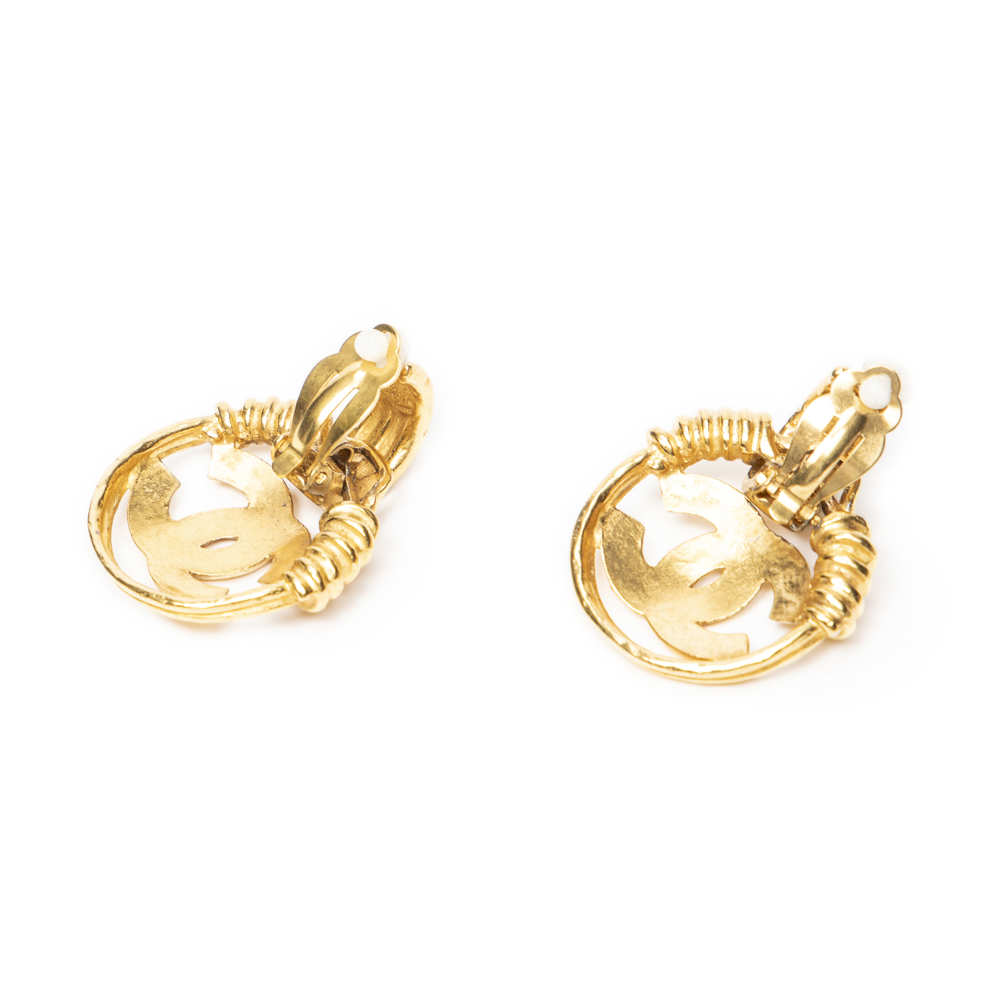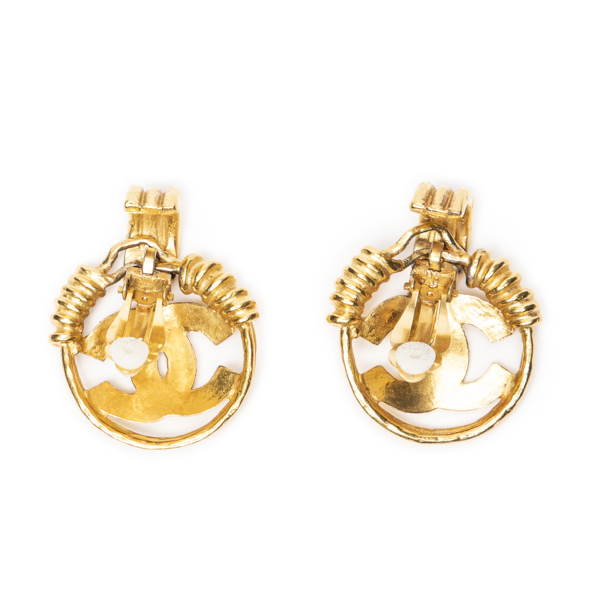 Chanel Boucles d’oreilles CC Round Dangle Clip On Earrings en Or et Plaqué or. Le produit est en Excellent état (A).