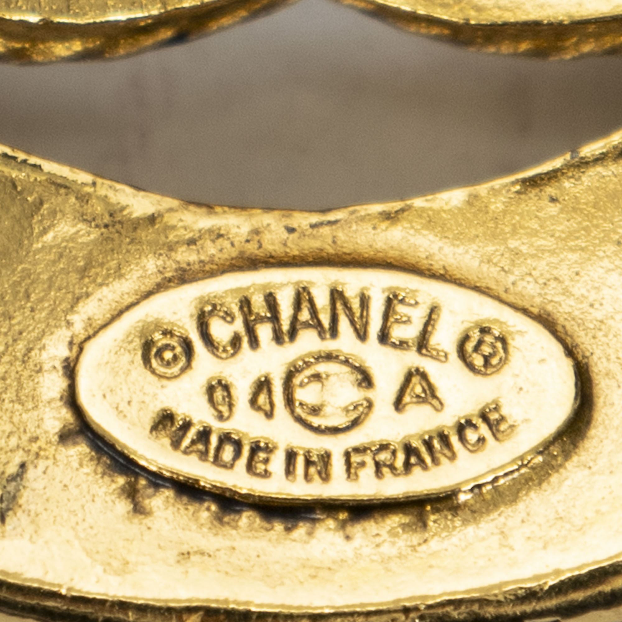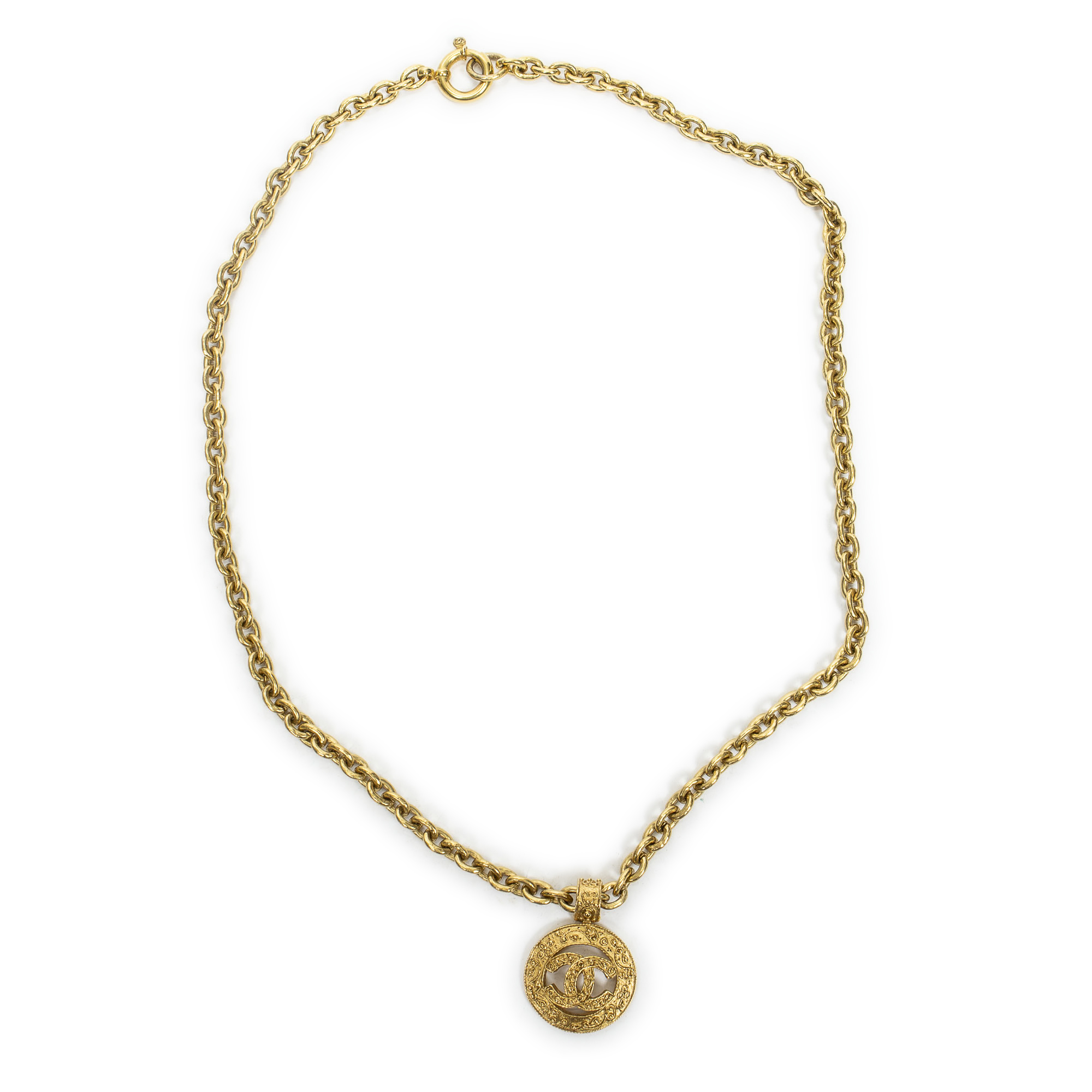 Chanel Boucles d’oreilles CC Round Logo Medallion Pendant Necklace en Or et Or. Le produit est en Excellent état (A).