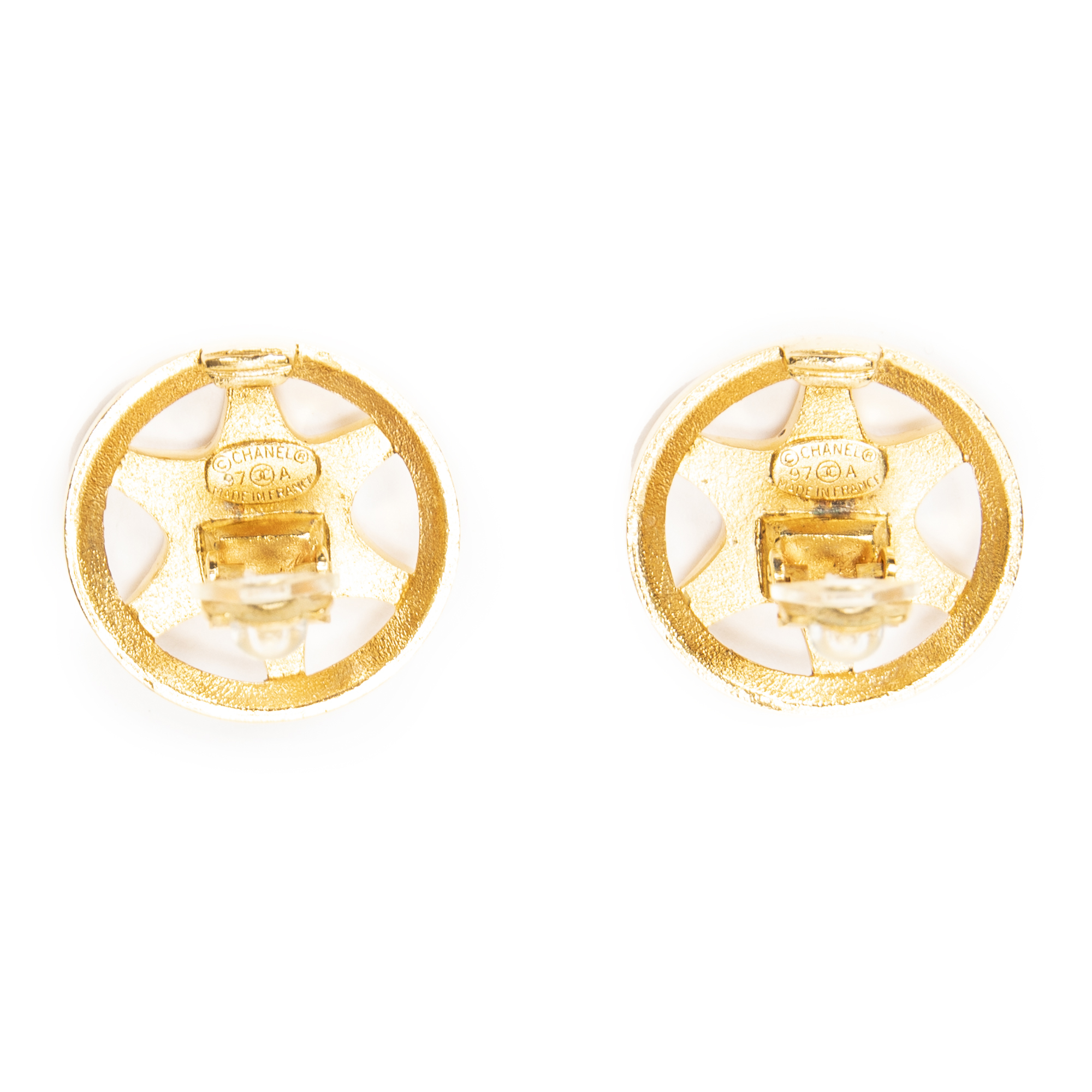 Chanel Boucles d’oreilles CC Round Star Clip On Earrings en Gold et Plaqué or. Le produit est en Excellent état (A).