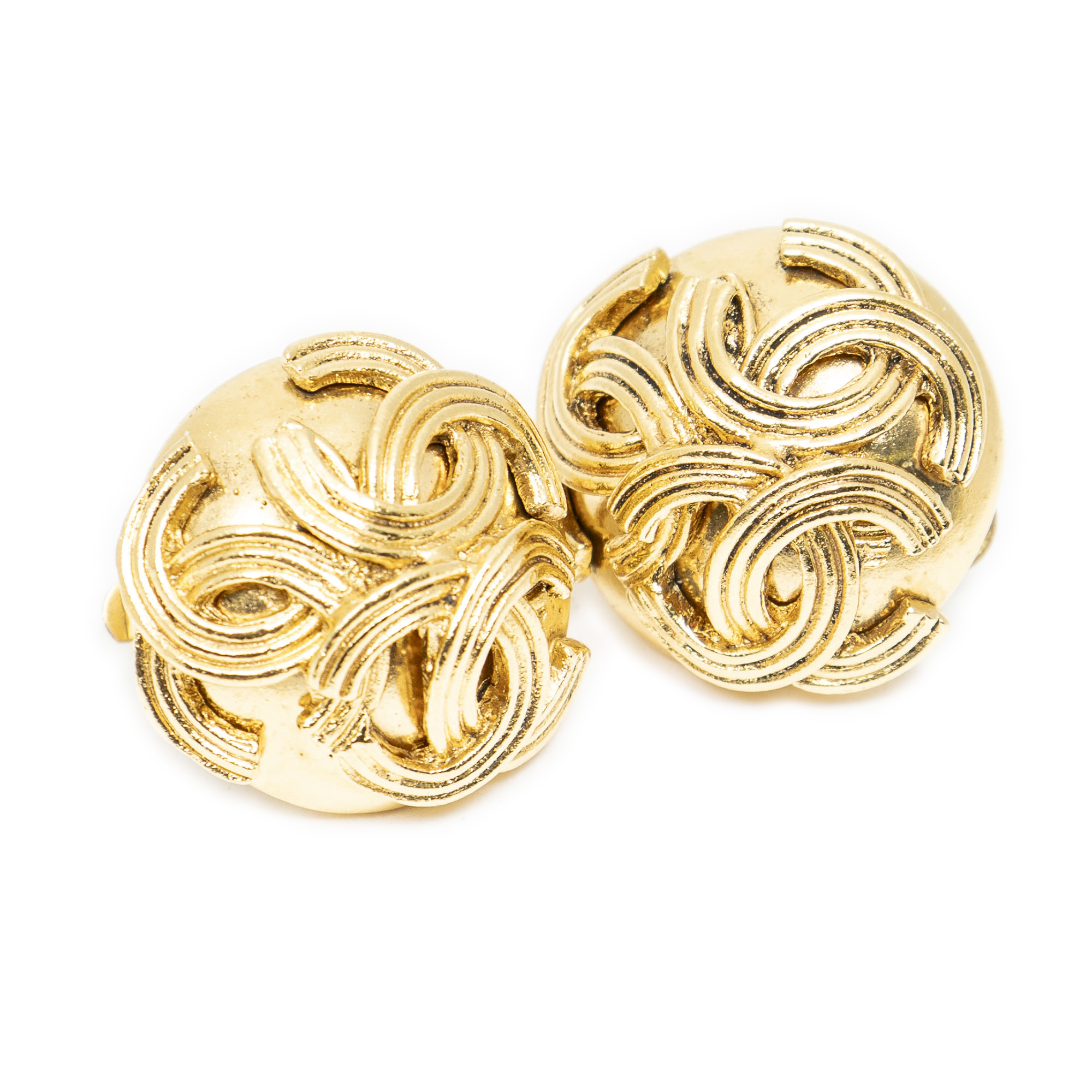 Chanel Boucles d’oreilles Triple CC Round Clip On Earrings en Or et Or. Le produit est en Excellent état (A).