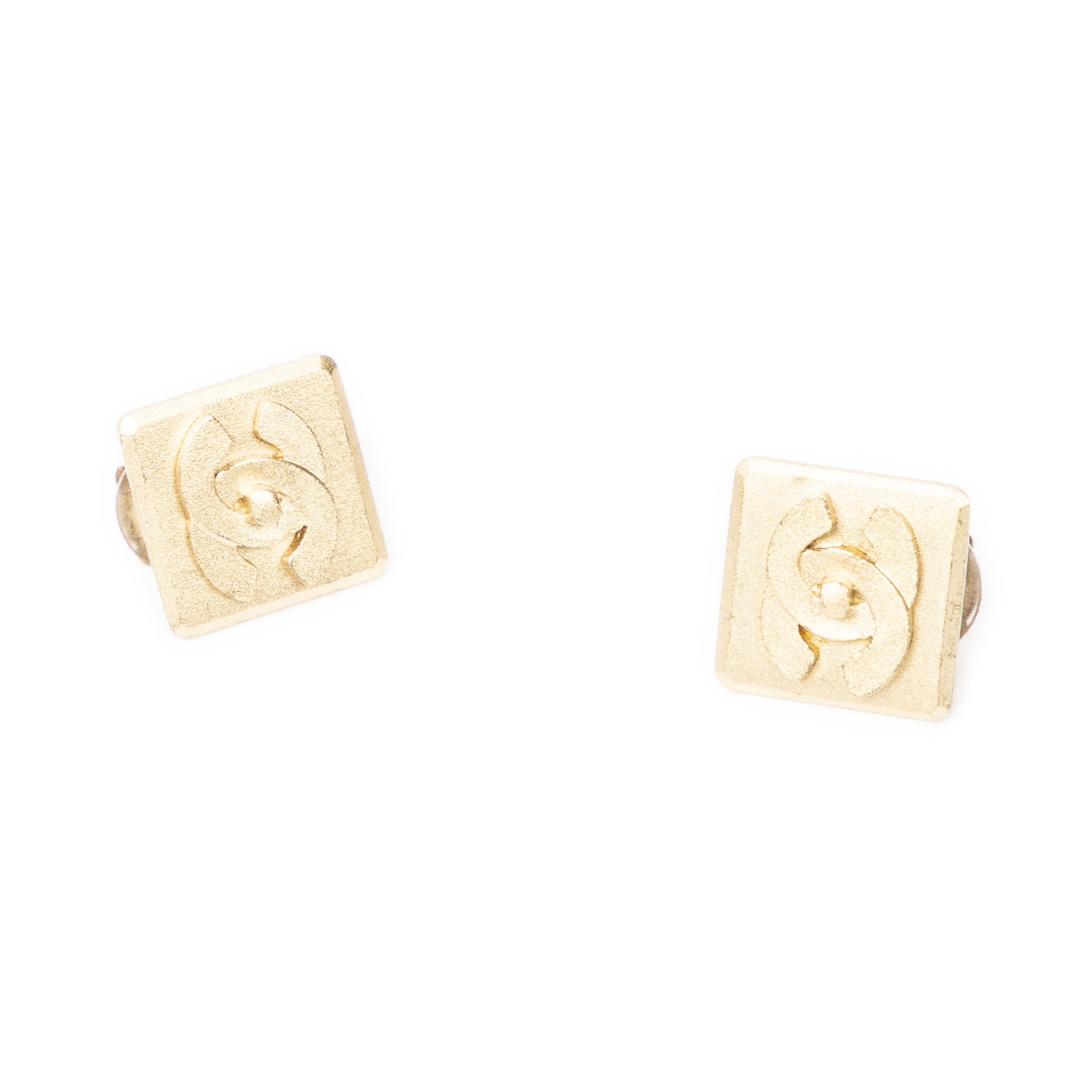 Chanel Boucles d’oreilles Vintage Square CC Clip On Earrings en Or et Or. Le produit est en Excellent état (A).