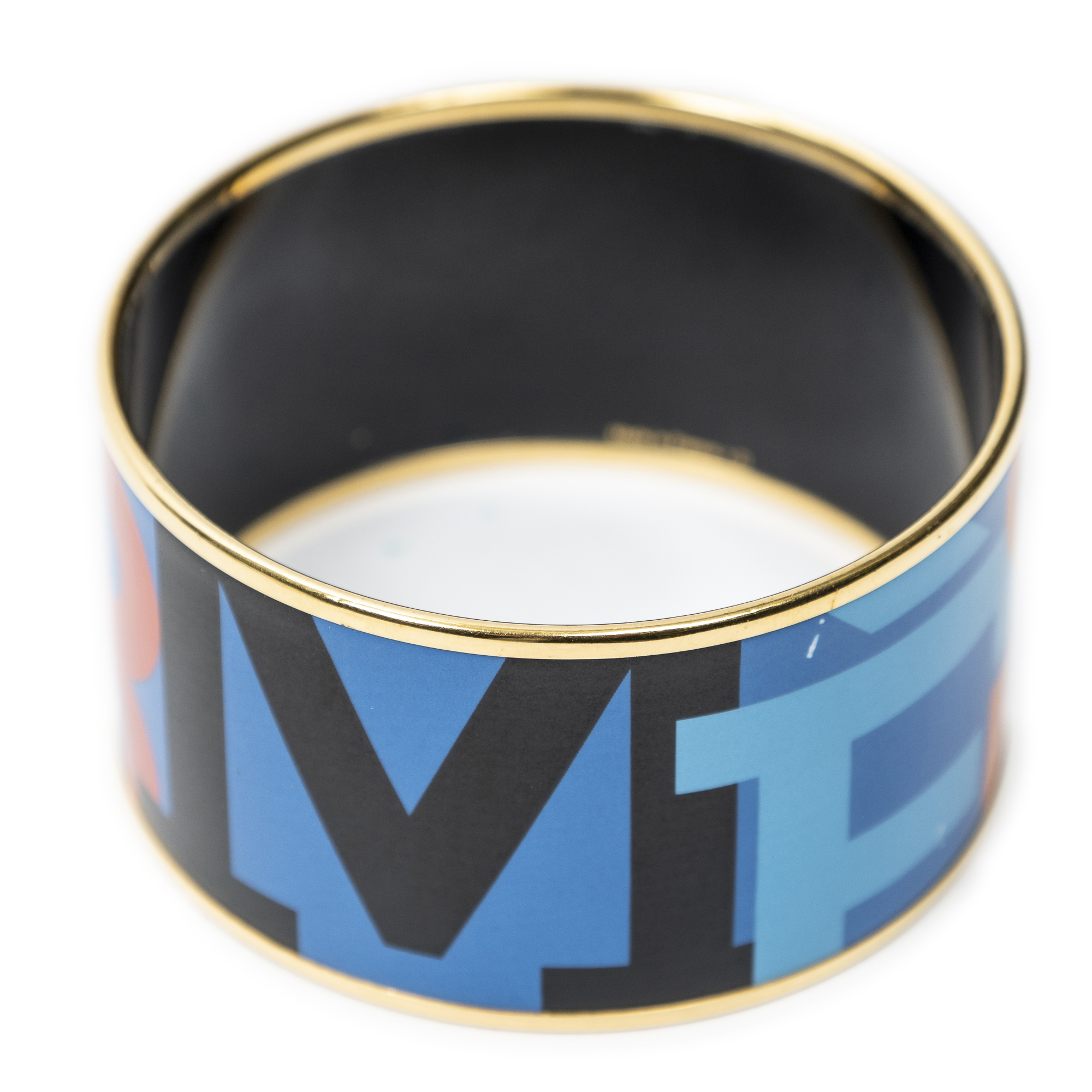 Hermès Bracelet Enamel Bangle TGM en Blue et Plaqué or. Le produit est en Excellent état (A).