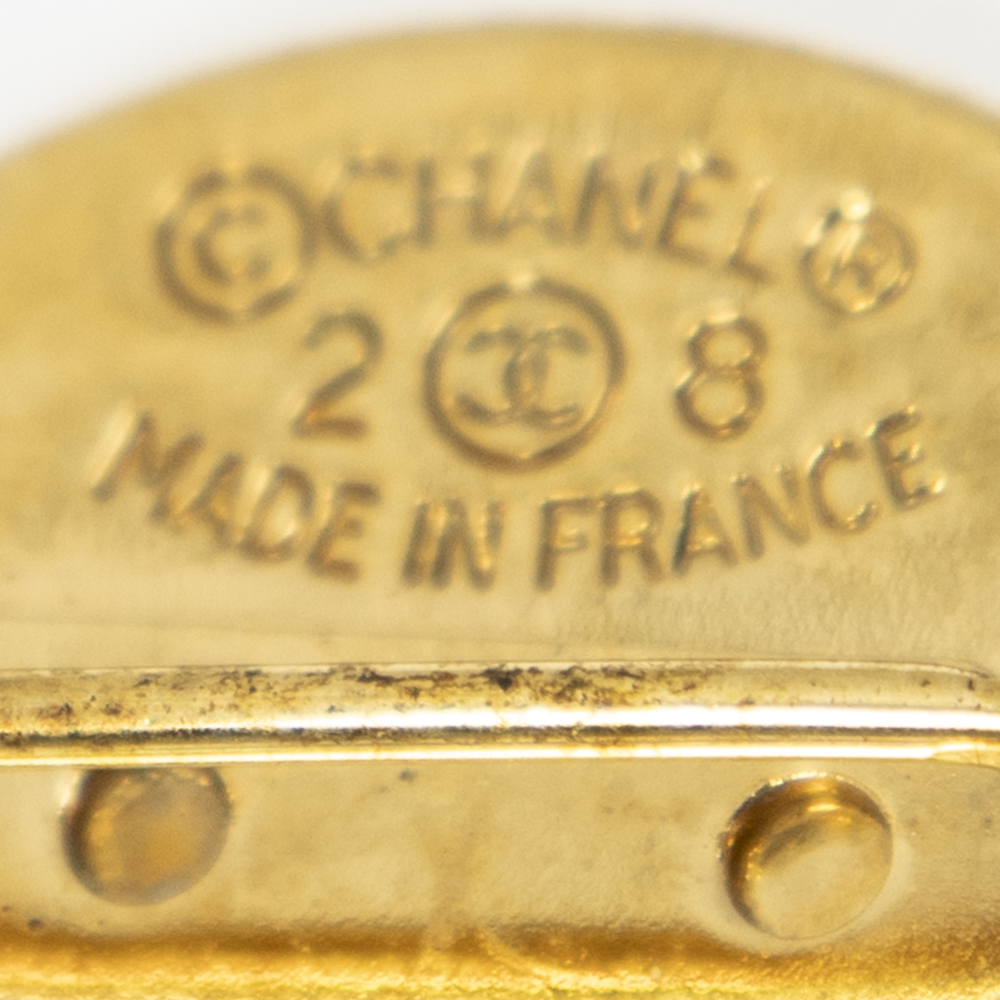 Chanel Broche CC Quilted Flap Brooch en Gold et Plaqué or. Le produit est en Excellent état (A).