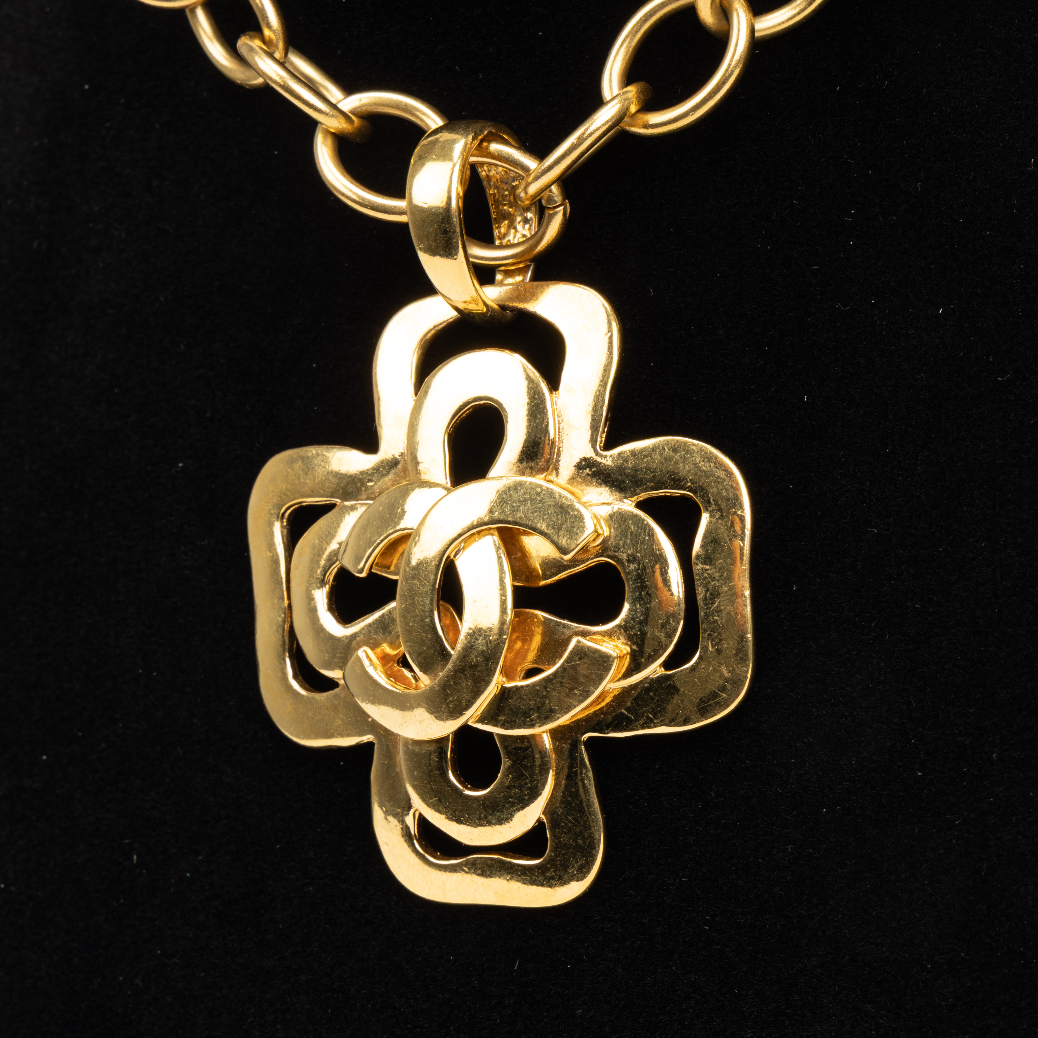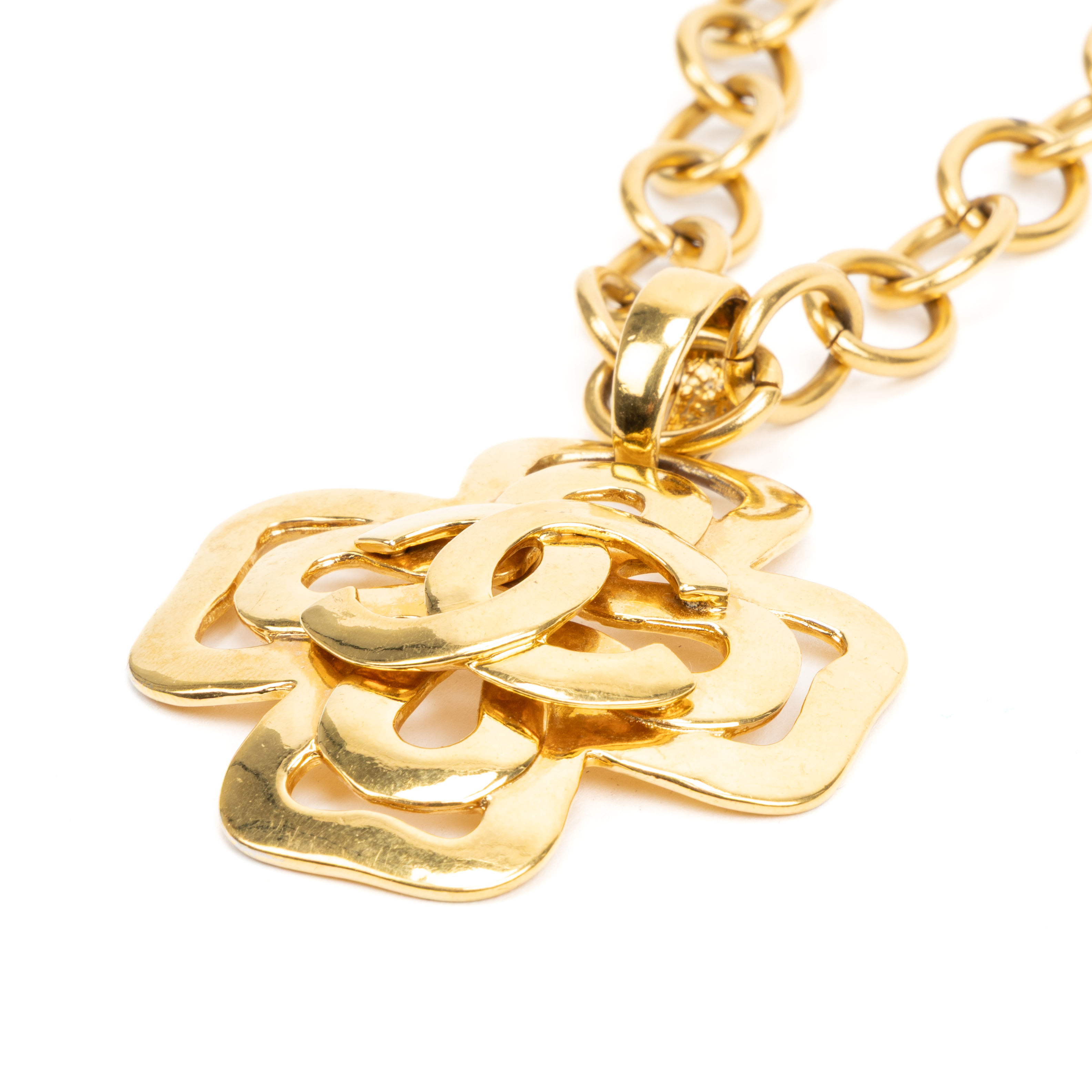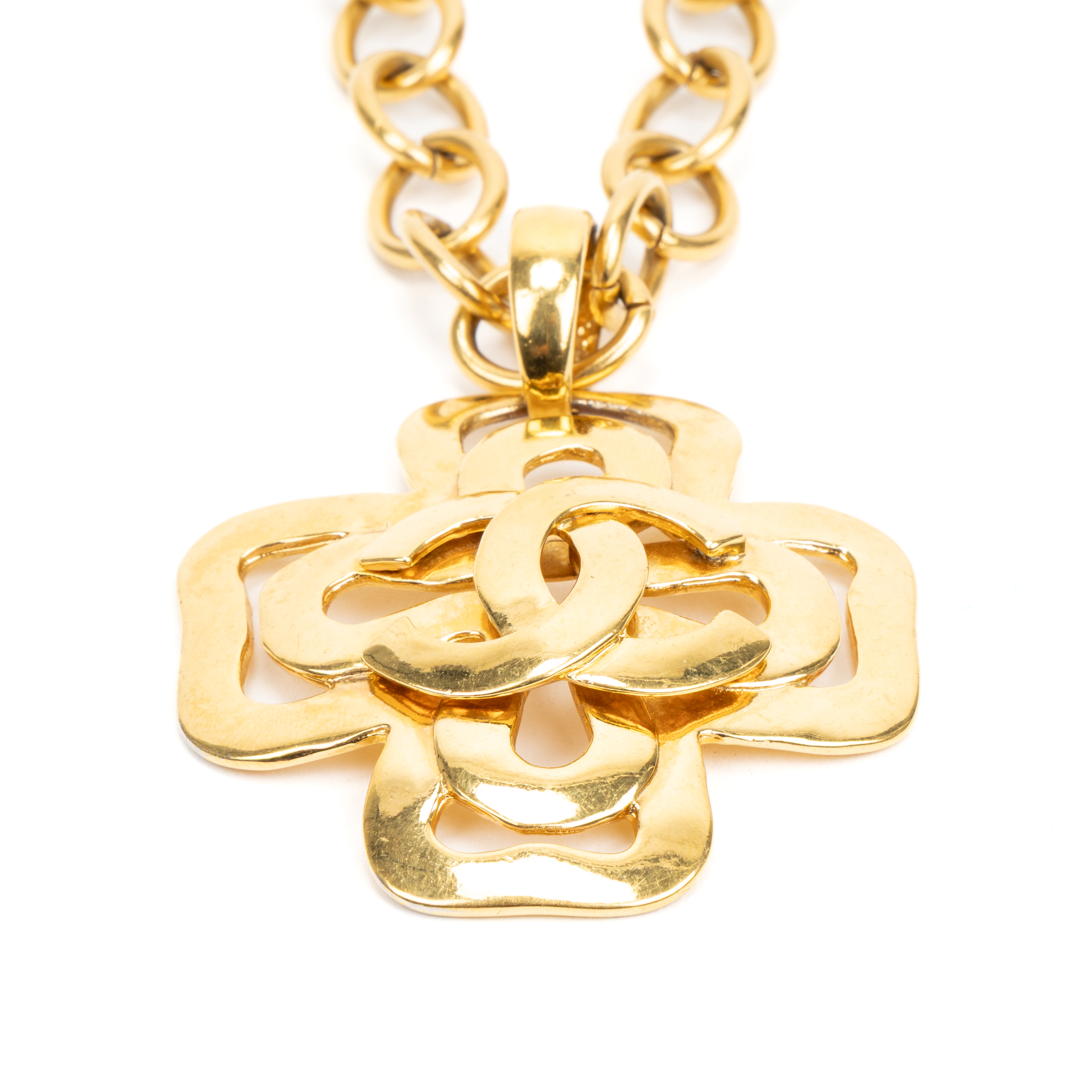 Chanel Collier CC Clover Pendant Necklace en Or et Or. Le produit est en Excellent état (A).