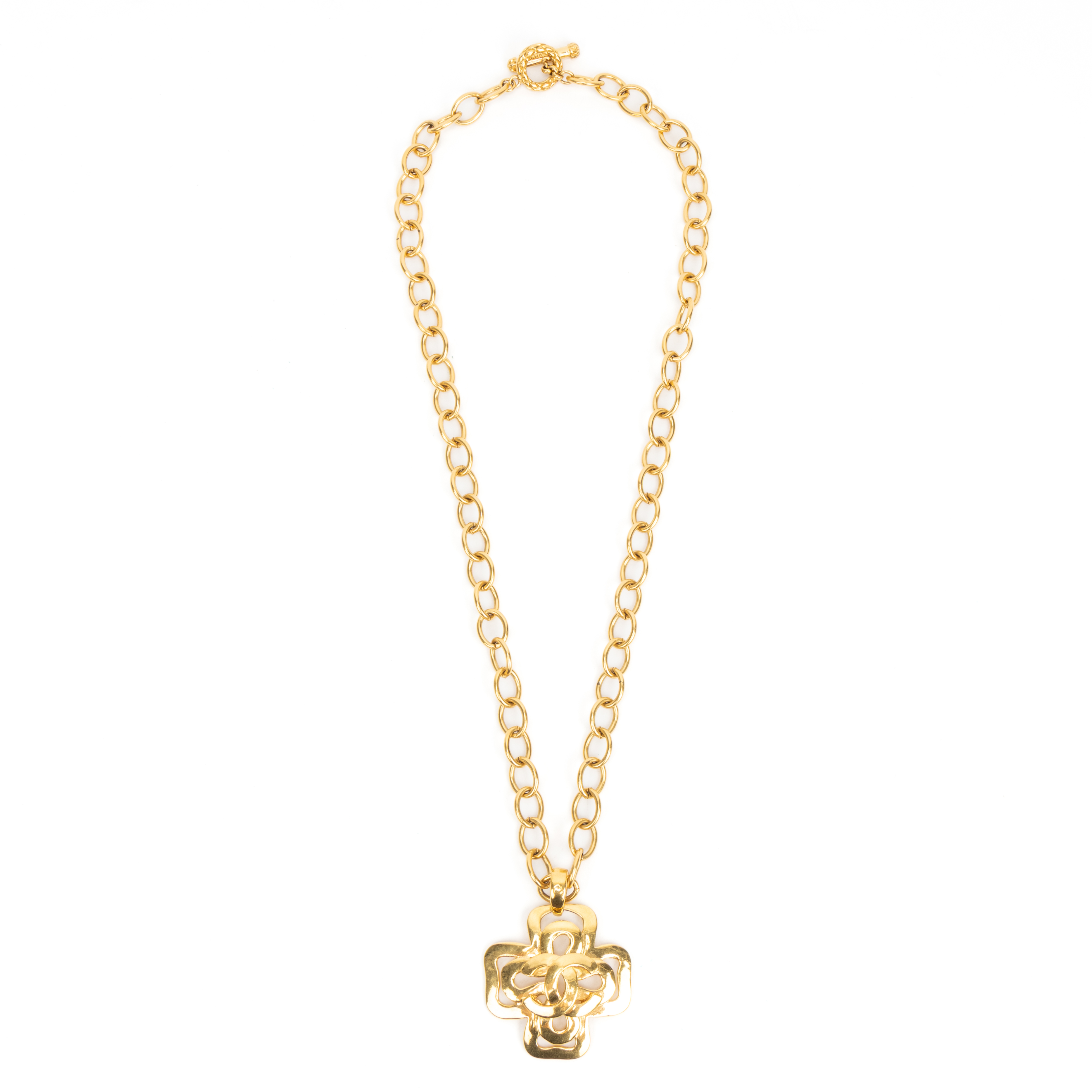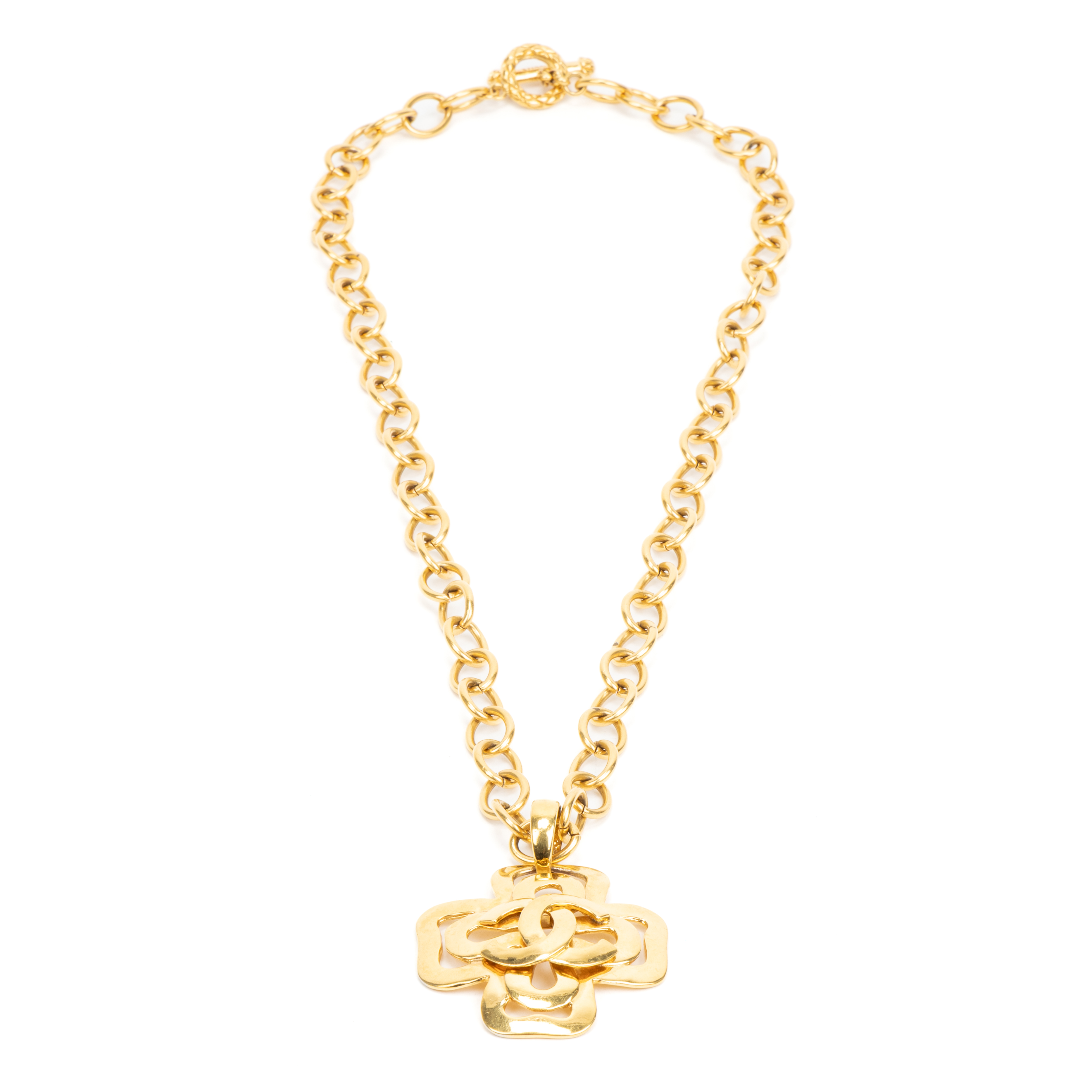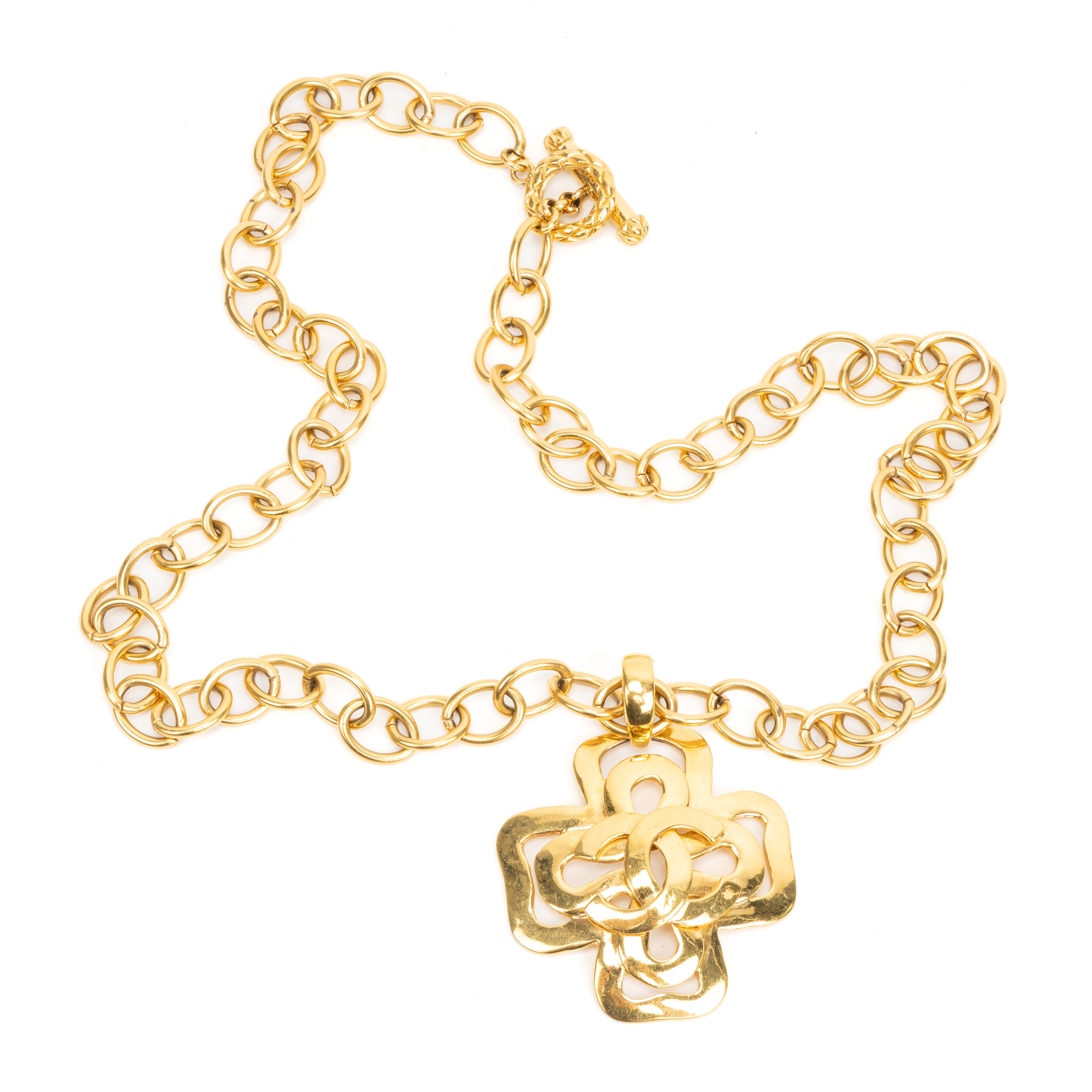 Chanel Collier CC Clover Pendant Necklace en Or et Or. Le produit est en Excellent état (A).
