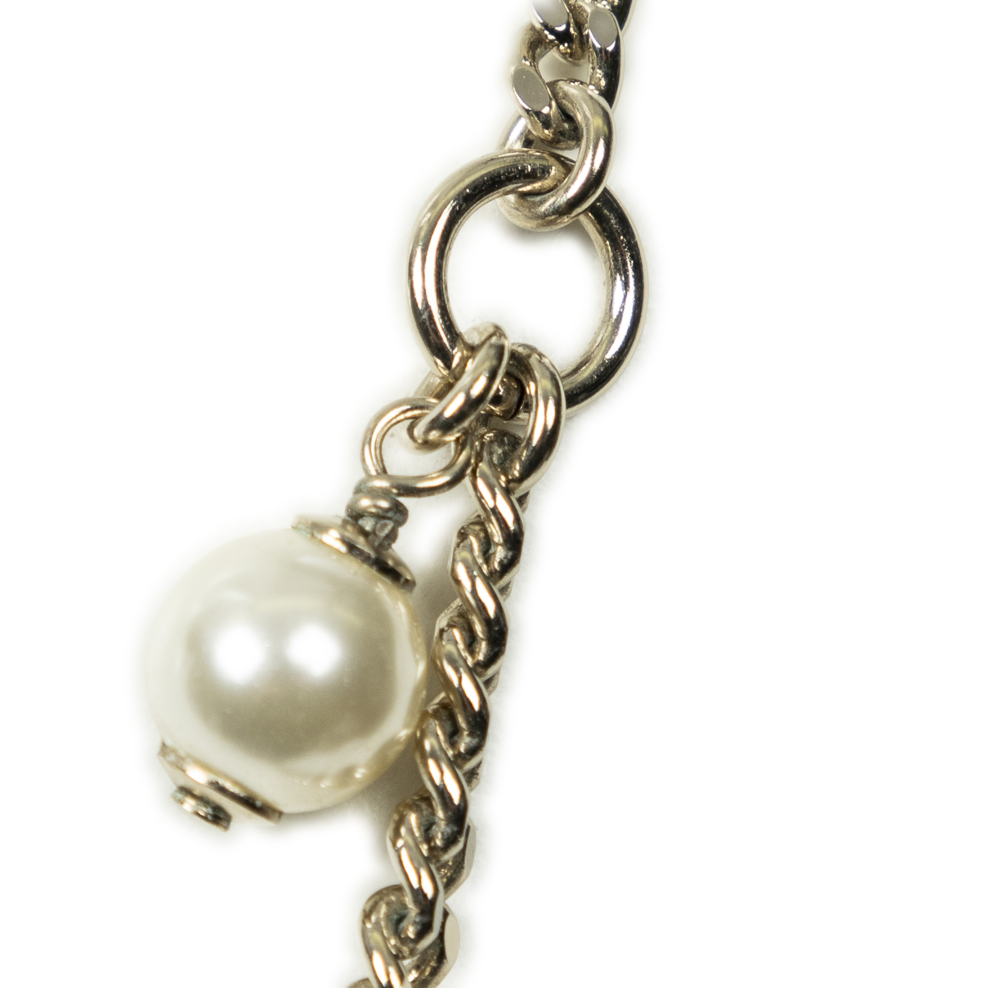 Chanel Pearl Rhinestone Perfume Bottle Necklace en Gold