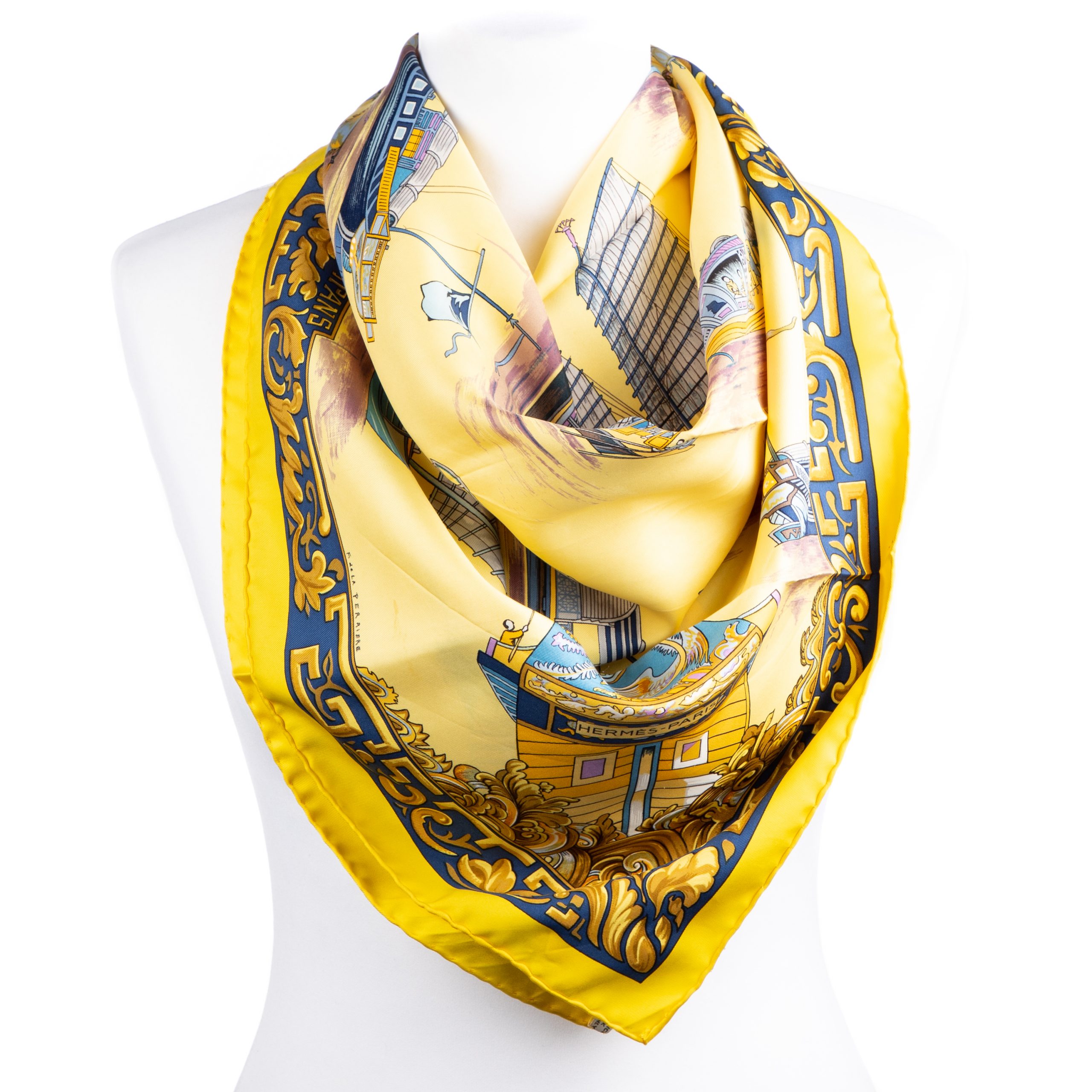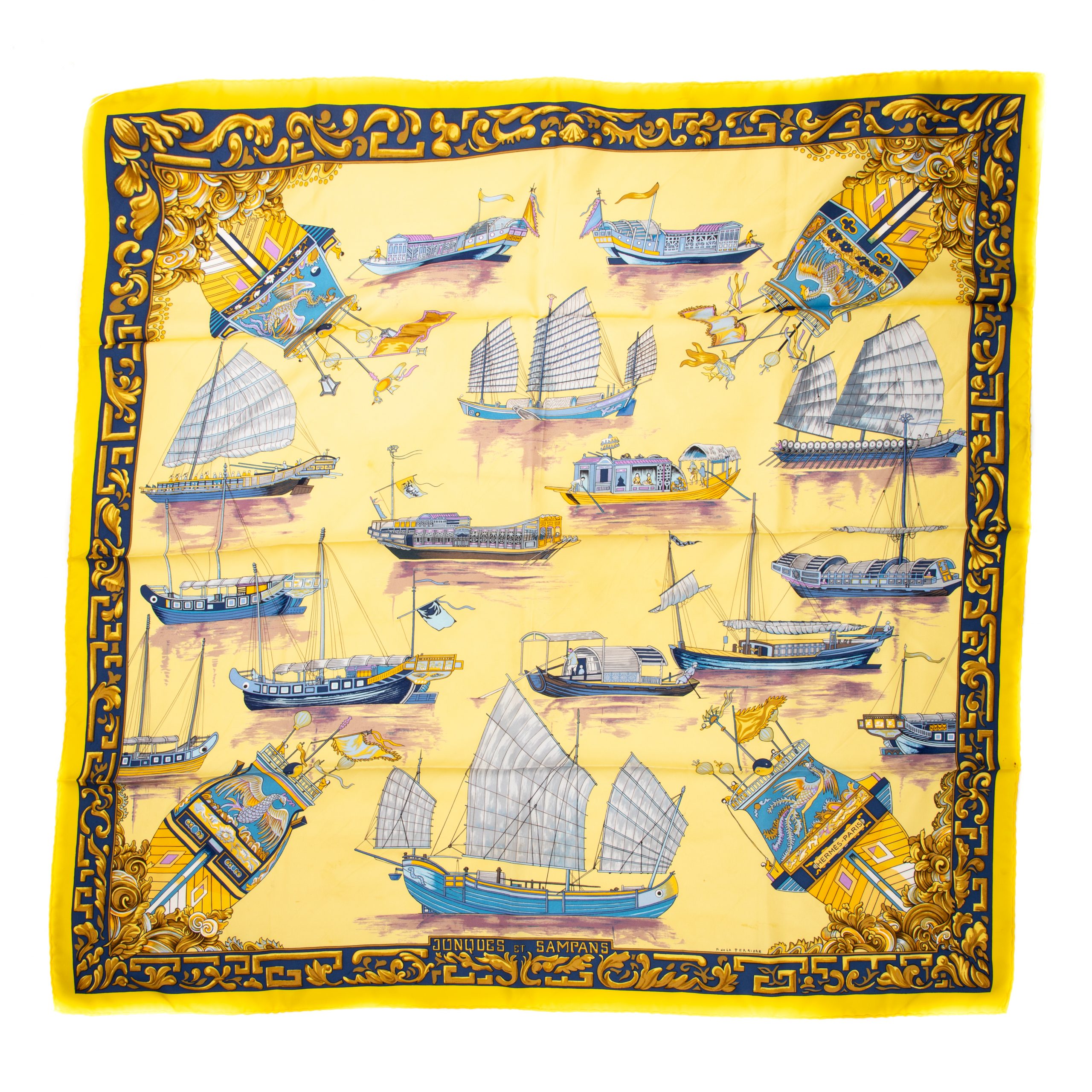 Hermès Écharpe Jonques et Sampans 90 en Jaune et AUCUN. Le produit est en Très Bon état (AB).