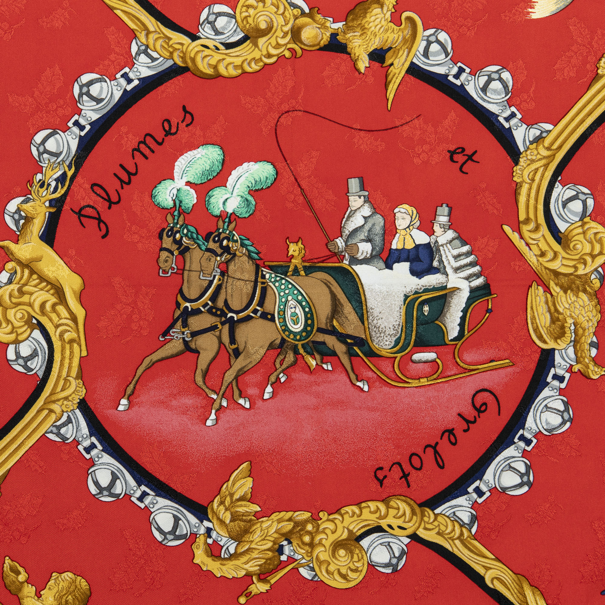 Hermès Écharpe Scarf en Bleu marine/Rouge/Or et Aucun. Le produit est en Excellent état (A).