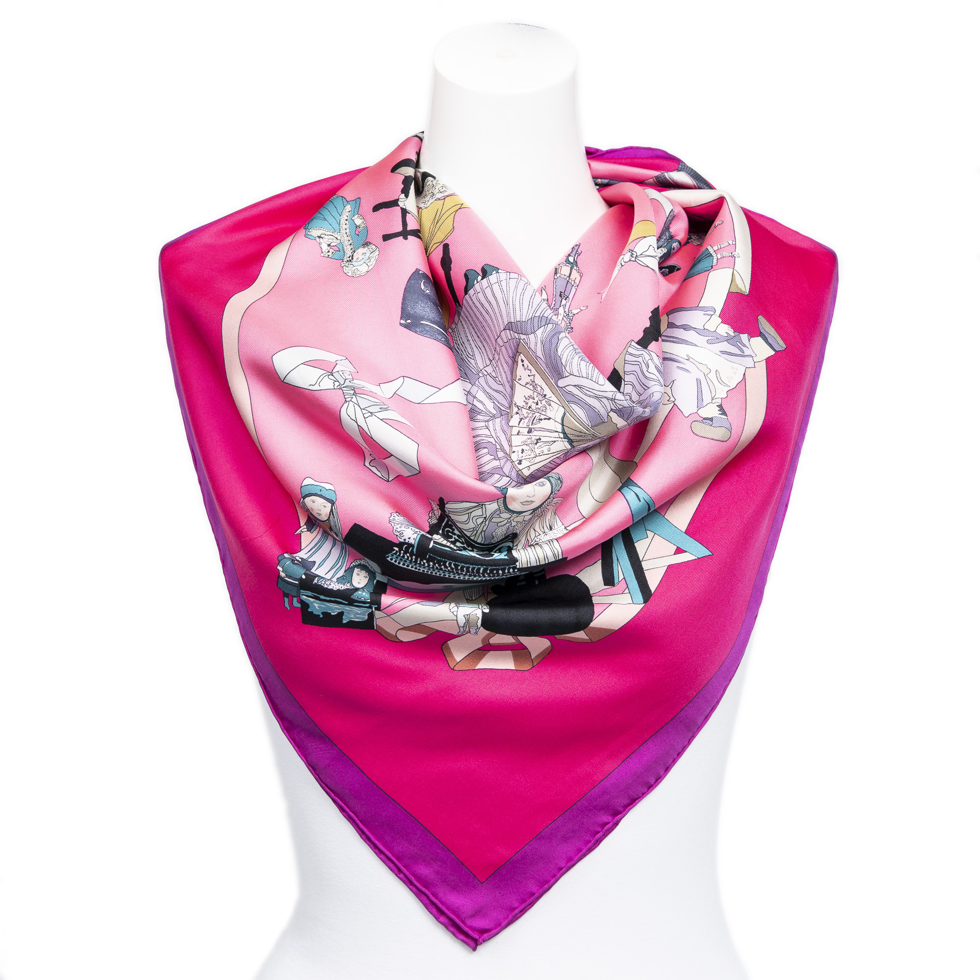 Hermès Scarf en Fuchsia/Rose/Violet/Gris