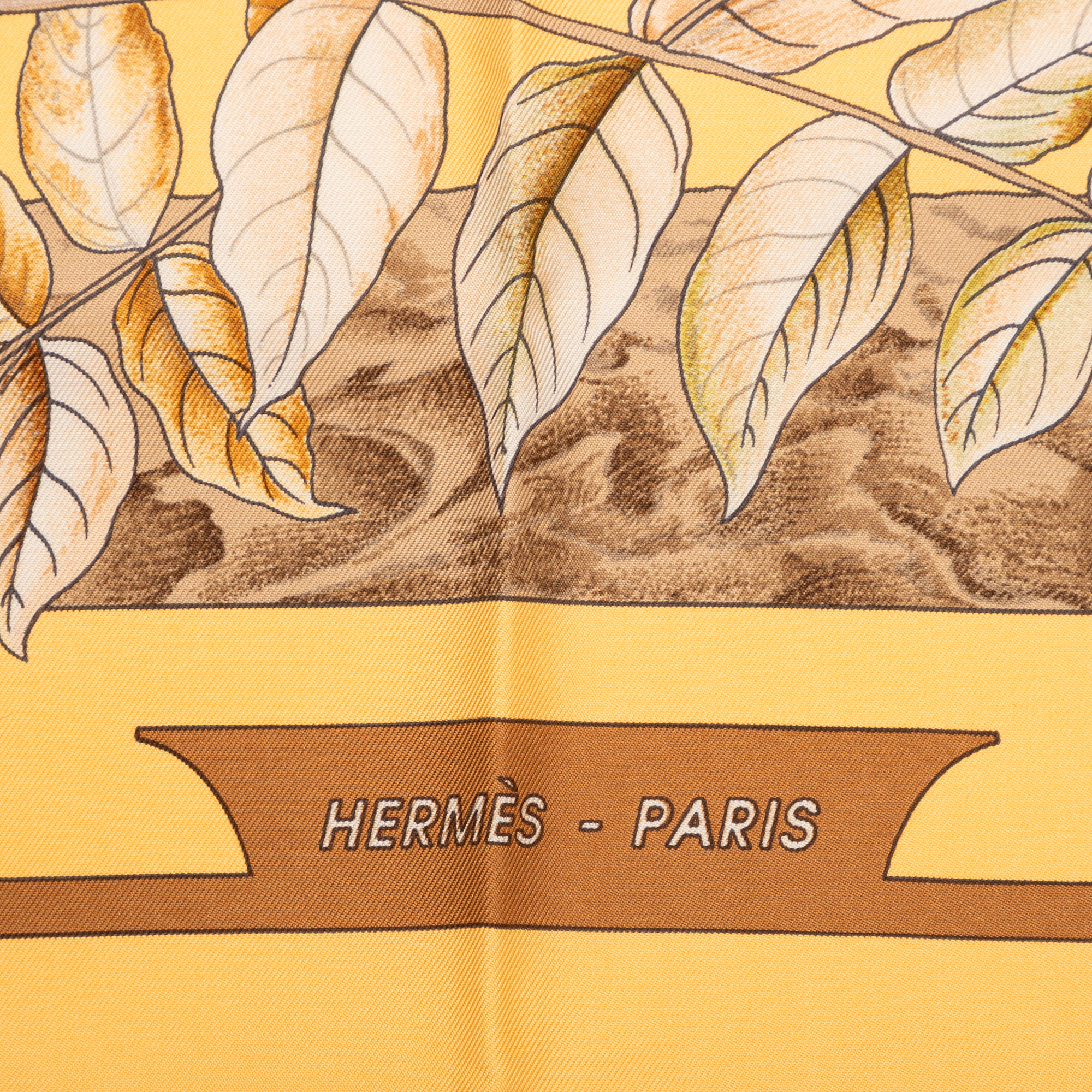 Hermès Écharpe Scarf en Jaune/Marron/Vert et . Le produit est en Parfait état (AA).