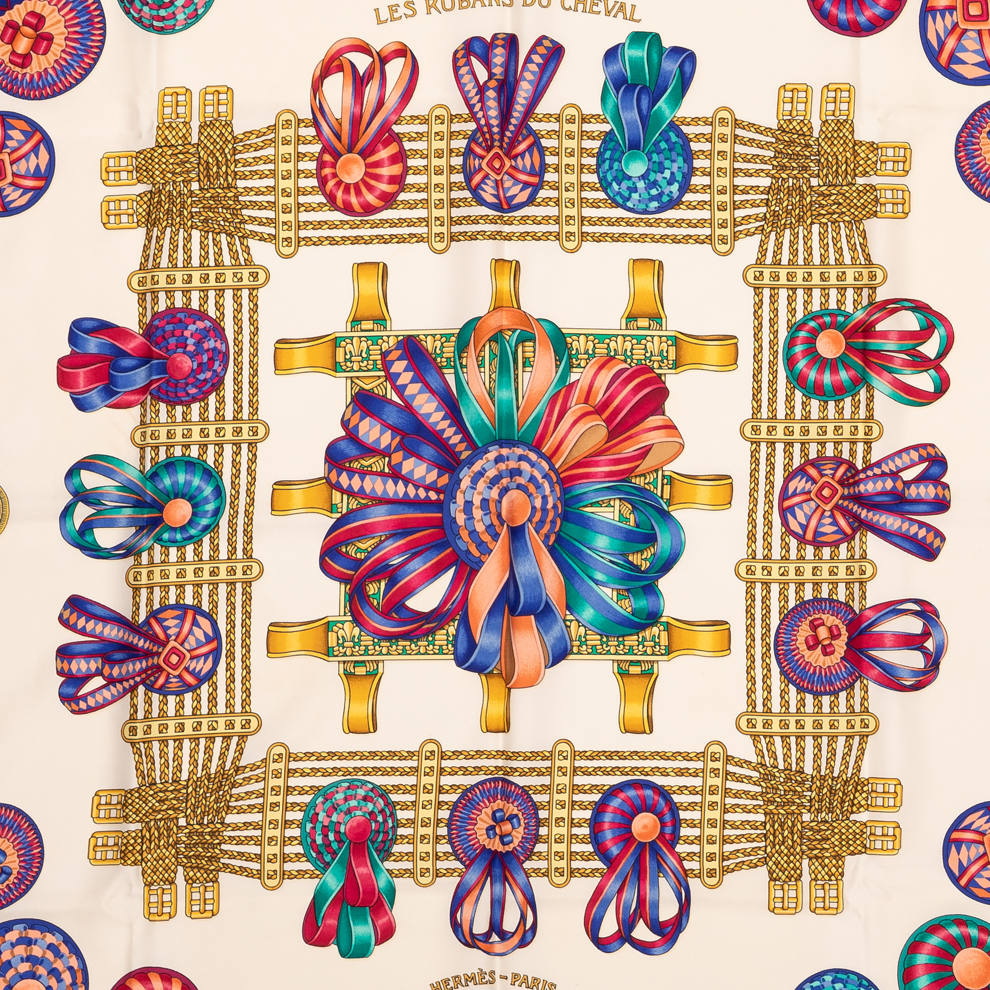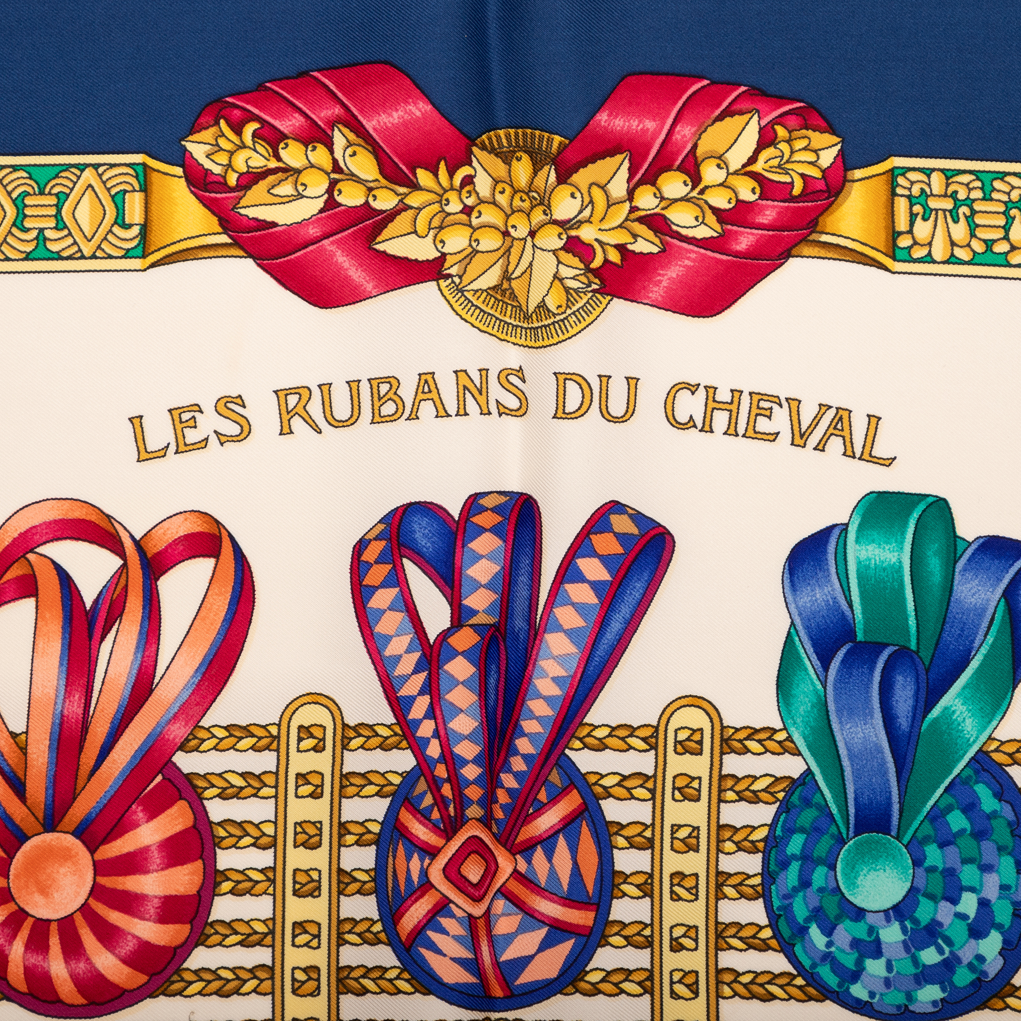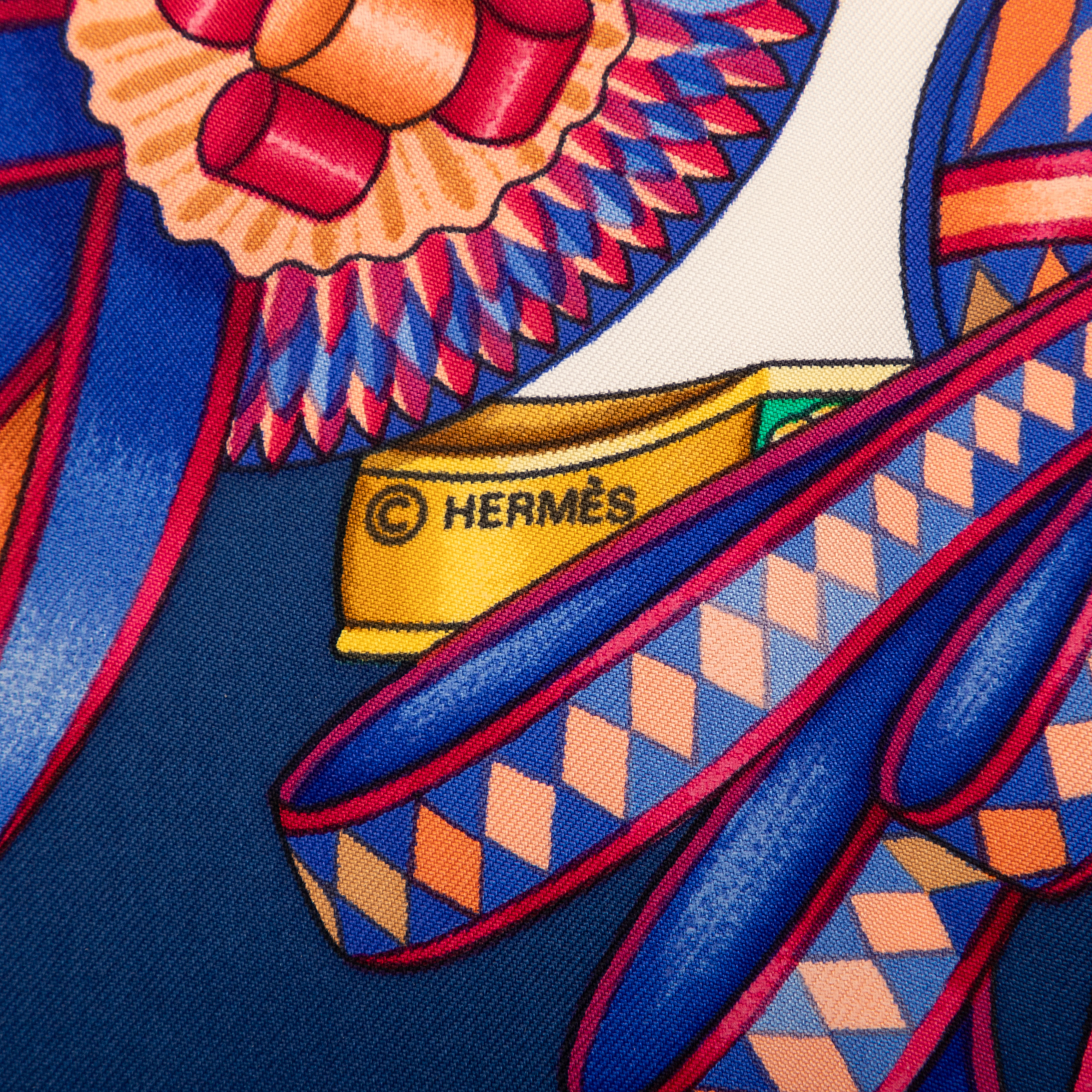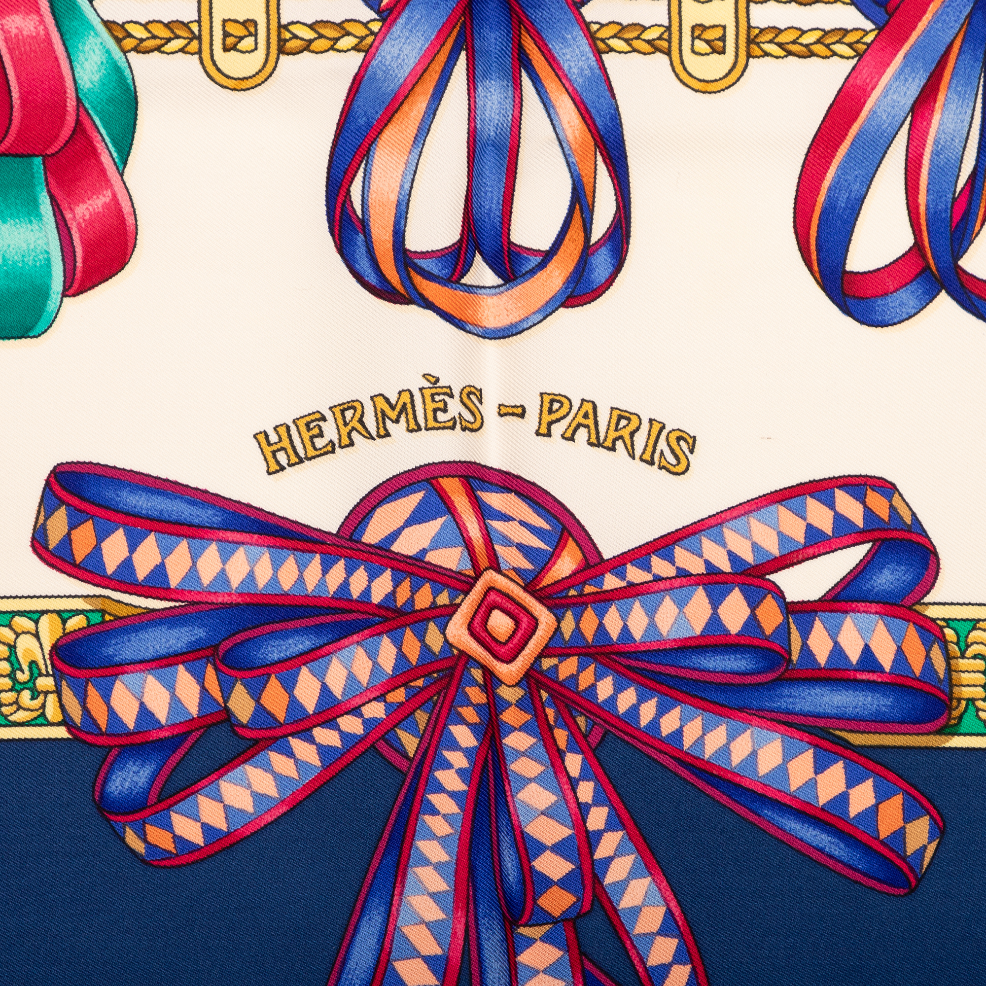 Hermès Écharpe Scarf en Marine/Ivoire/Rose et . Le produit est en Excellent état (A).