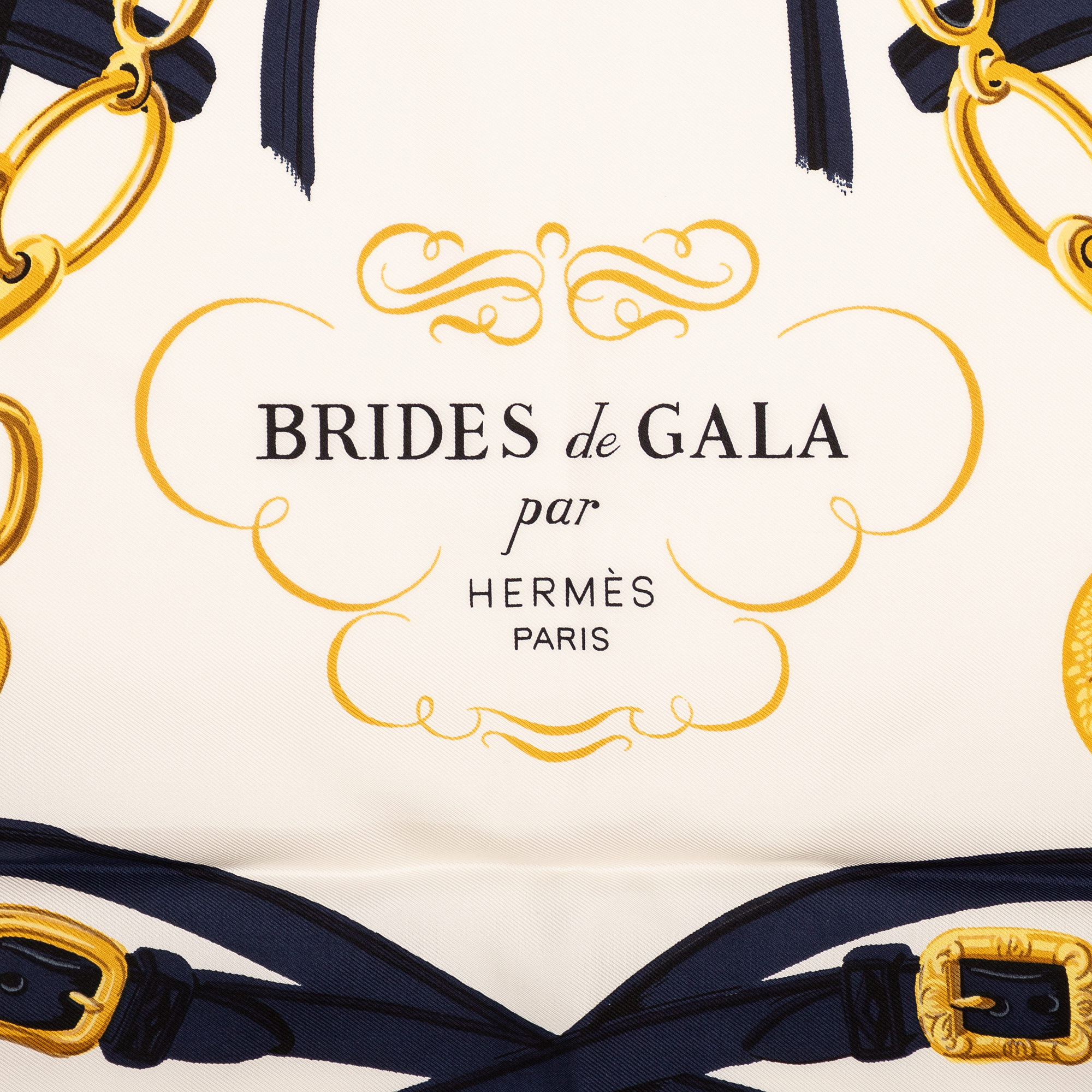 Hermès Écharpe Scarf en Marine/Or/Blanc et . Le produit est en Excellent état (A).
