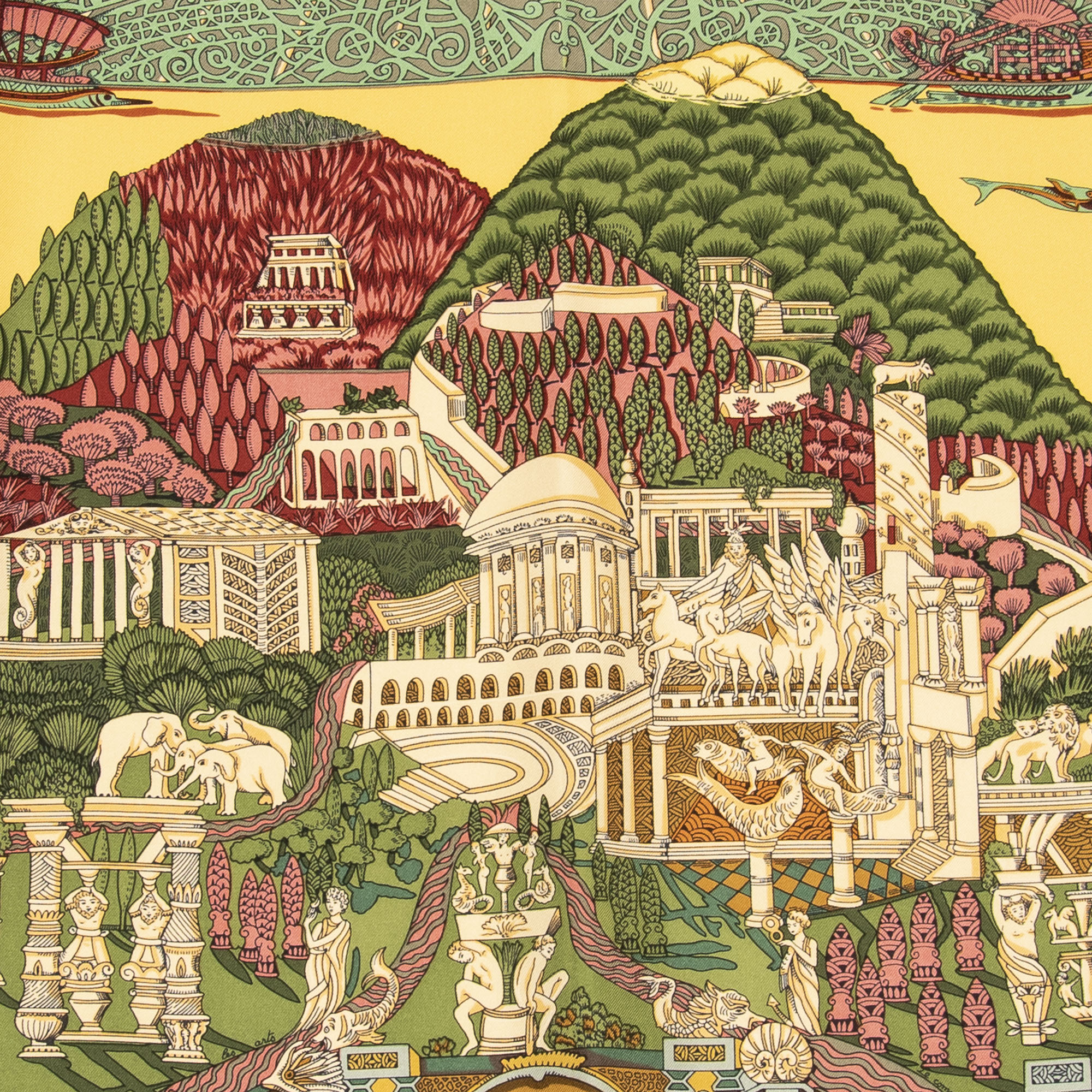 Hermès Écharpe Scarf en Orange/Jaune/Vert et Aucun. Le produit est en Parfait état (AA).