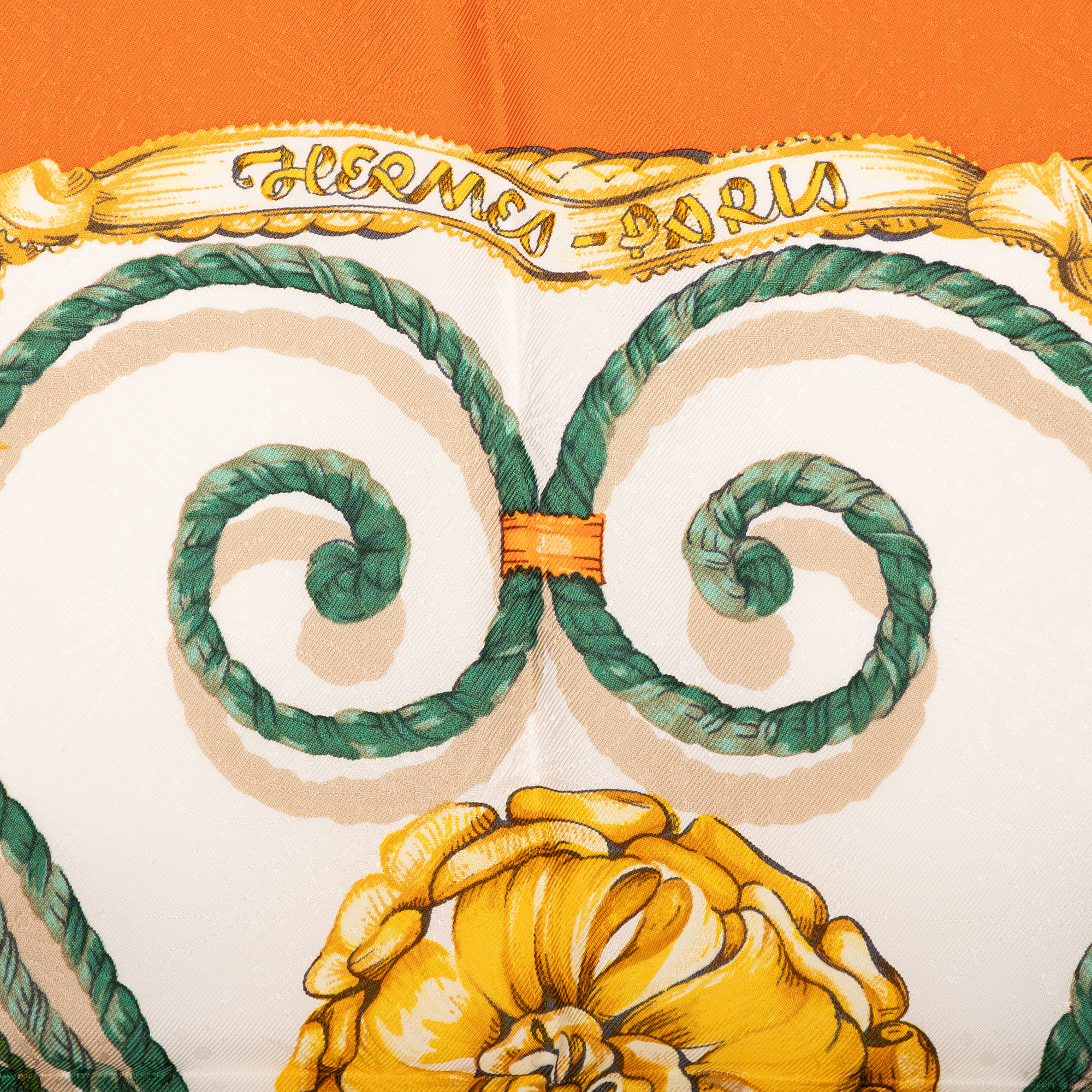 Hermès Écharpe Scarf en Orange/Vert/Blanc et . Le produit est en Parfait état (AA).