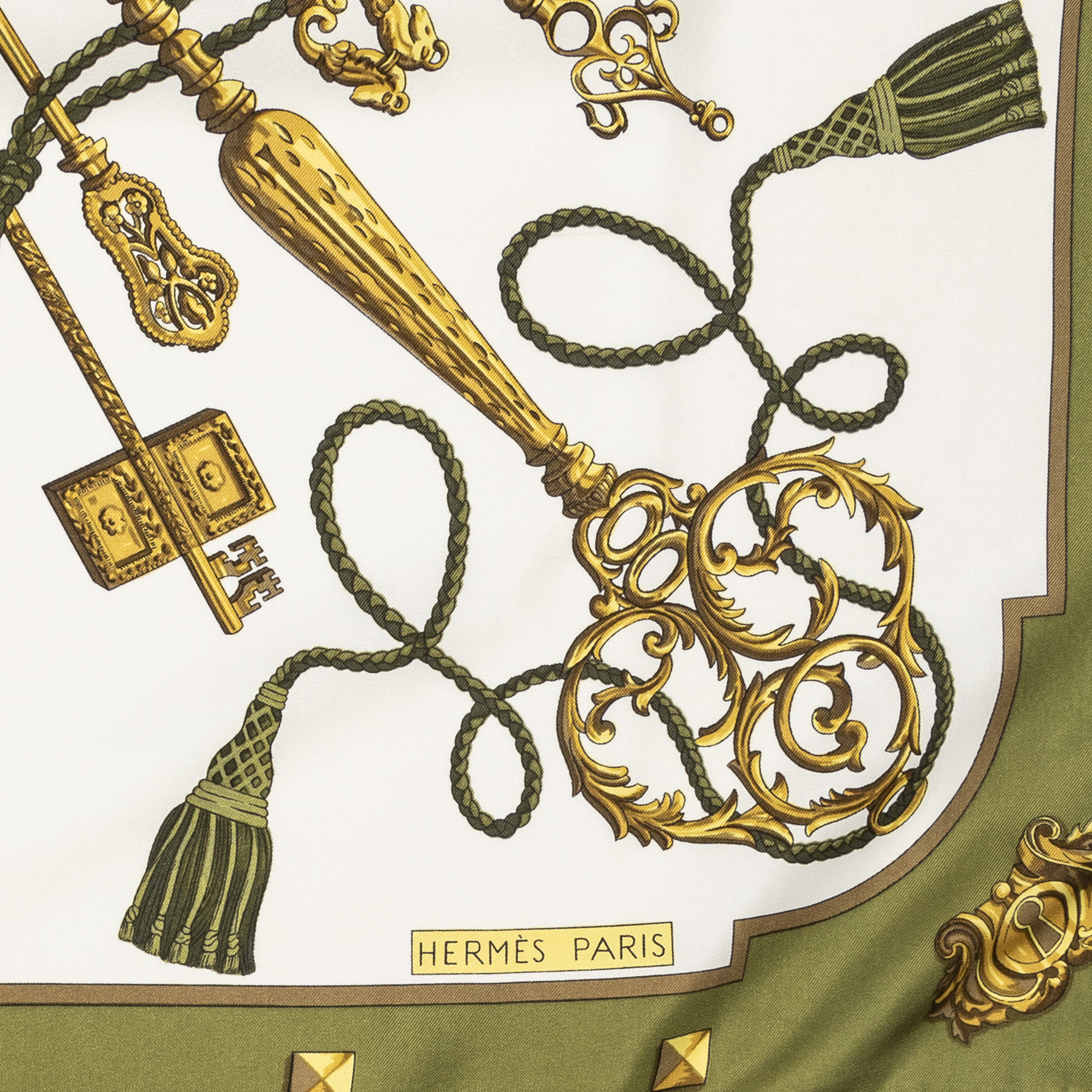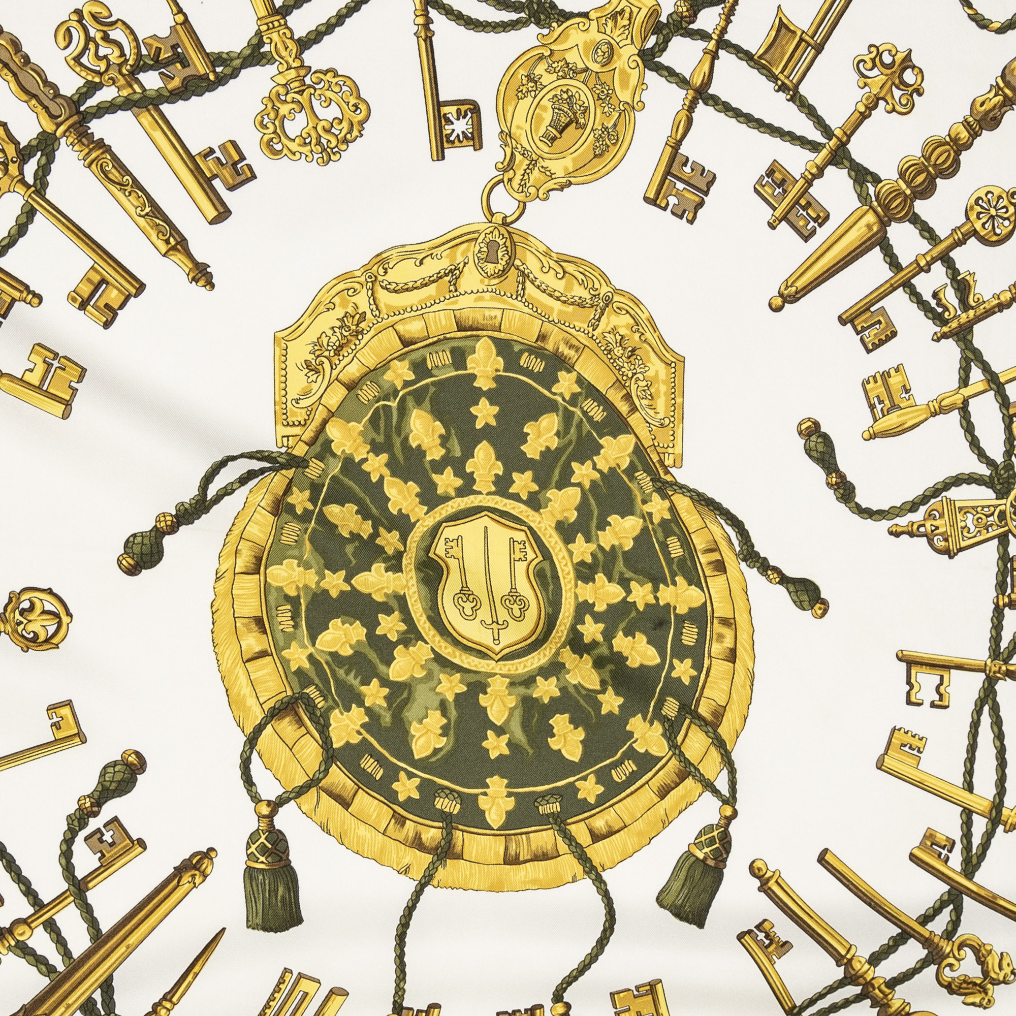 Hermès Écharpe Scarf en Vert/Or/Blanc et Aucun. Le produit est en Excellent état (A).