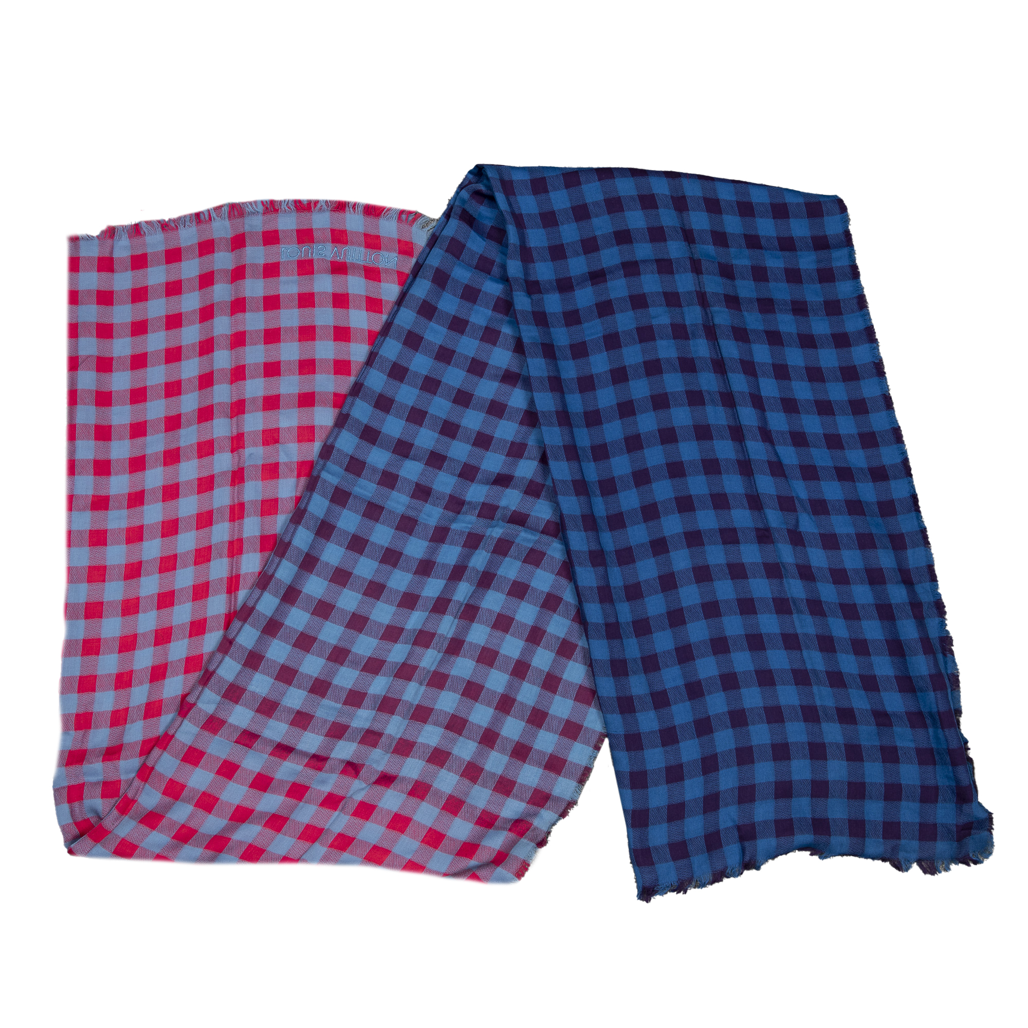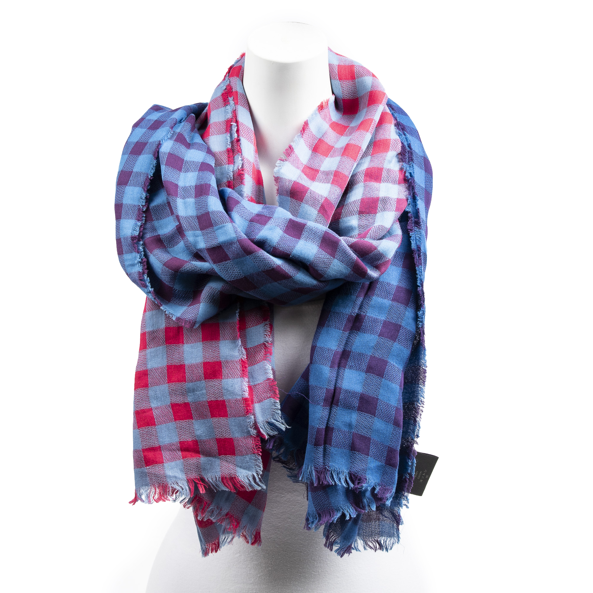 Louis Vuitton Écharpe Damier Masai Plaid Print Scarf en Bleu/Rouge et . Le produit est en Excellent état (A).