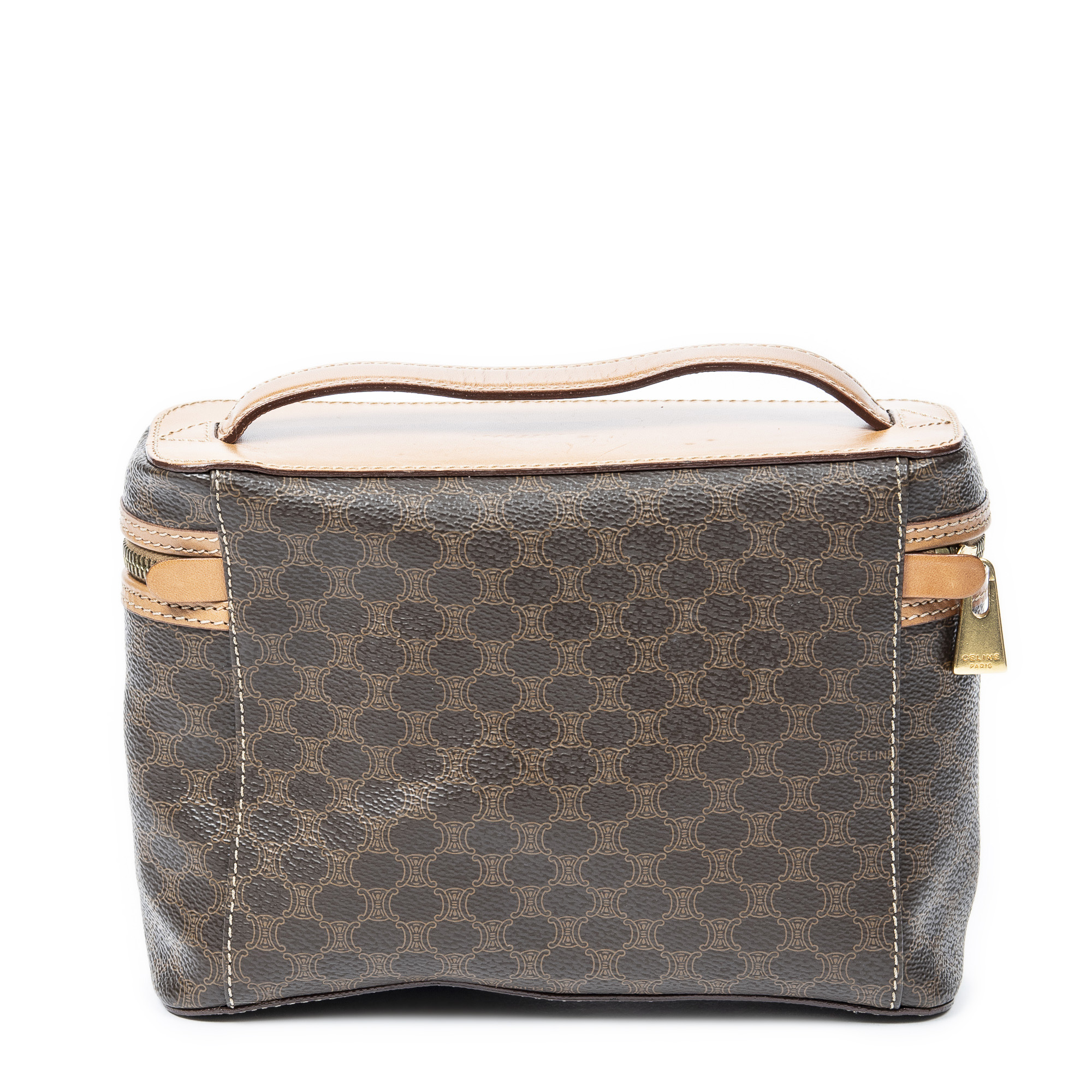 Celine Pochette Top Handle Toiletry Pouch en Marron et Or. Le produit est en Très Bon état (AB).