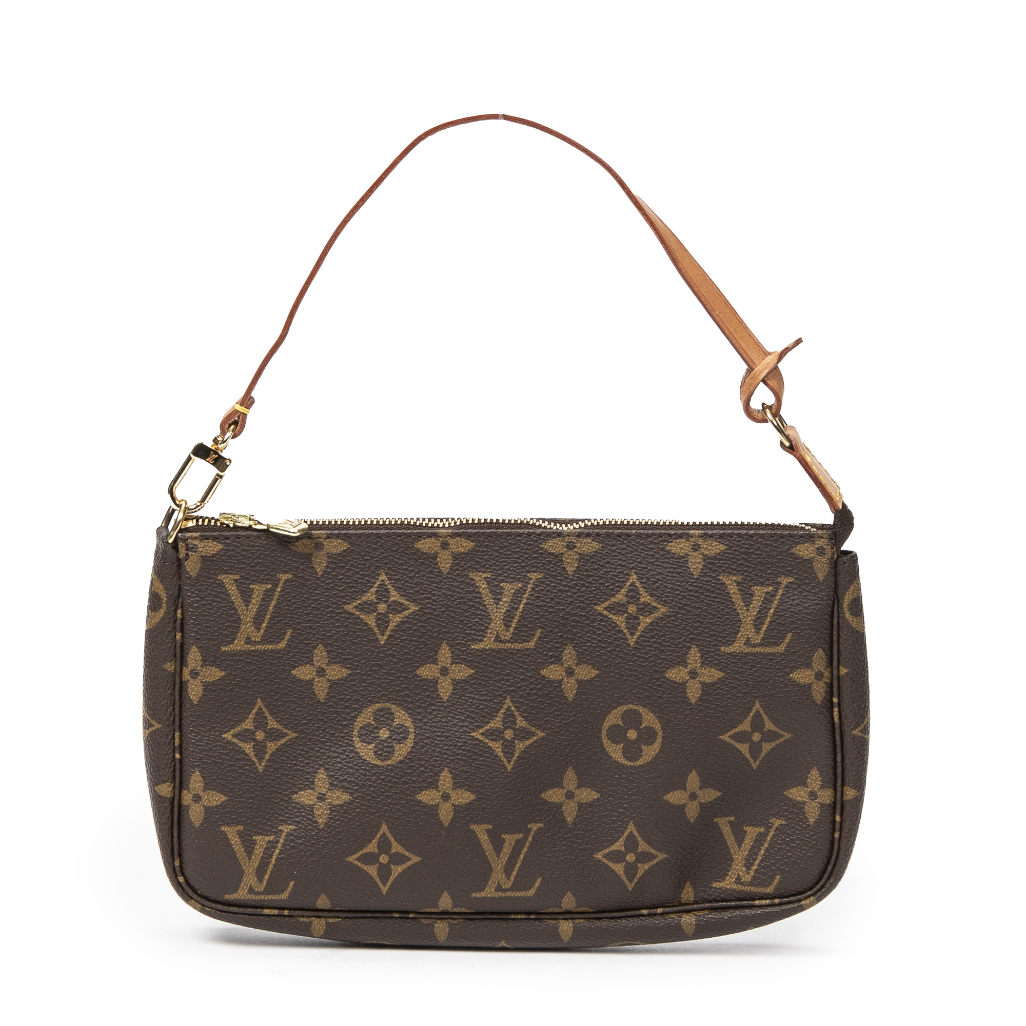 Louis Vuitton Pochette Pochette Accessoires en Marron et Laiton doré. Le produit est en Excellent état (A).