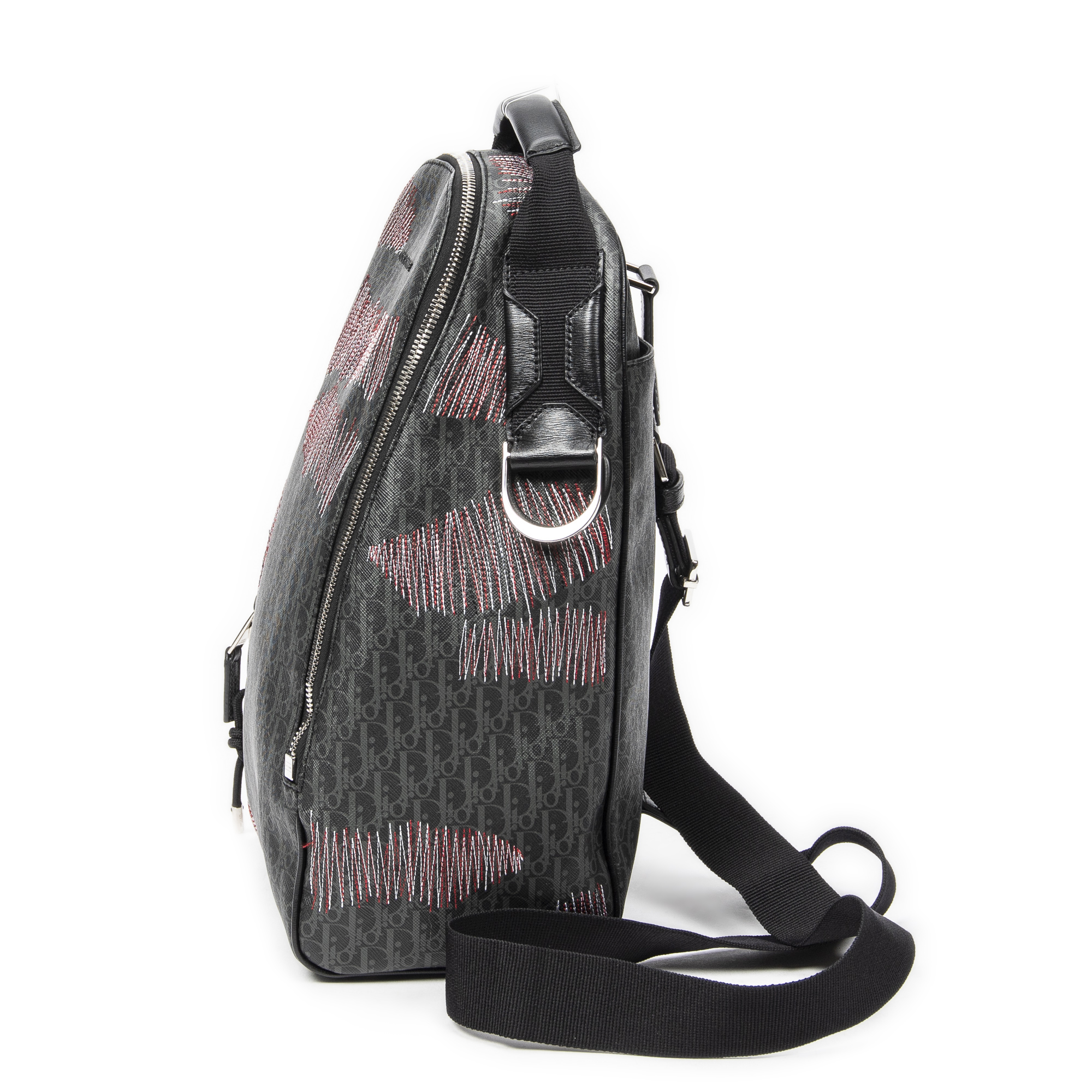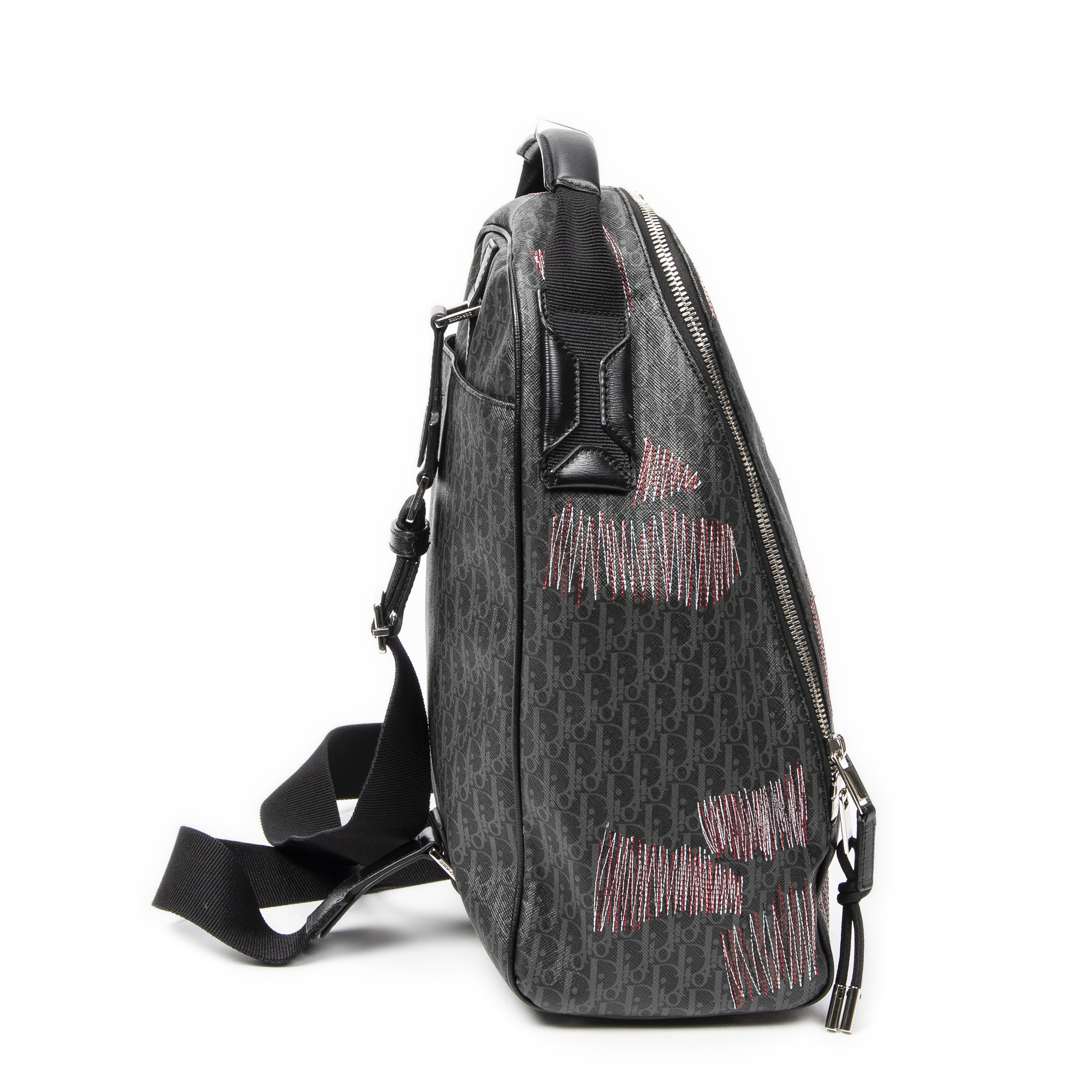 Dior Sac à dos Stitched Sling Backpack en Black et Argent. Le produit est en Parfait état (AA).