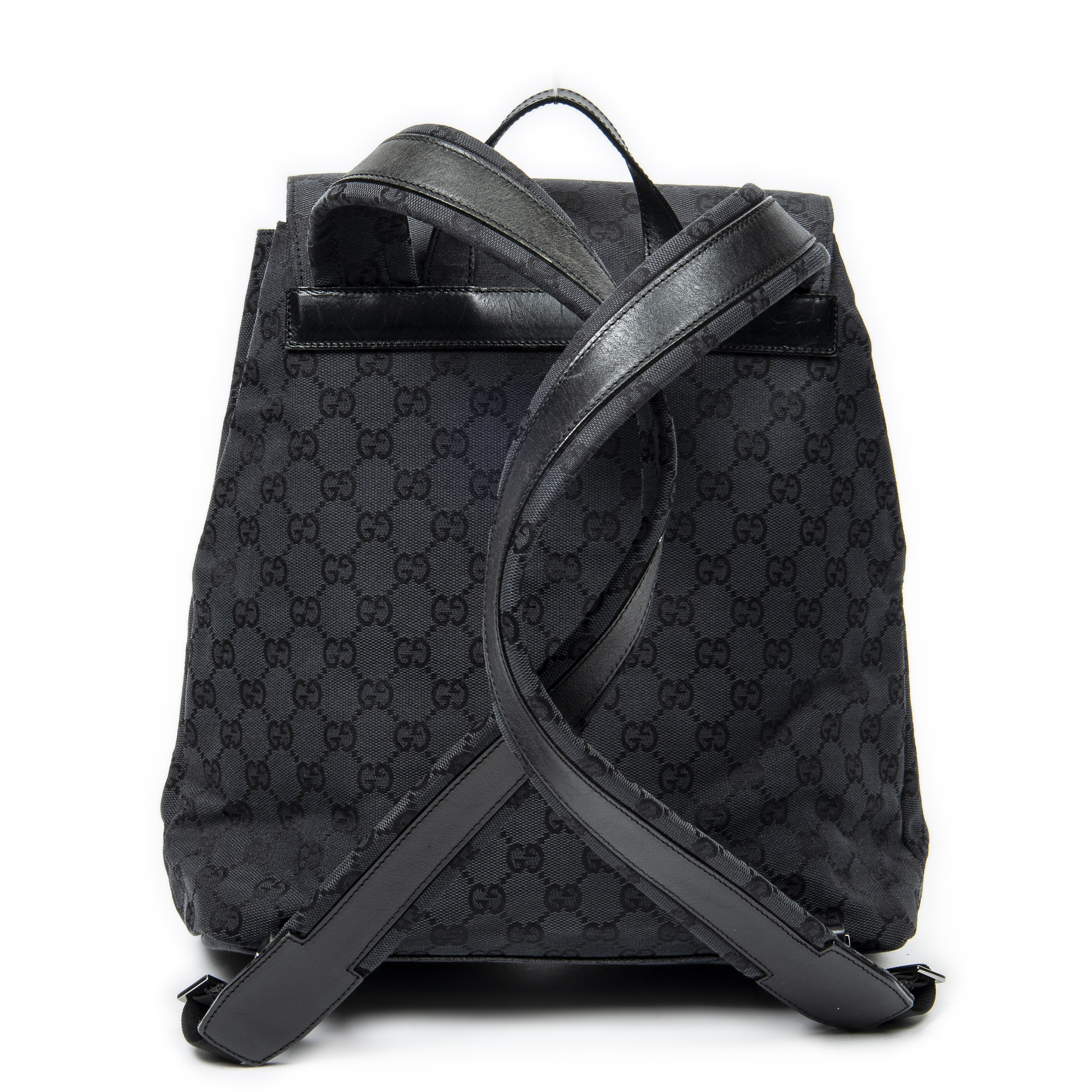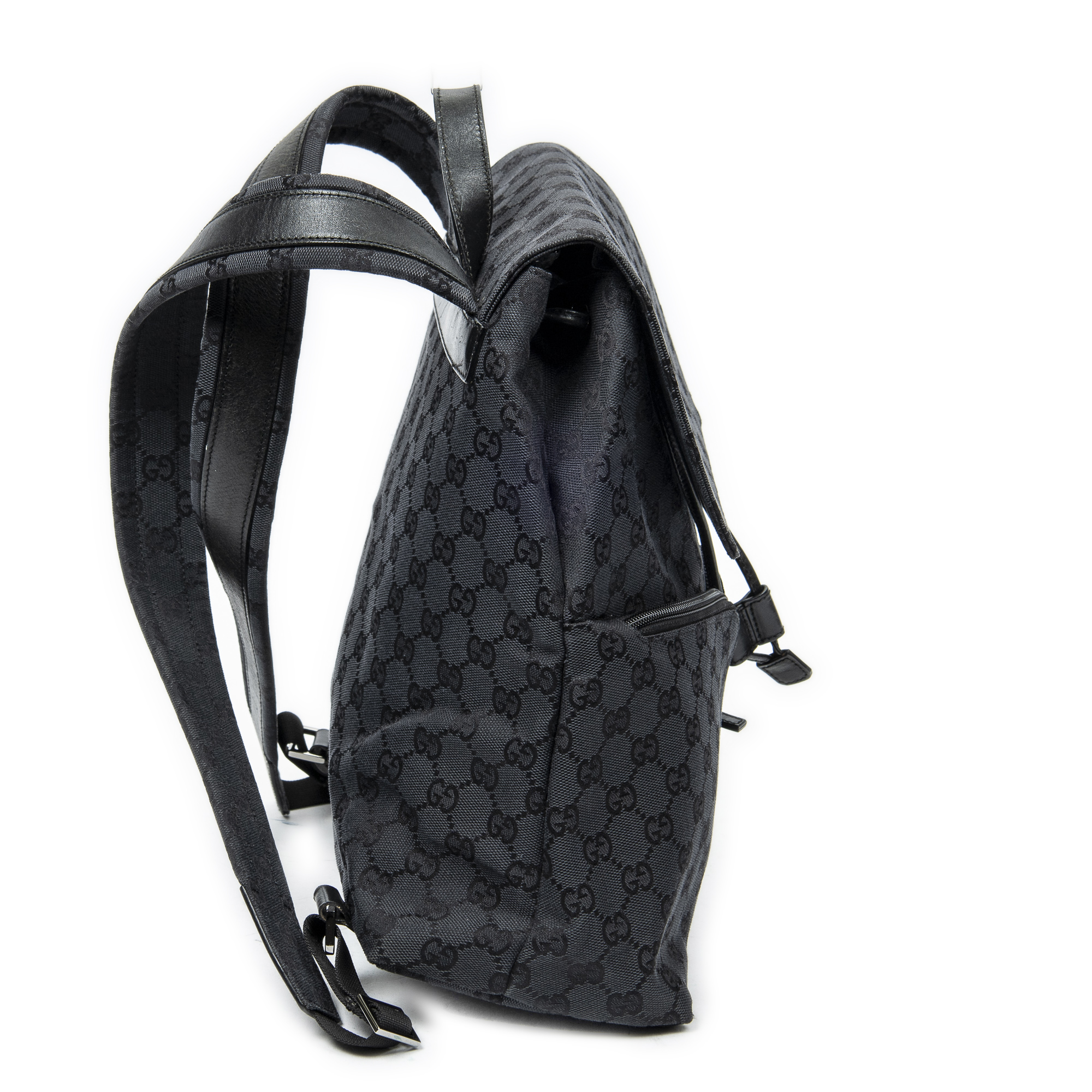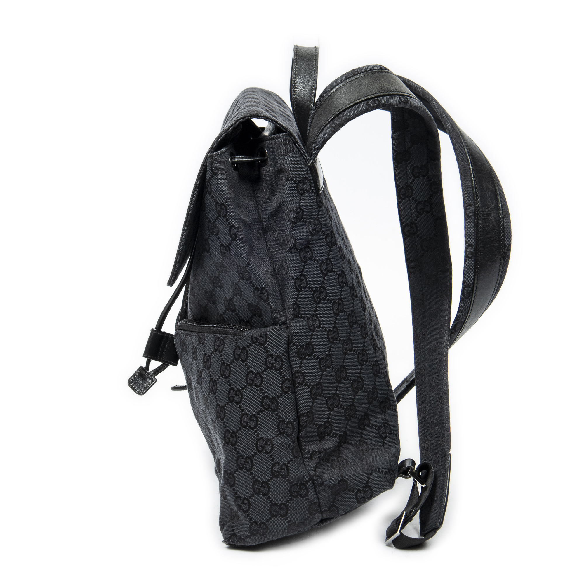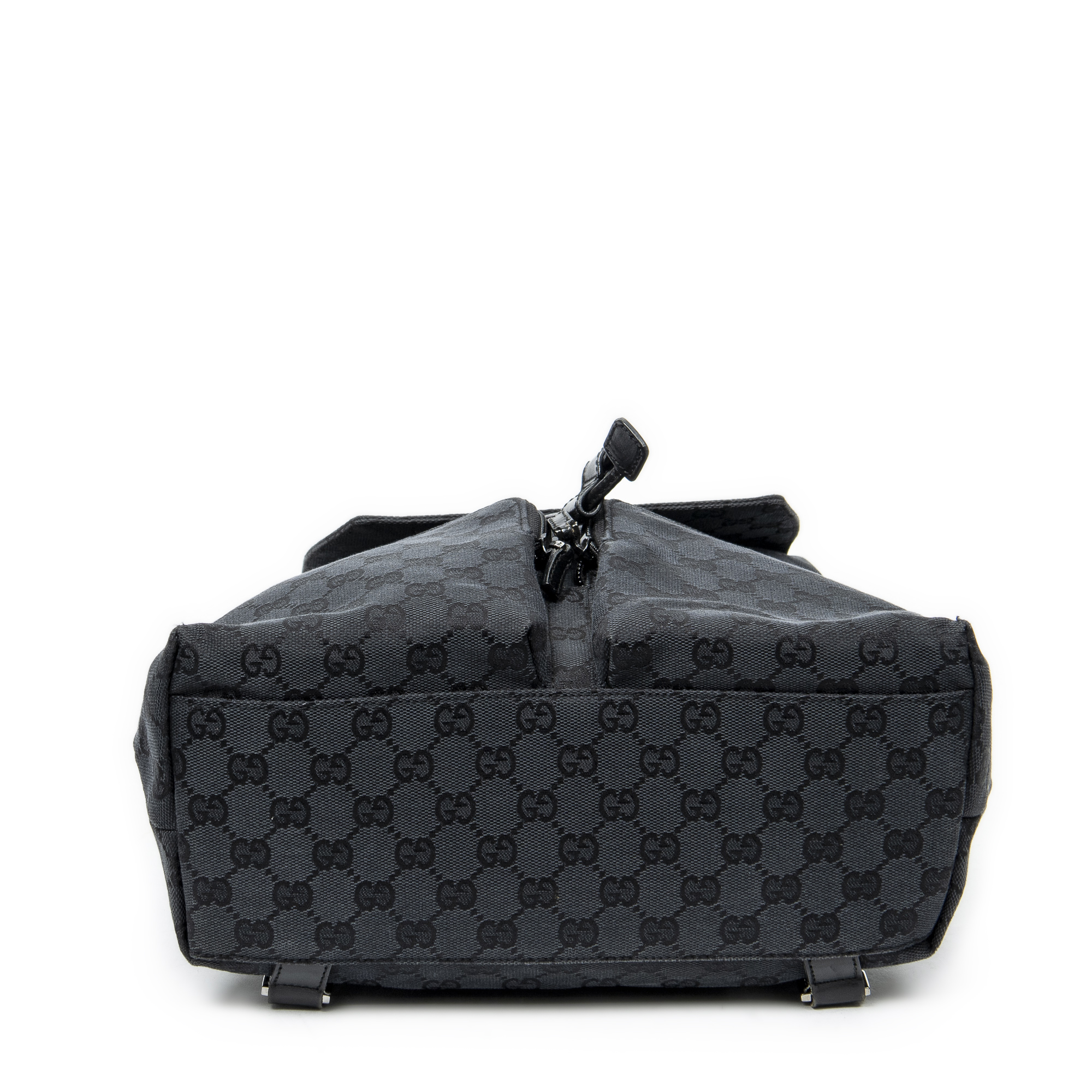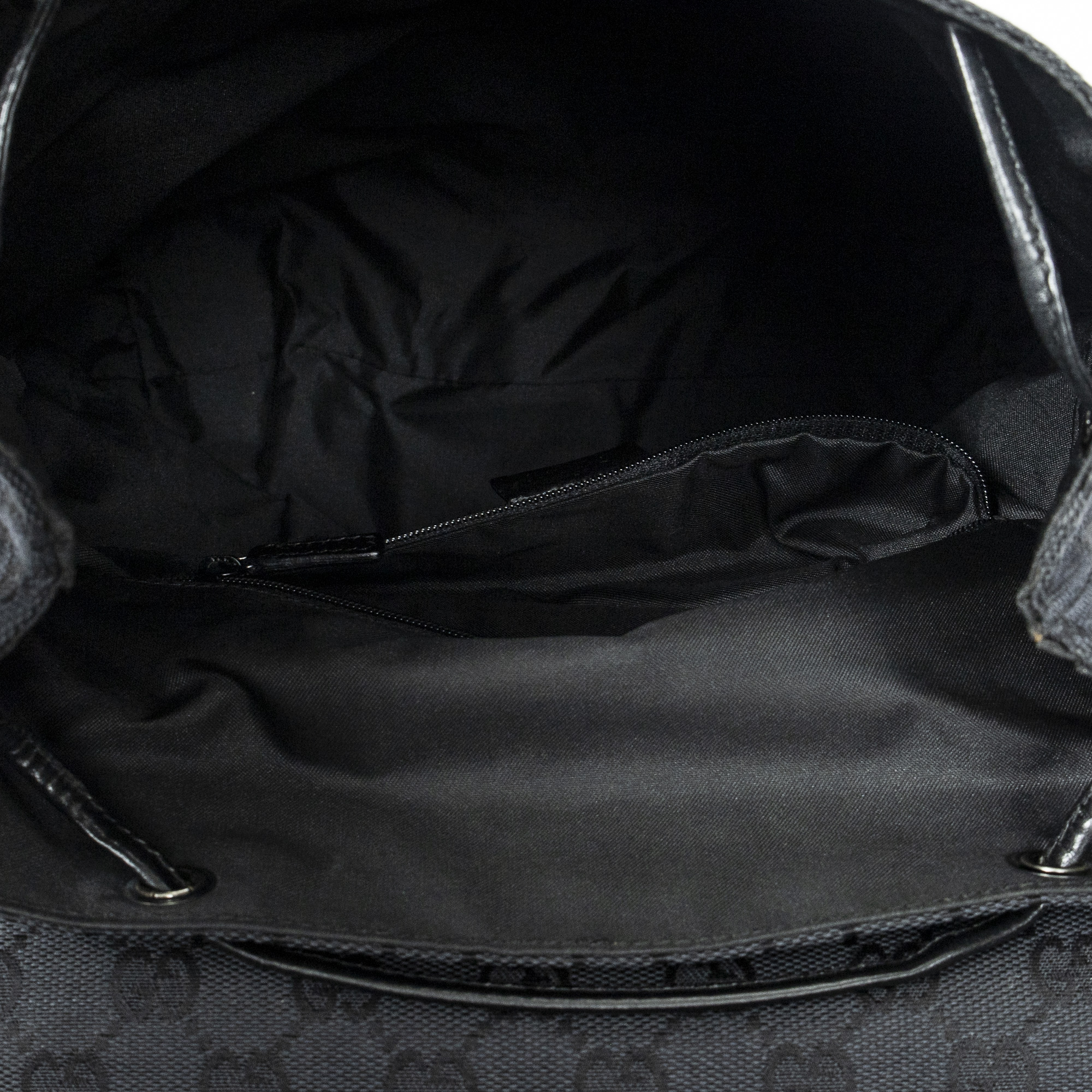 Gucci Sac à dos Double Pocket Drawstring Backpack en Noir et Argent. Le produit est en Excellent état (A).