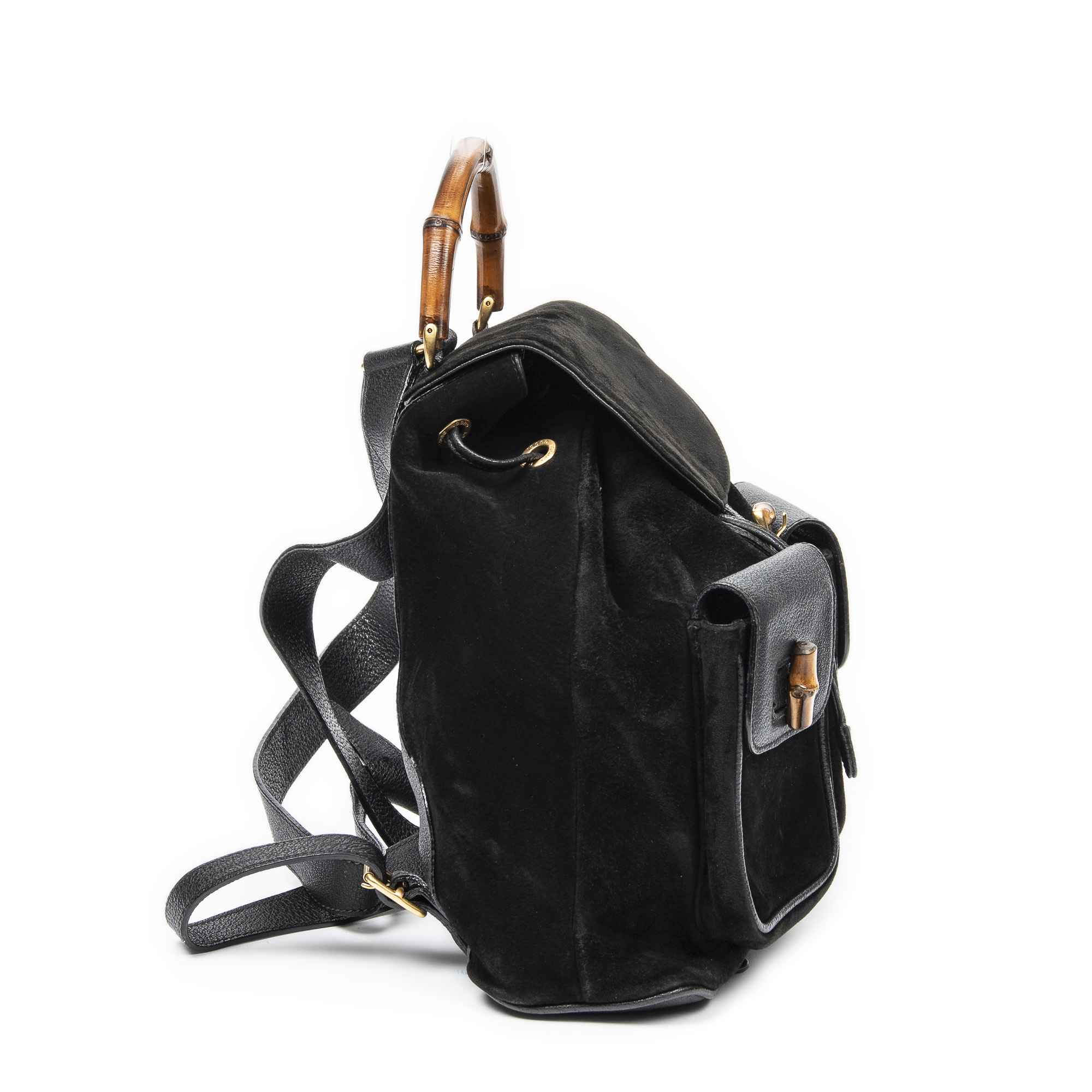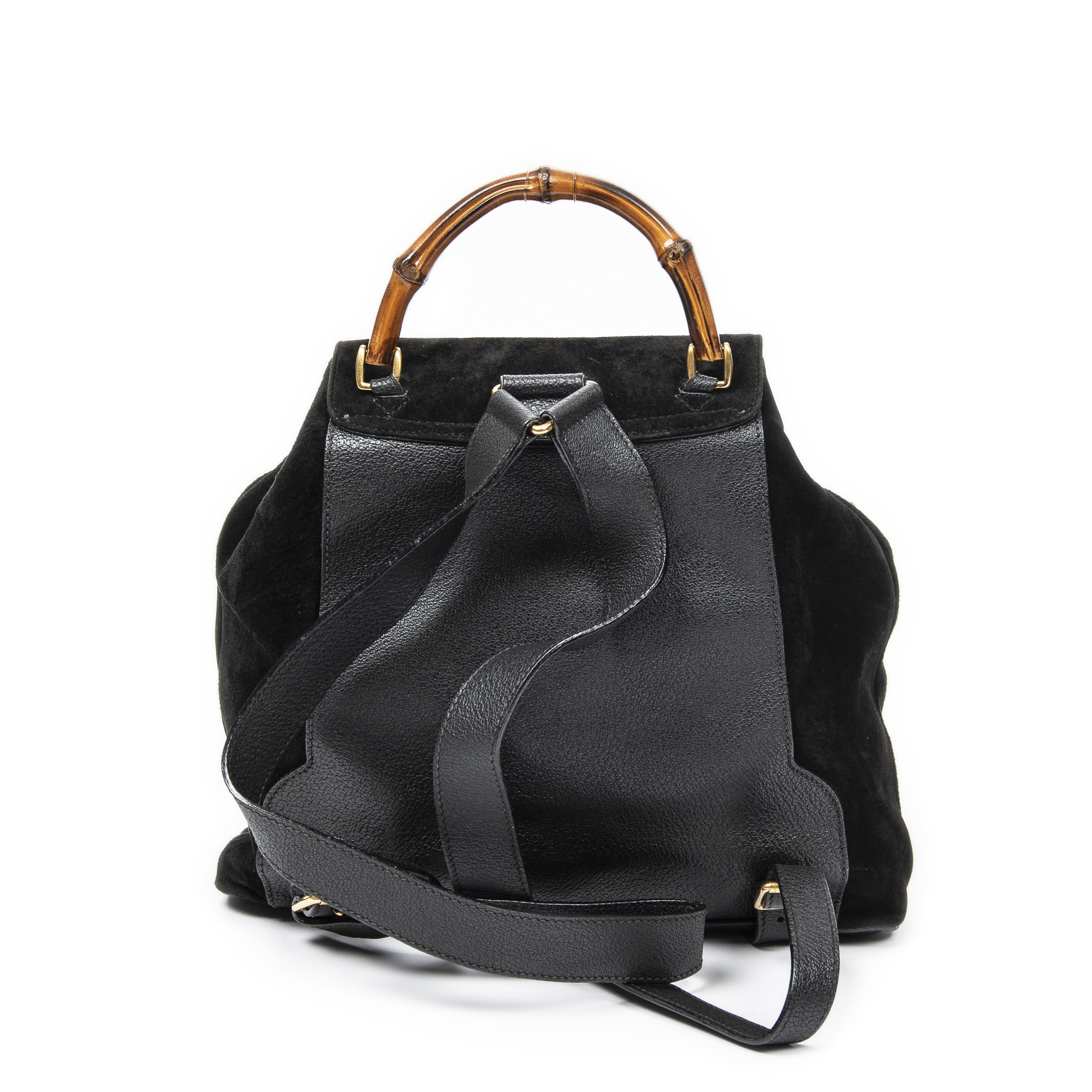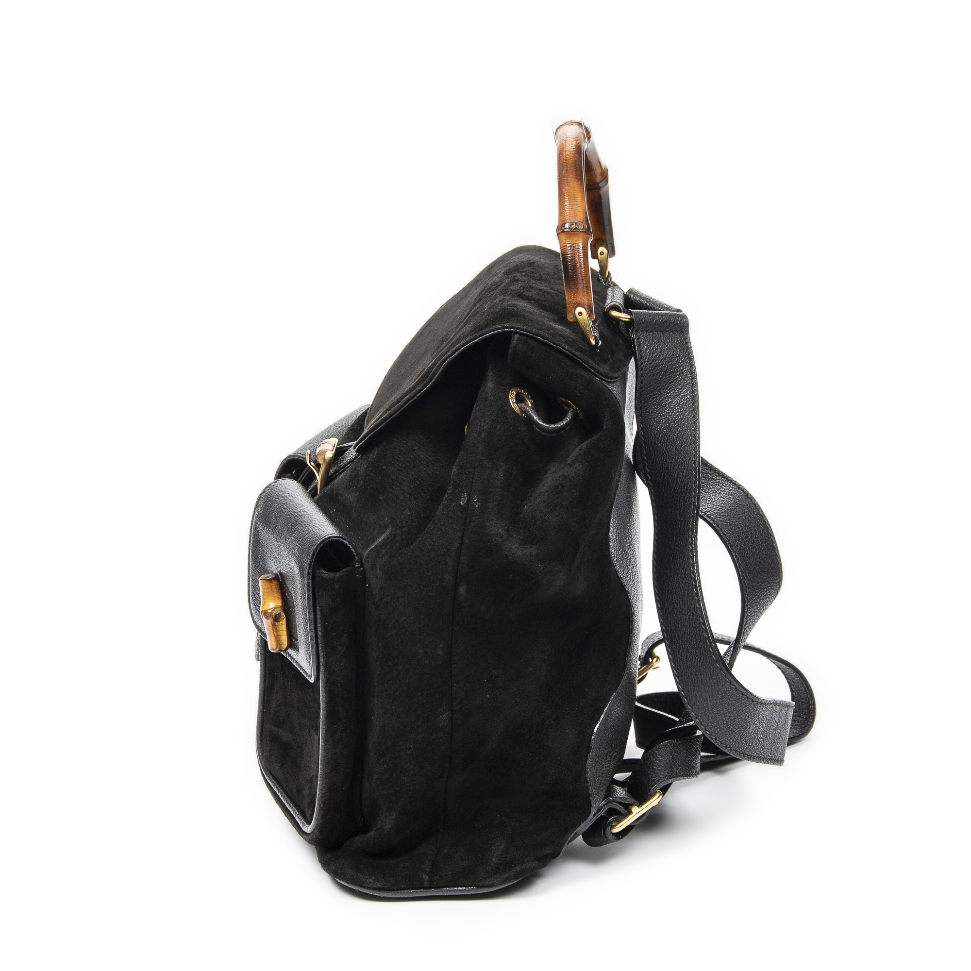 Gucci Sac à dos Large Bamboo Backpack en Noir et Or. Le produit est en Excellent état (A).