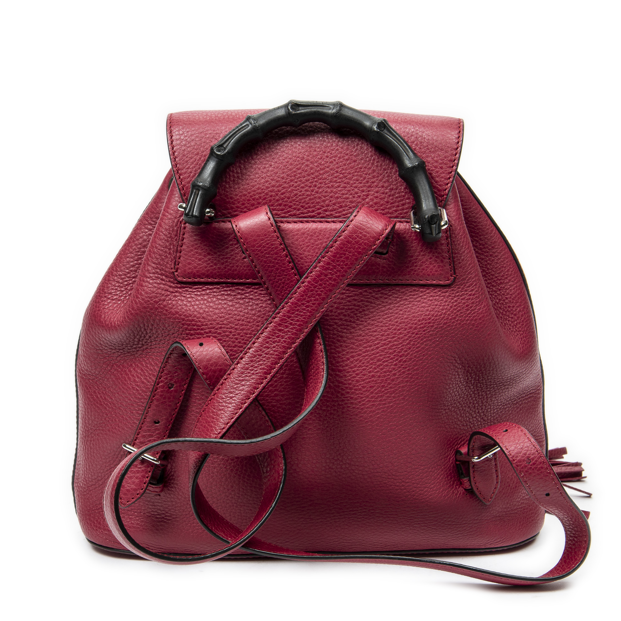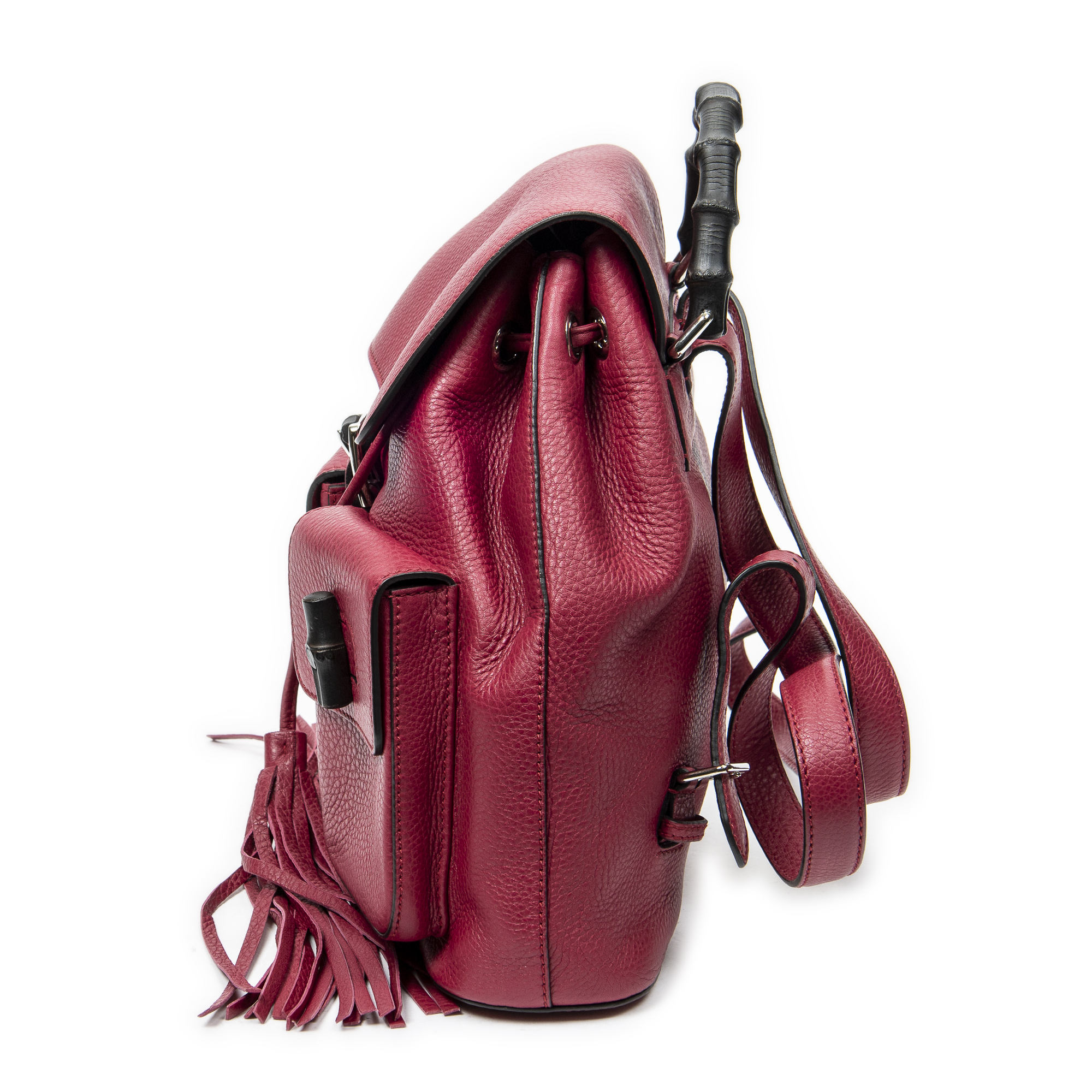 Gucci Sac à dos Medium Bamboo Tassel Backpack en Rose framboise et Argent. Le produit est en Parfait état (AA).