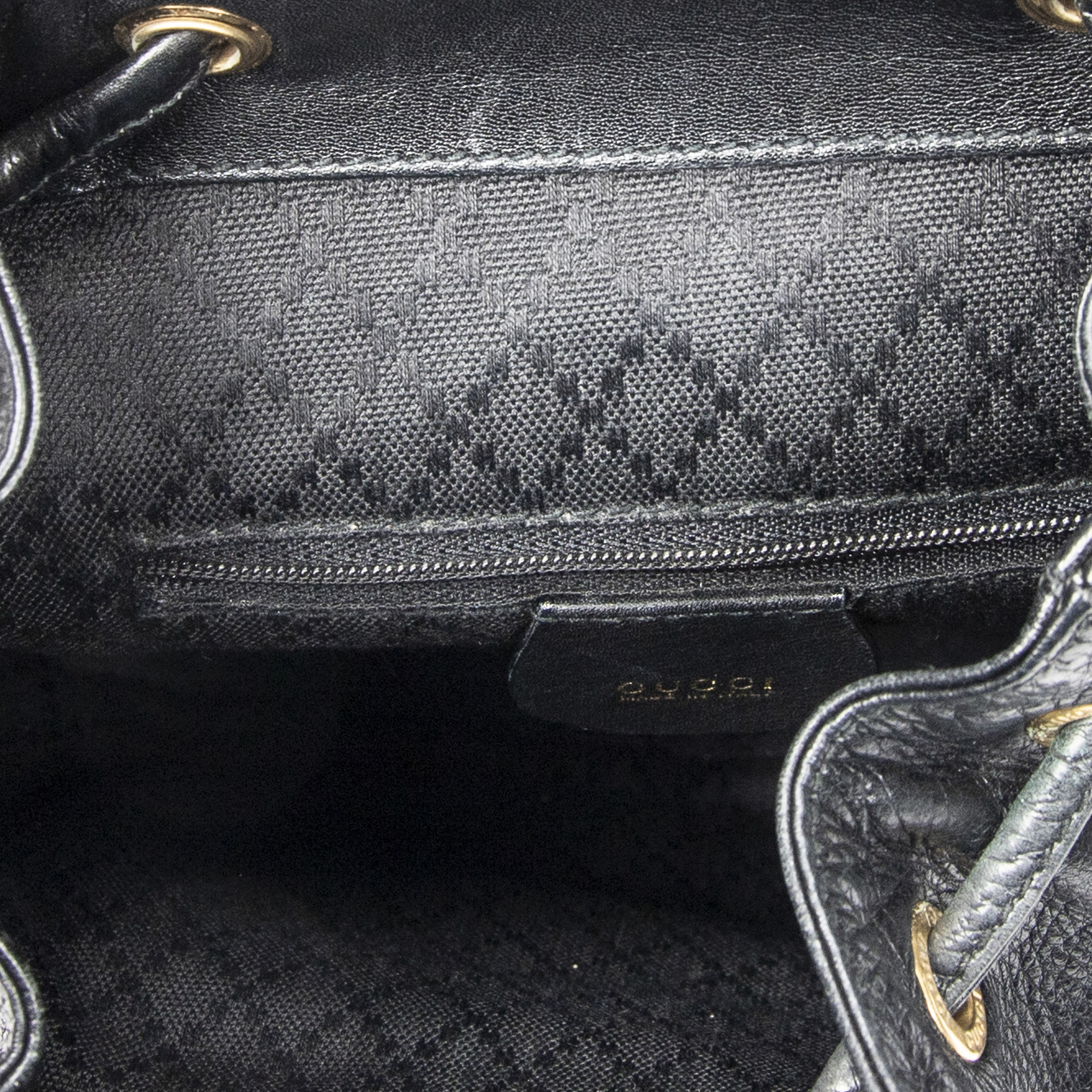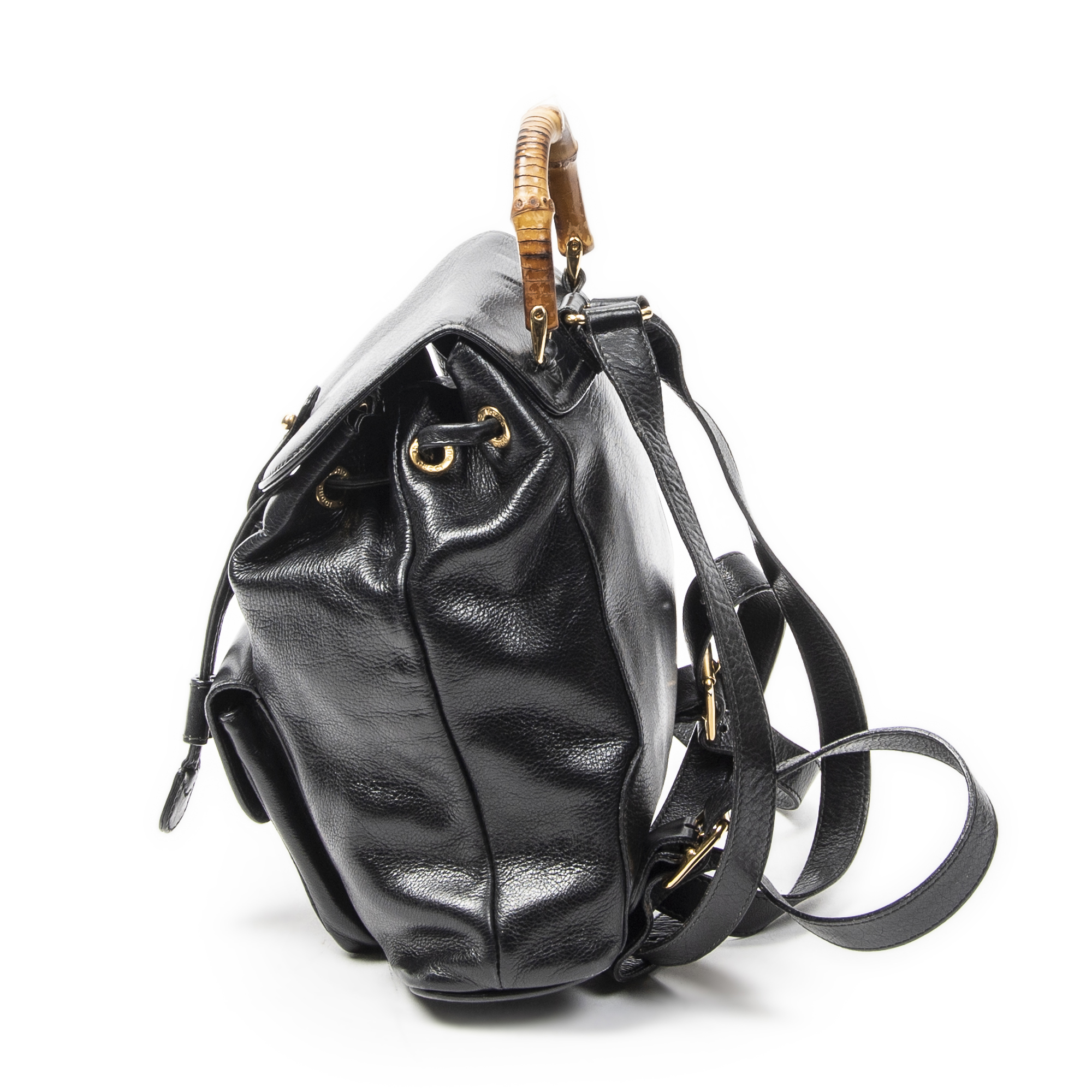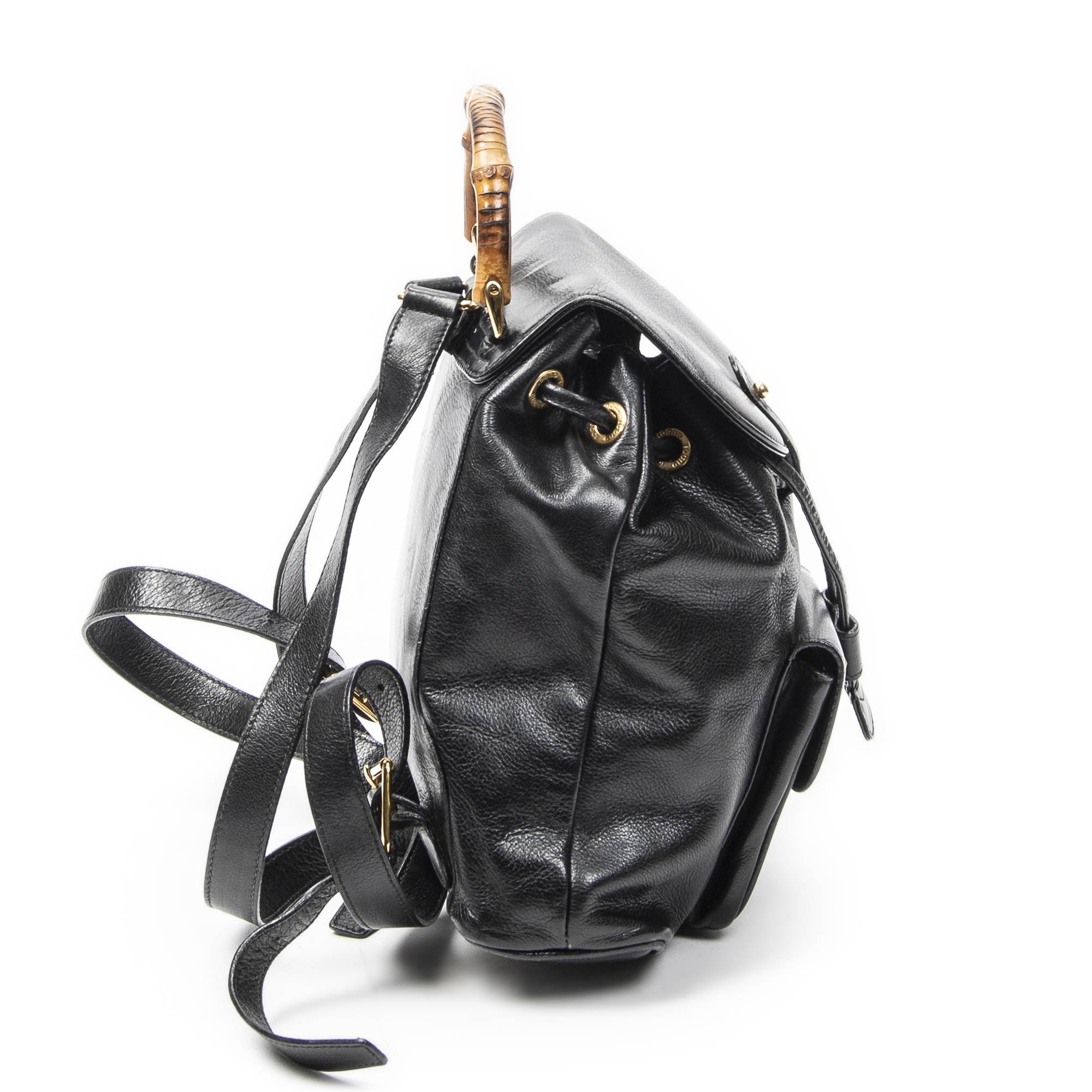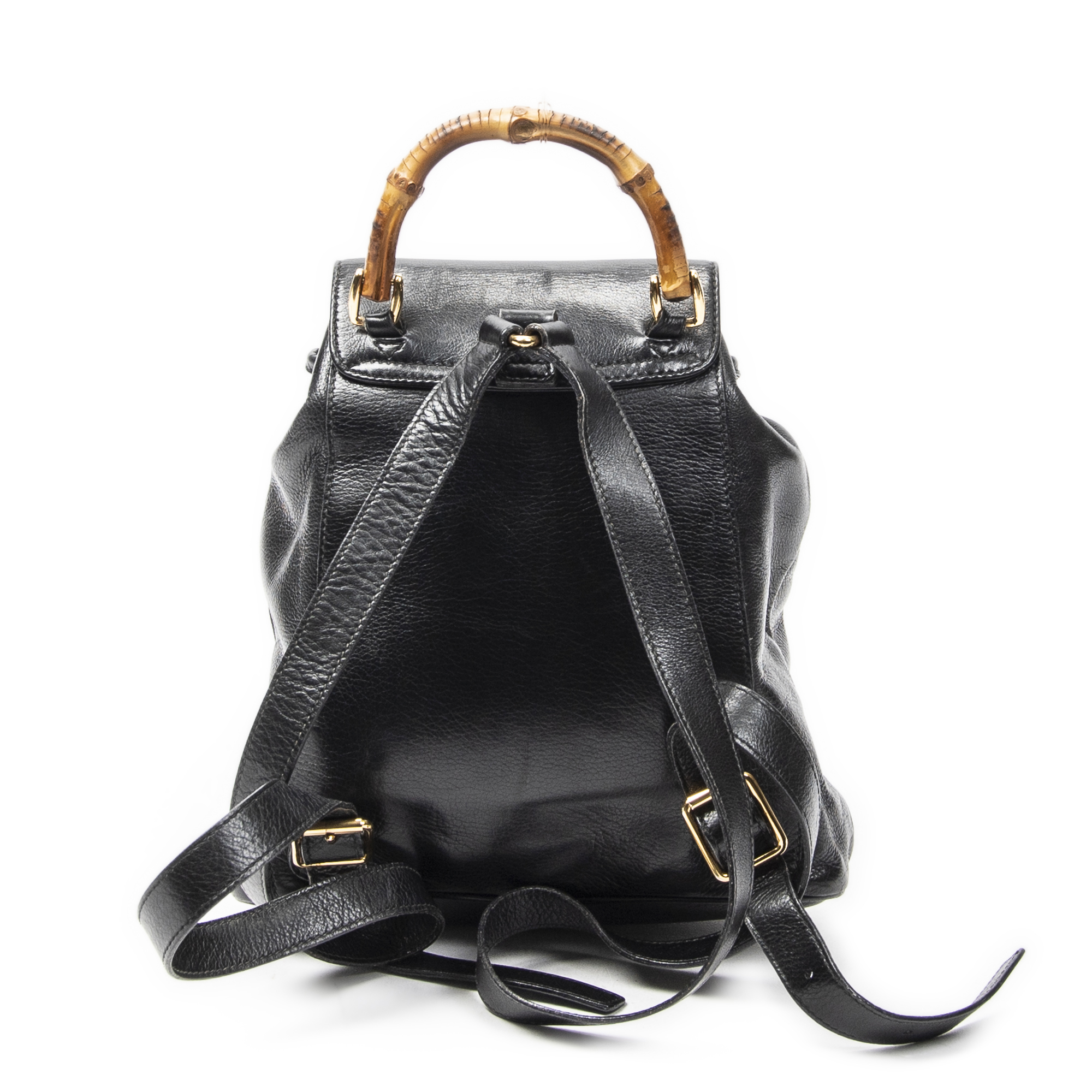 Gucci Sac à dos Mini Bamboo Backpack en Du cuir de veau Black et Gold. Le produit est en Très Bon état (AB).