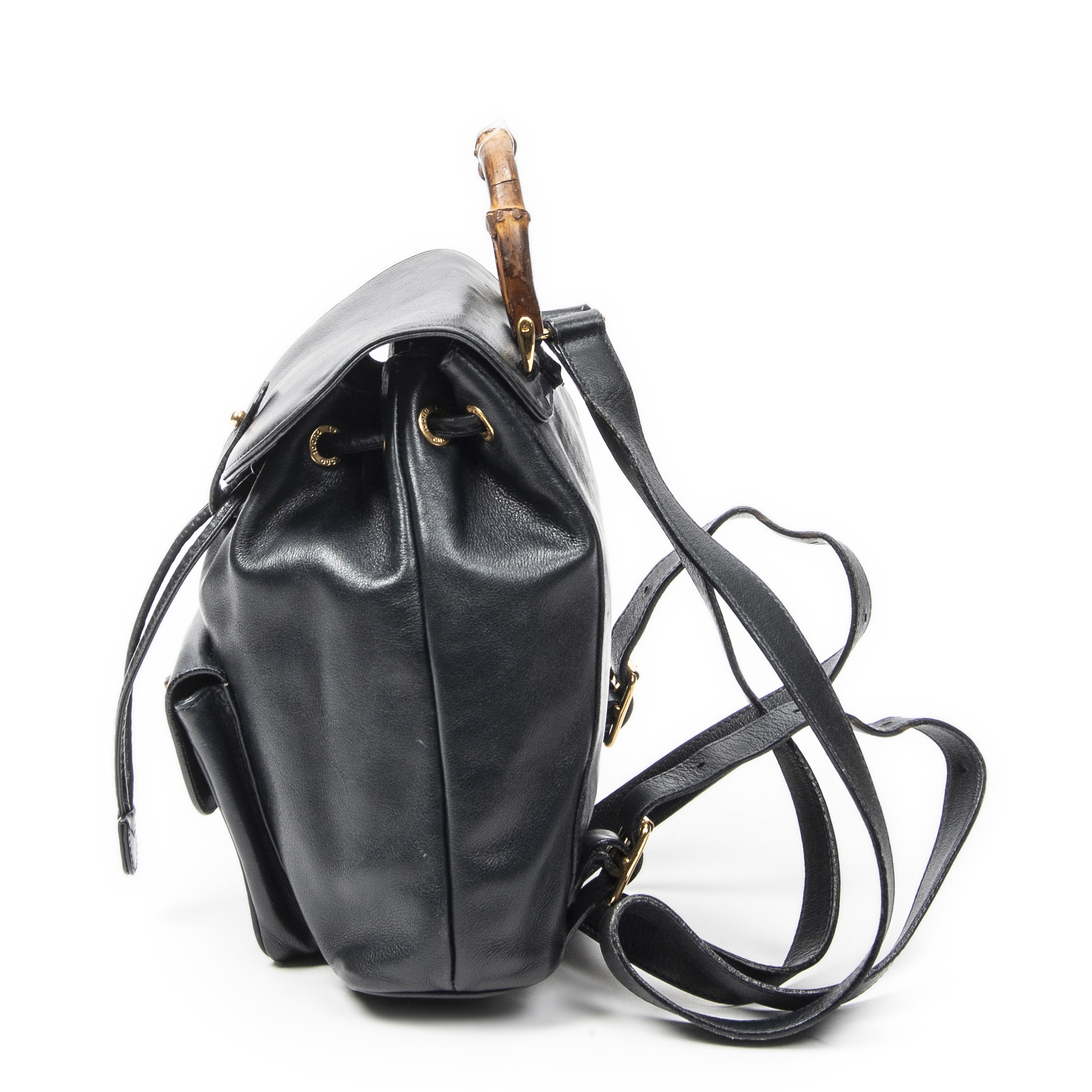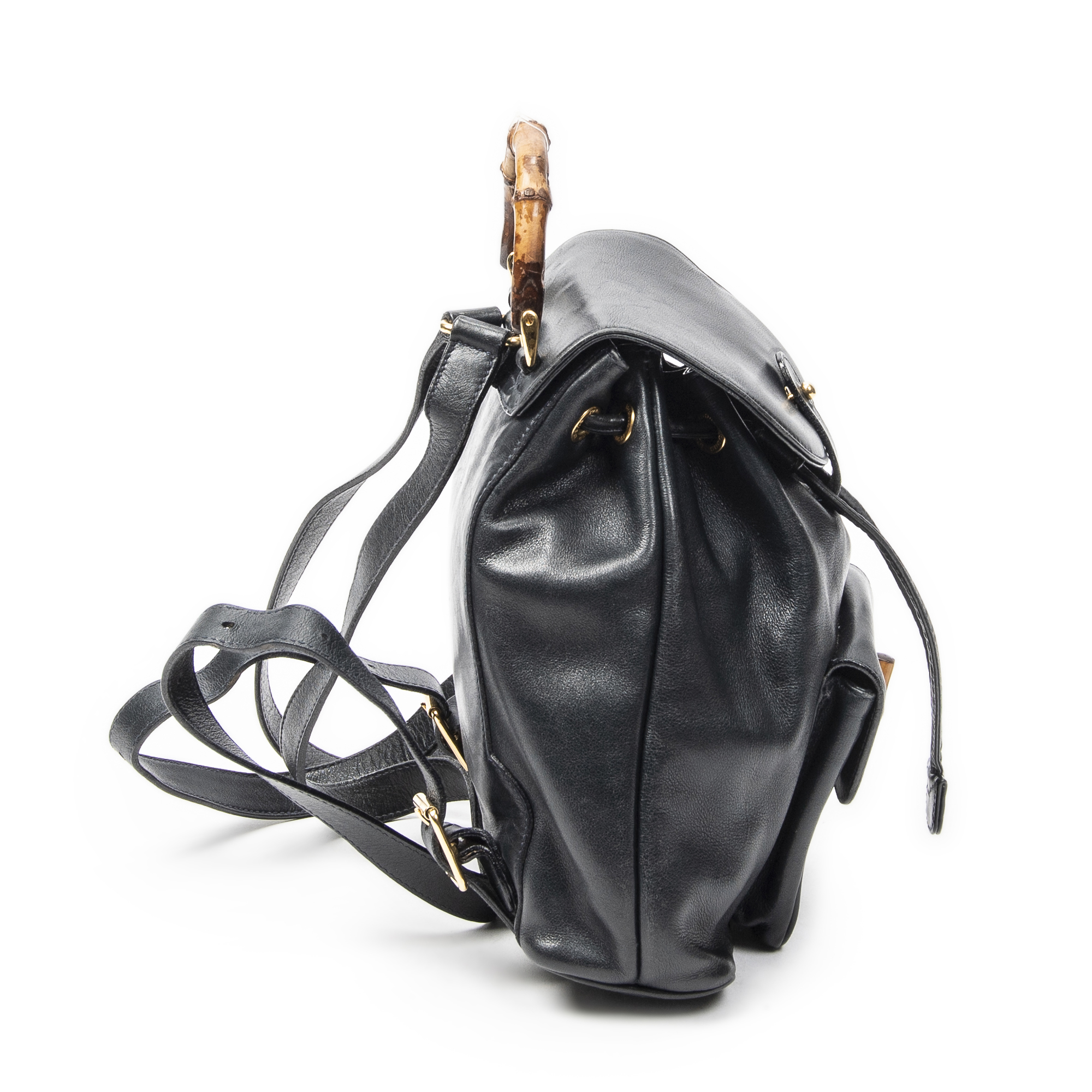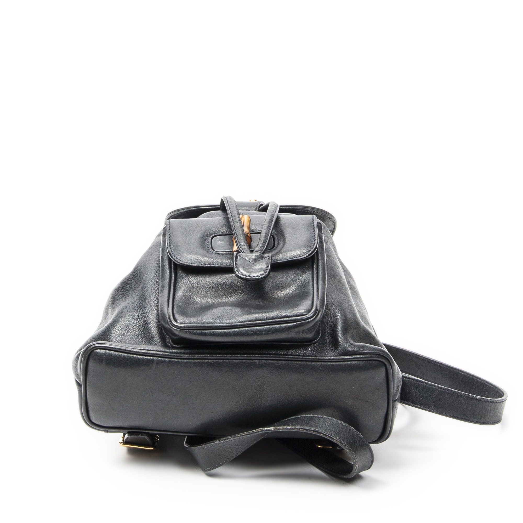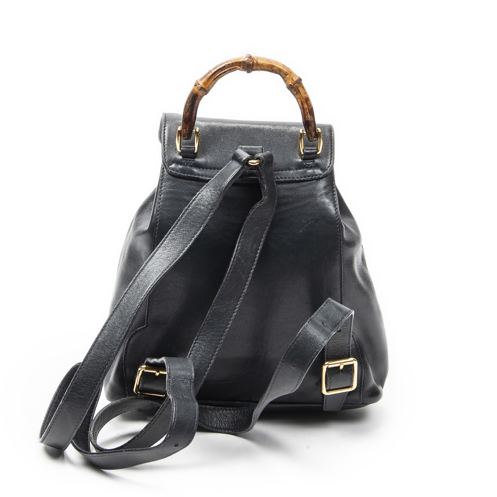 Gucci Sac à dos Mini Bamboo Backpack en Du cuir de veau Marine et Gold. Le produit est en Très Bon état (AB).