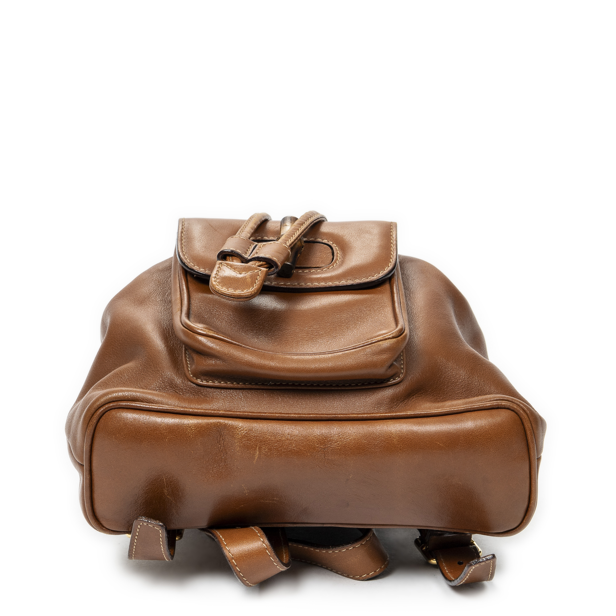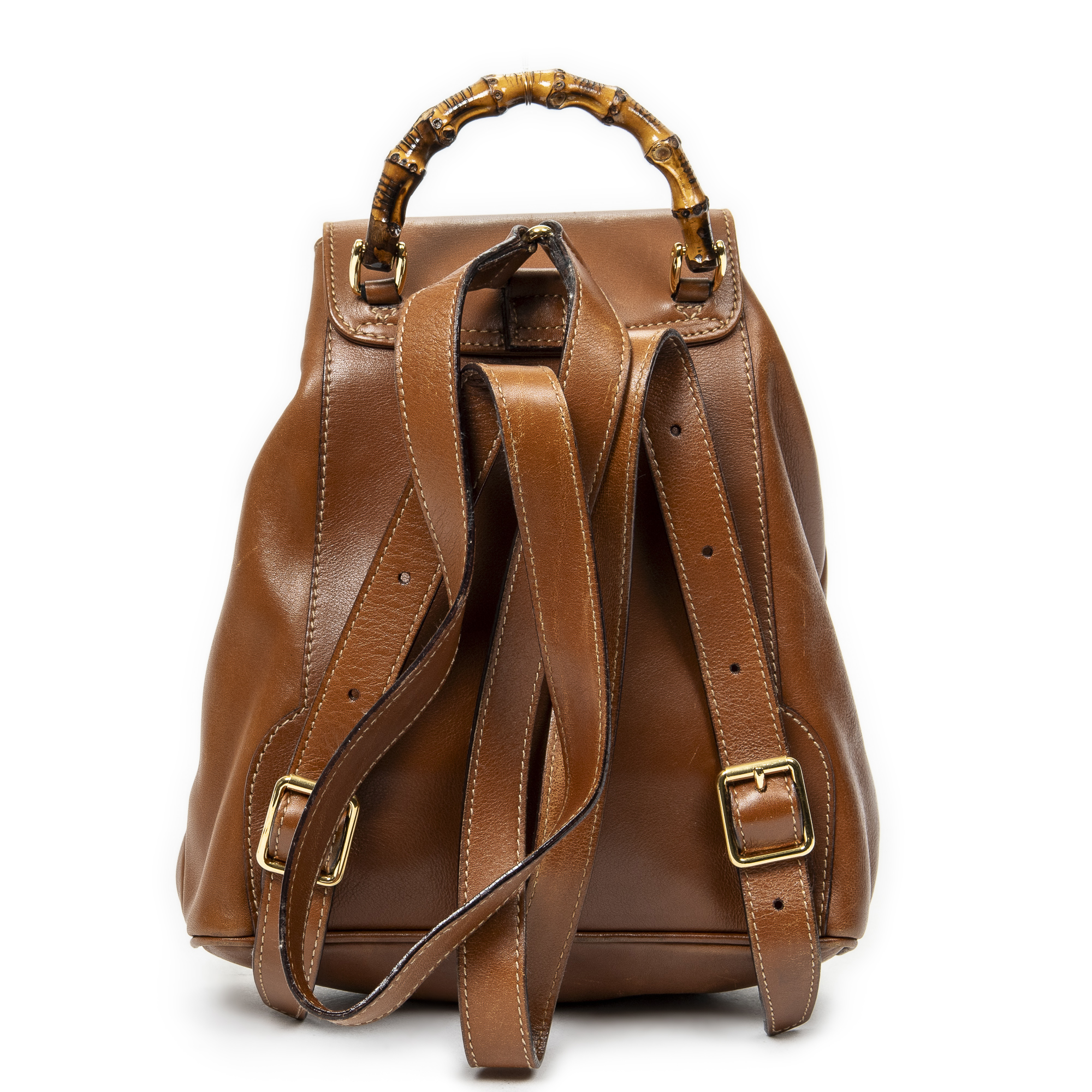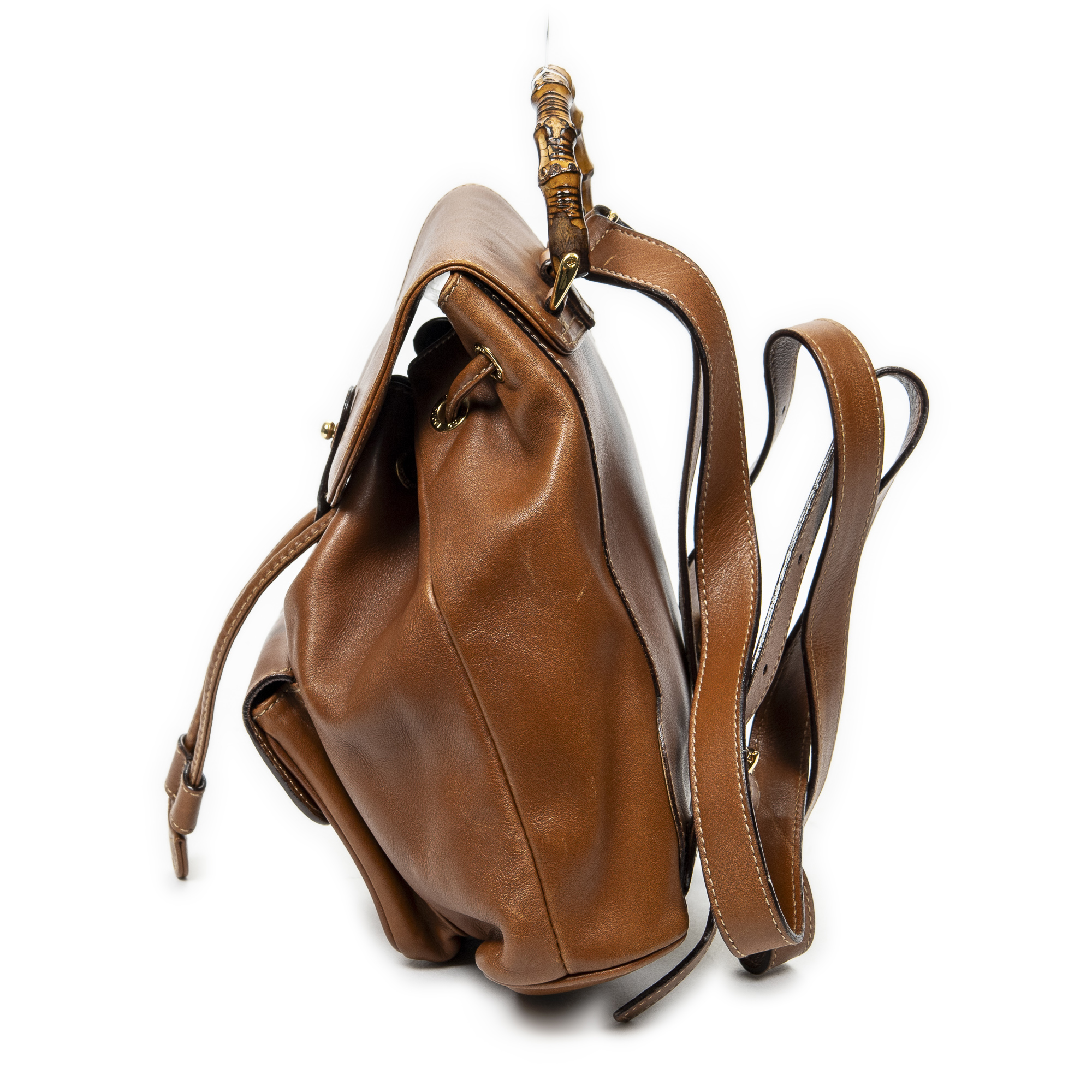 Gucci Sac à dos Mini Bamboo Backpack en Du cuir de veau Marron et Or. Le produit est en Très Bon état (AB).