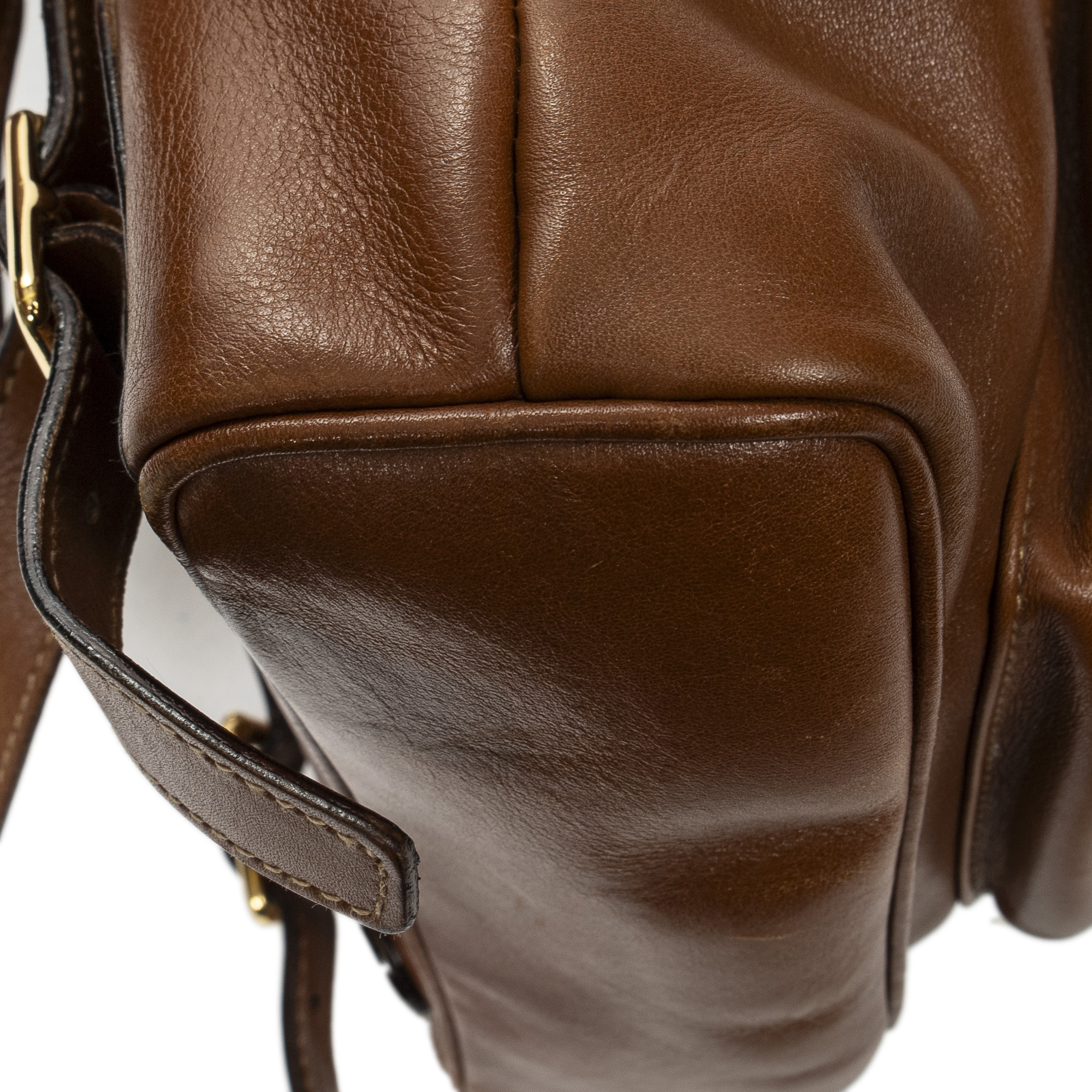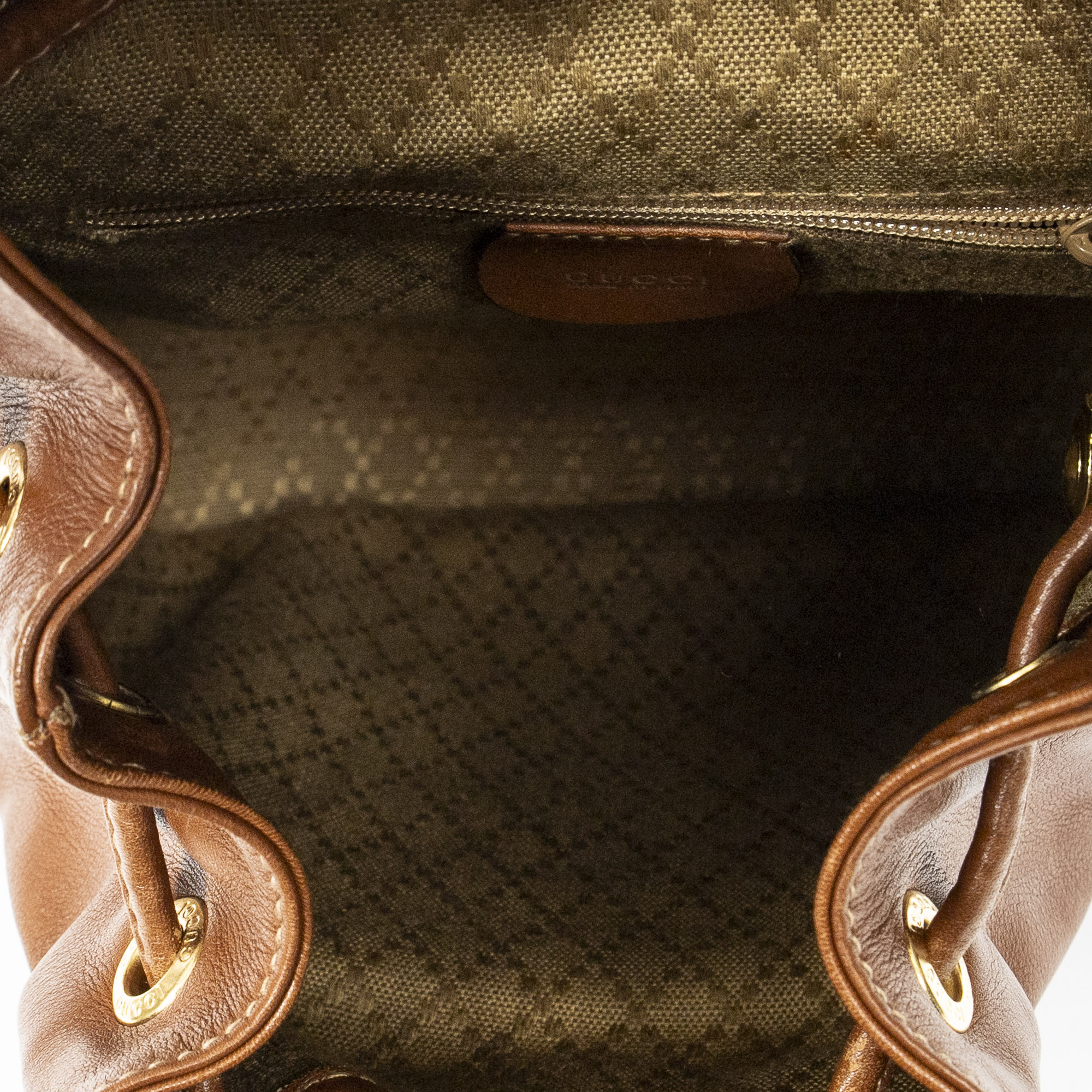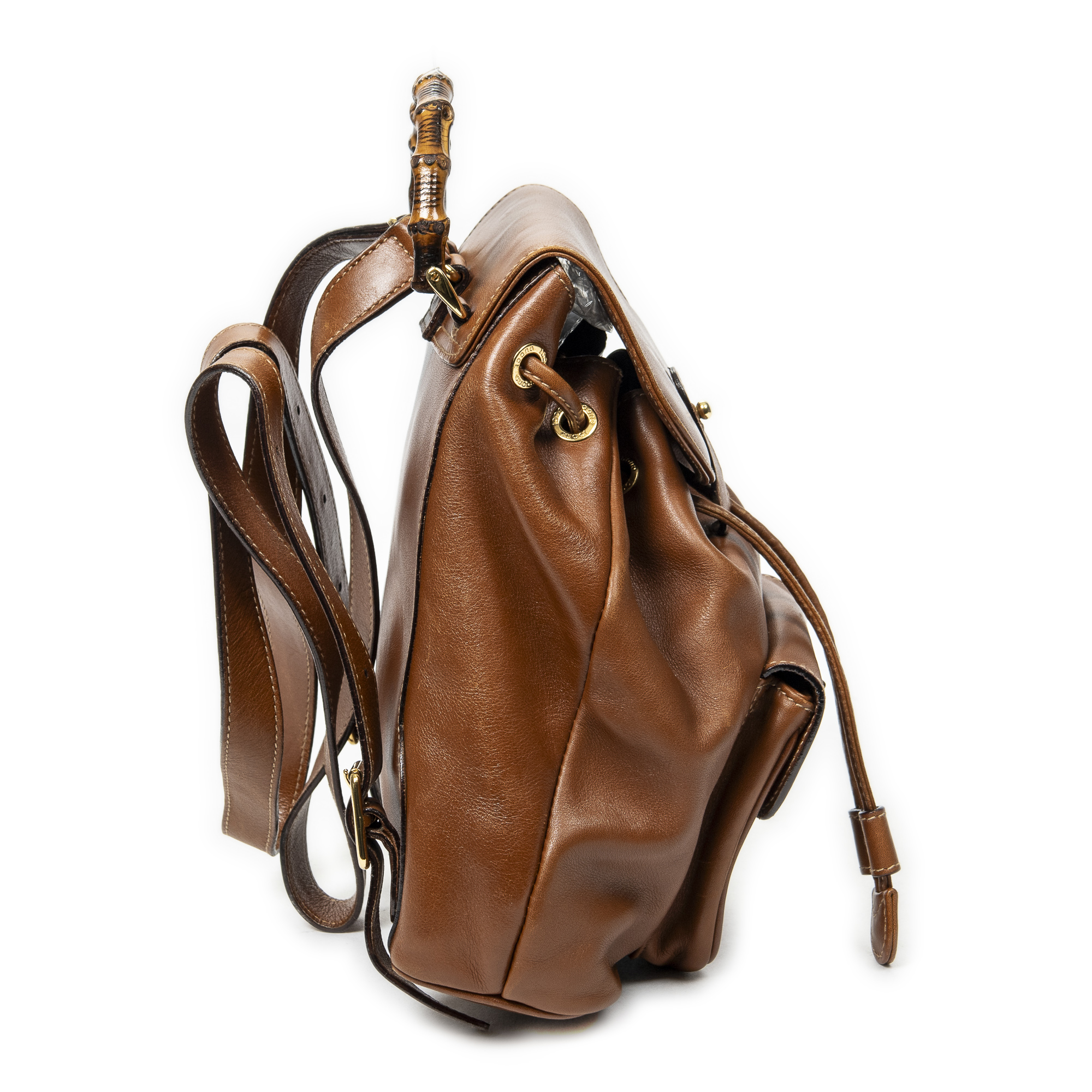 Gucci Sac à dos Mini Bamboo Backpack en Du cuir de veau Marron et Or. Le produit est en Très Bon état (AB).