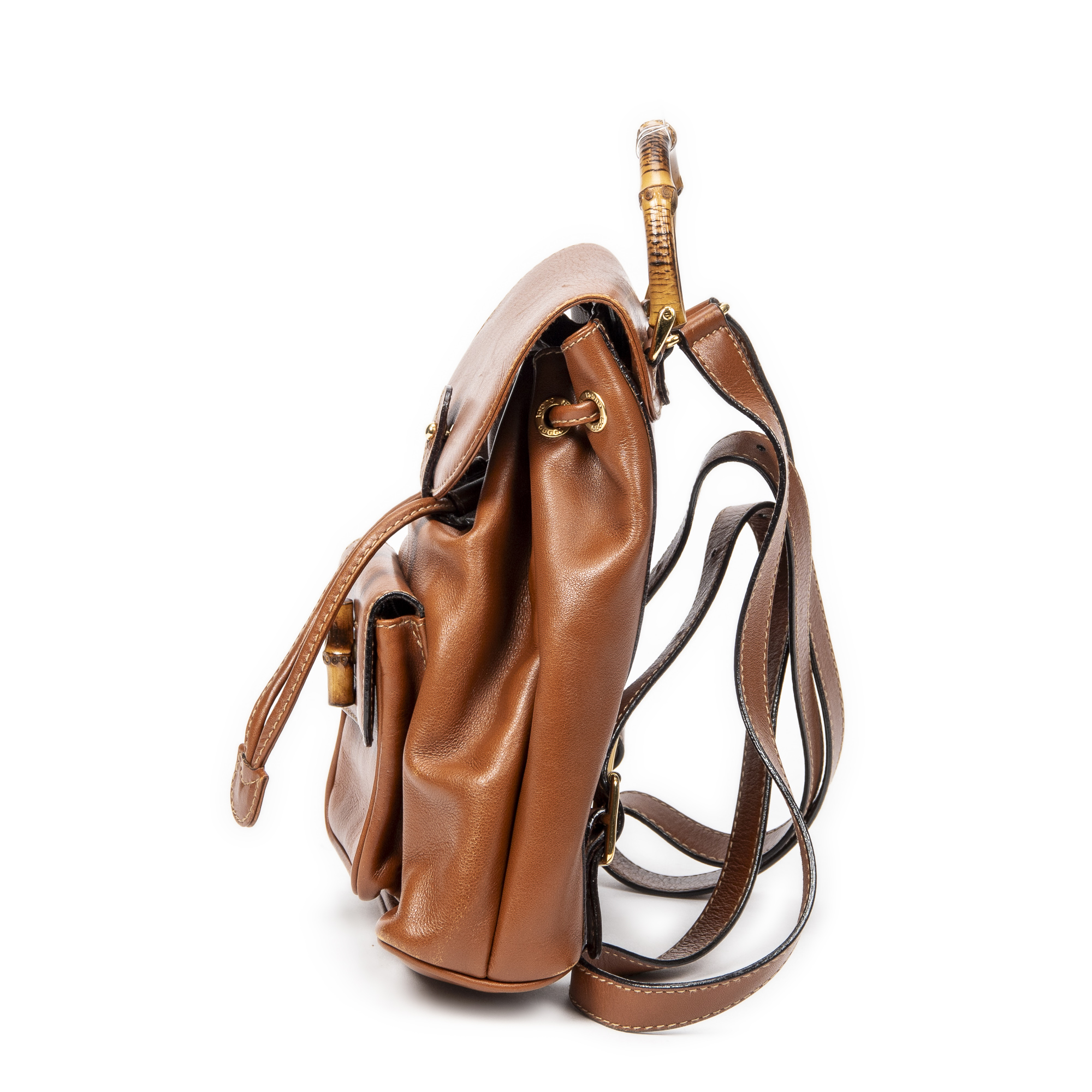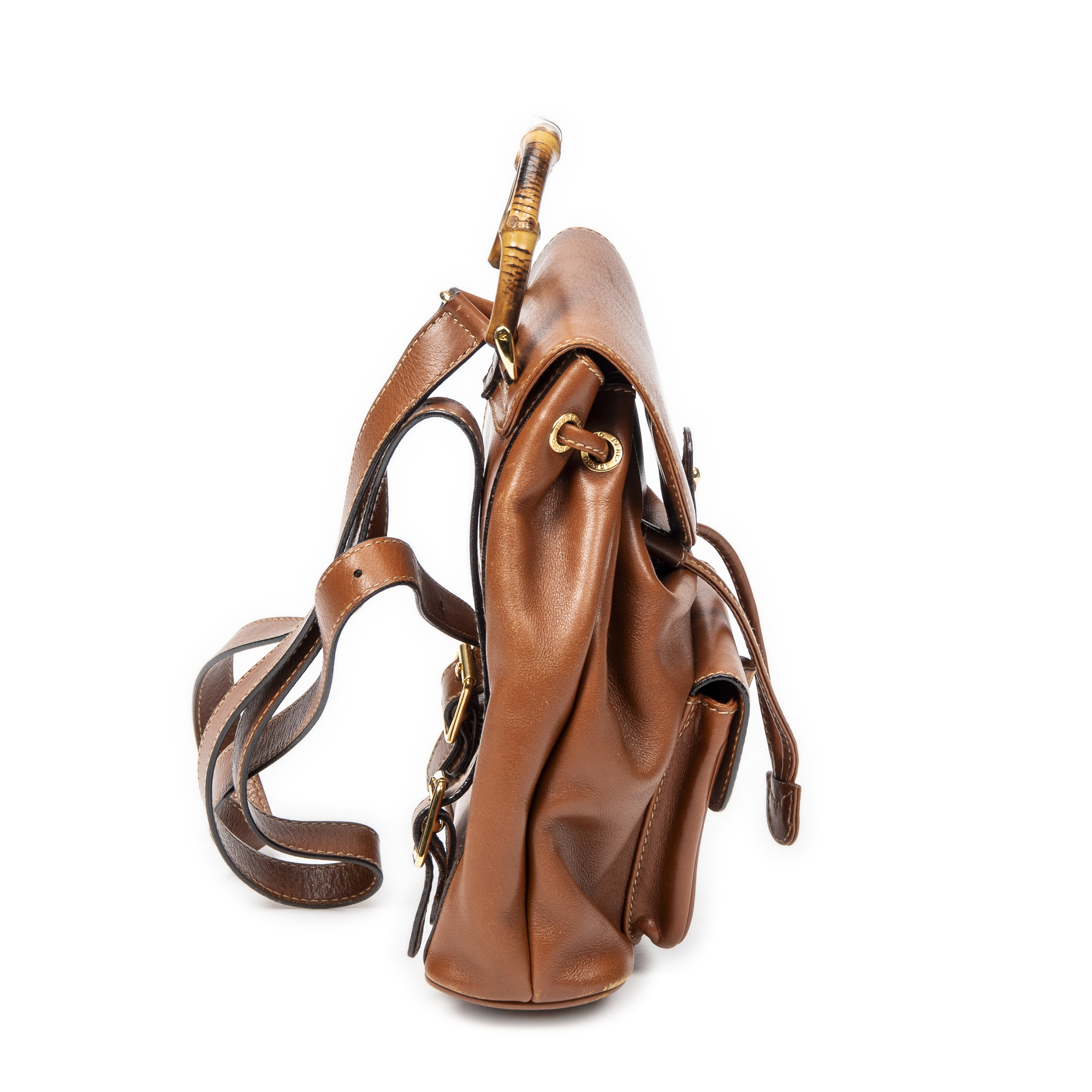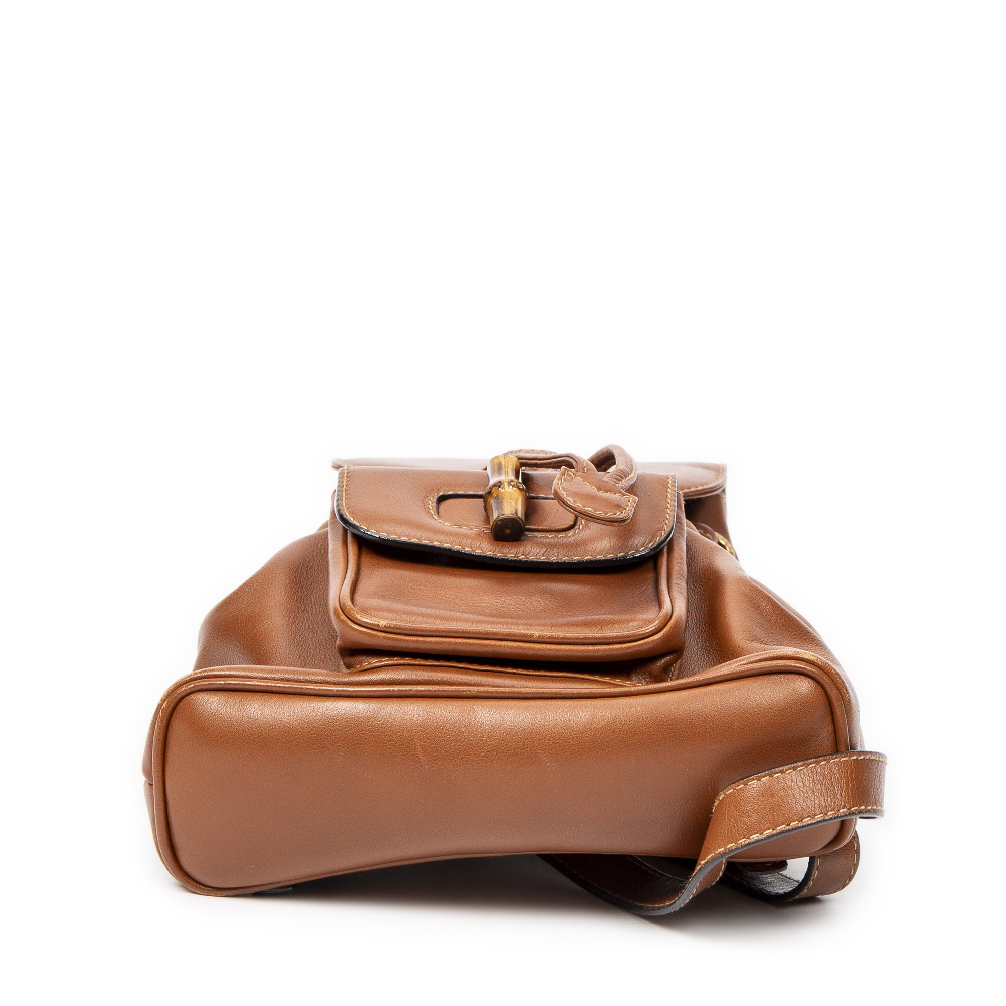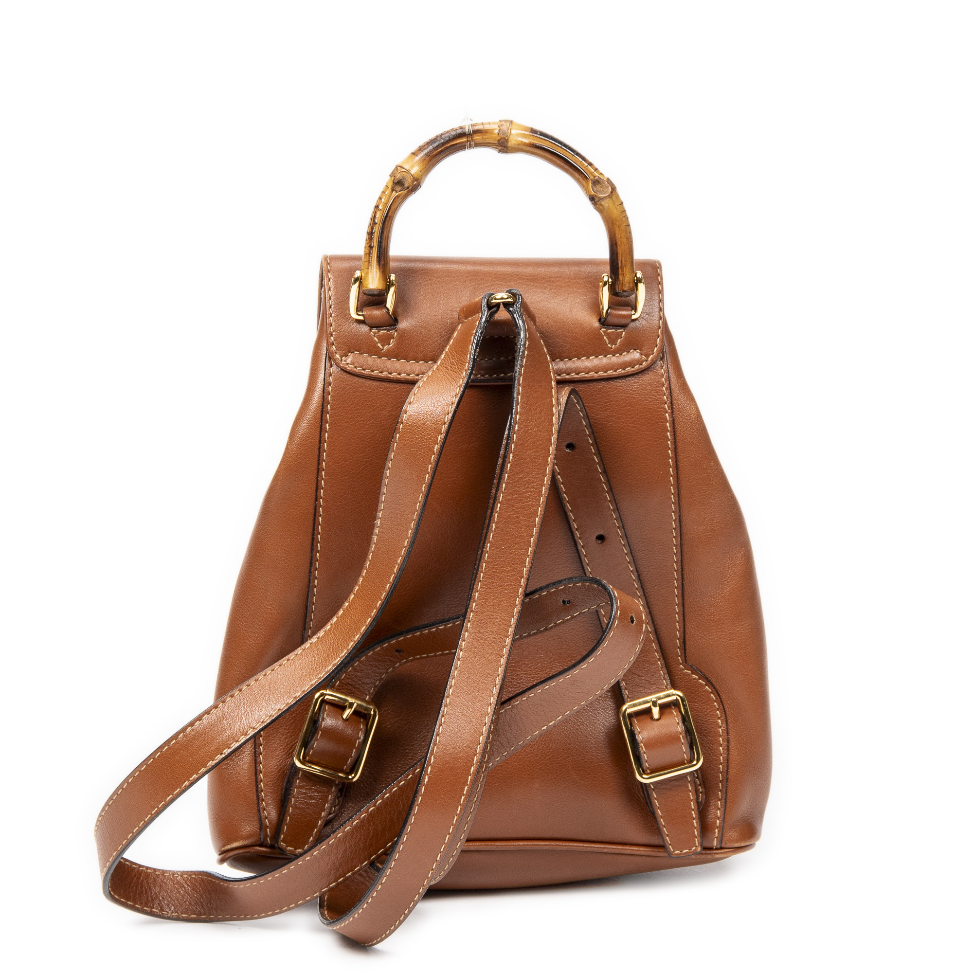 Gucci Sac à dos Mini Bamboo Backpack en Tan et Gold. Le produit est en Très Bon état (AB).