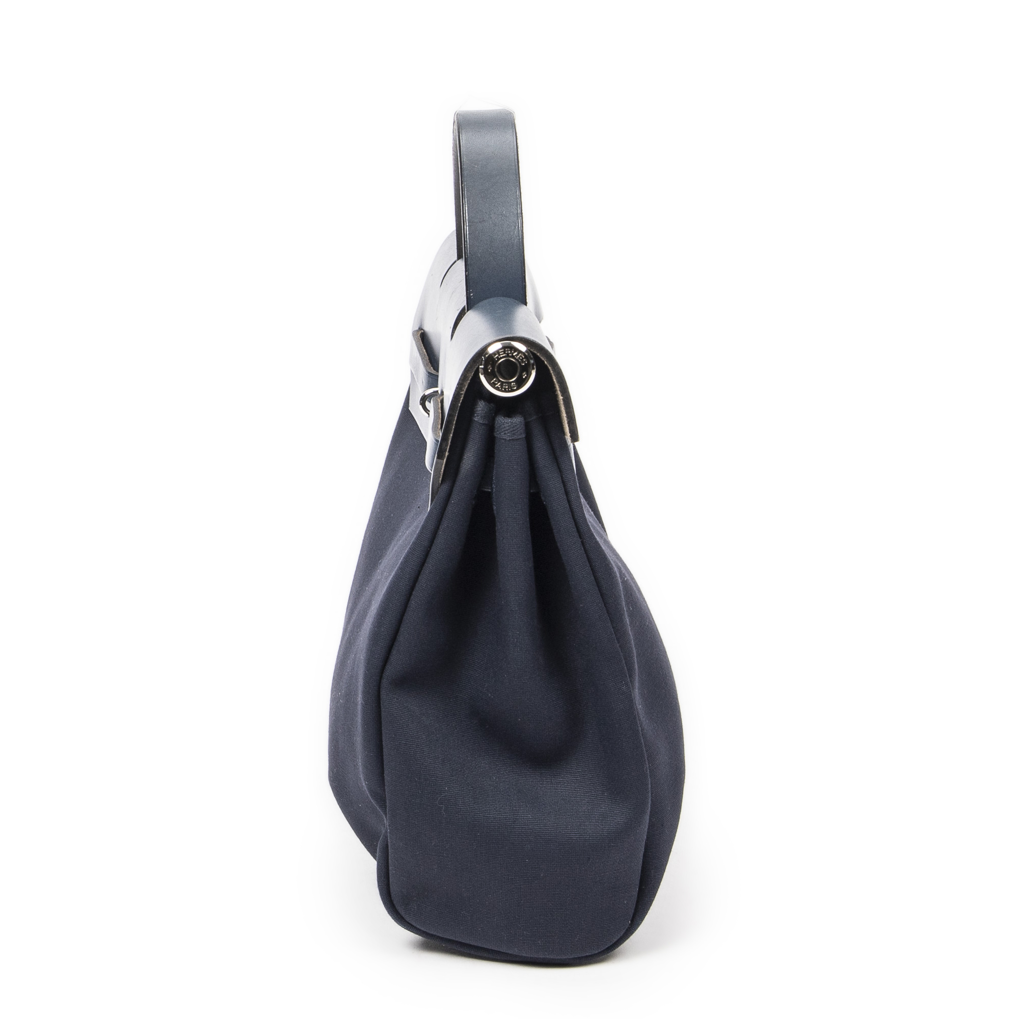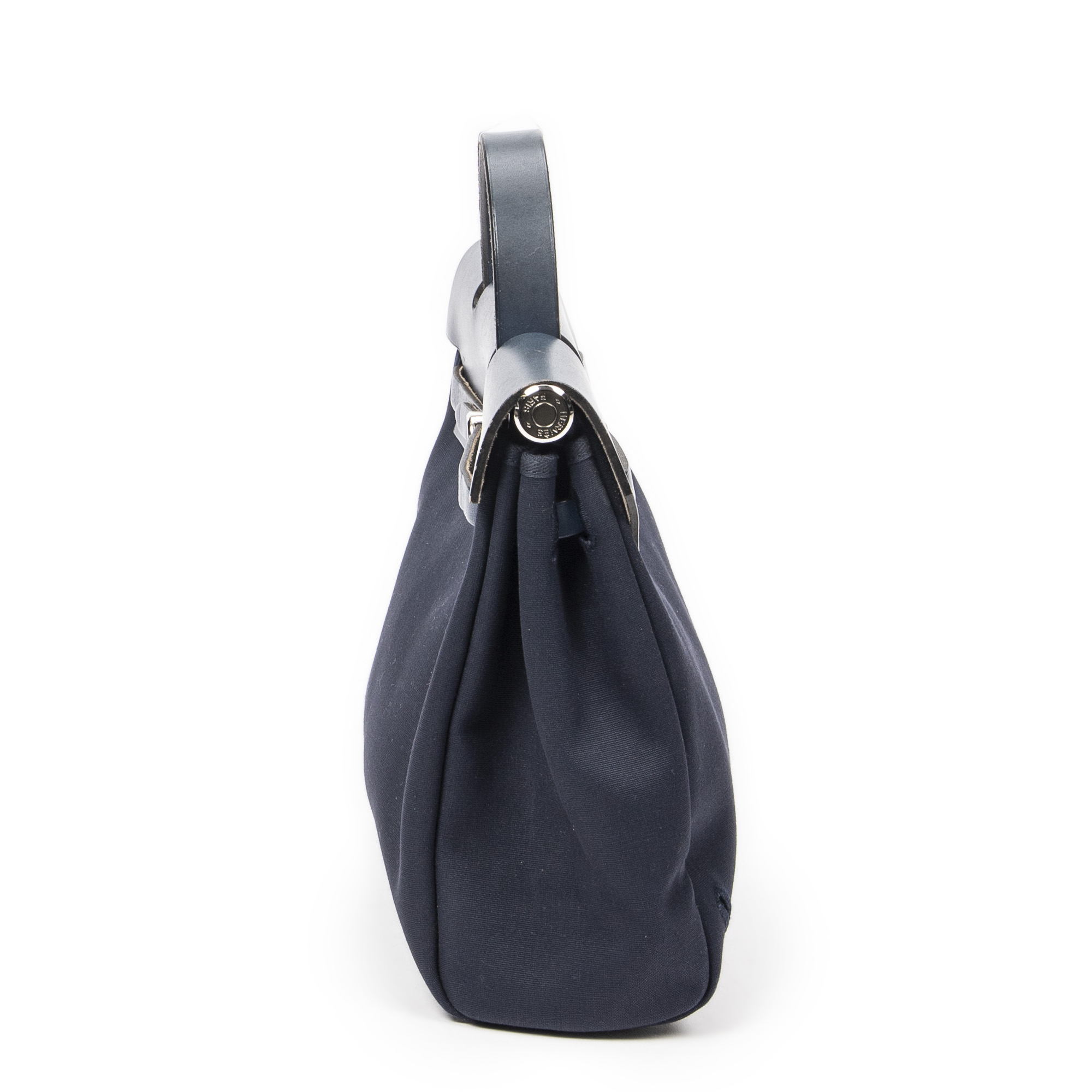 Hermès Sac à dos Herbag a Dos PM en Marine et Palladium. Le produit est en Très Bon état (AB).